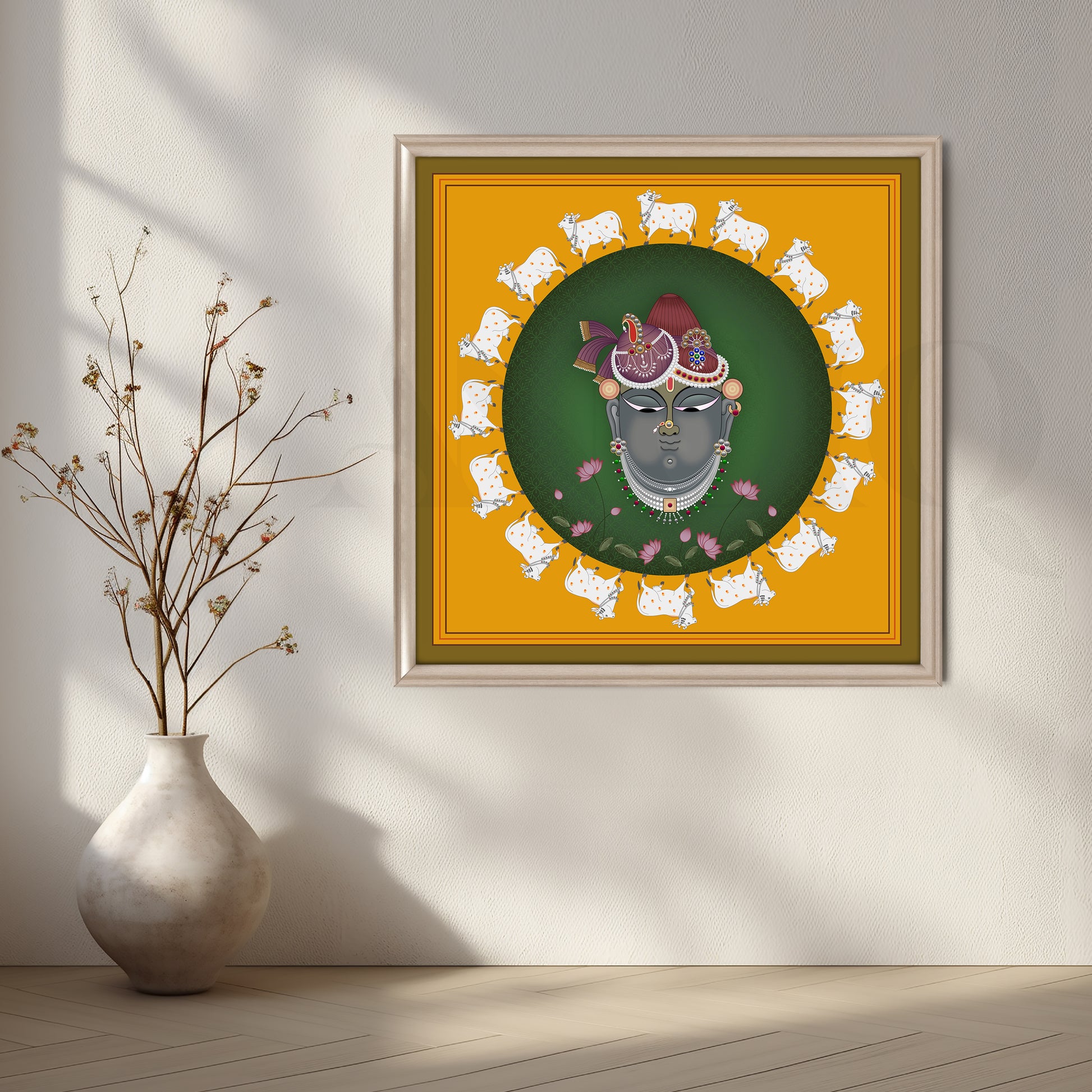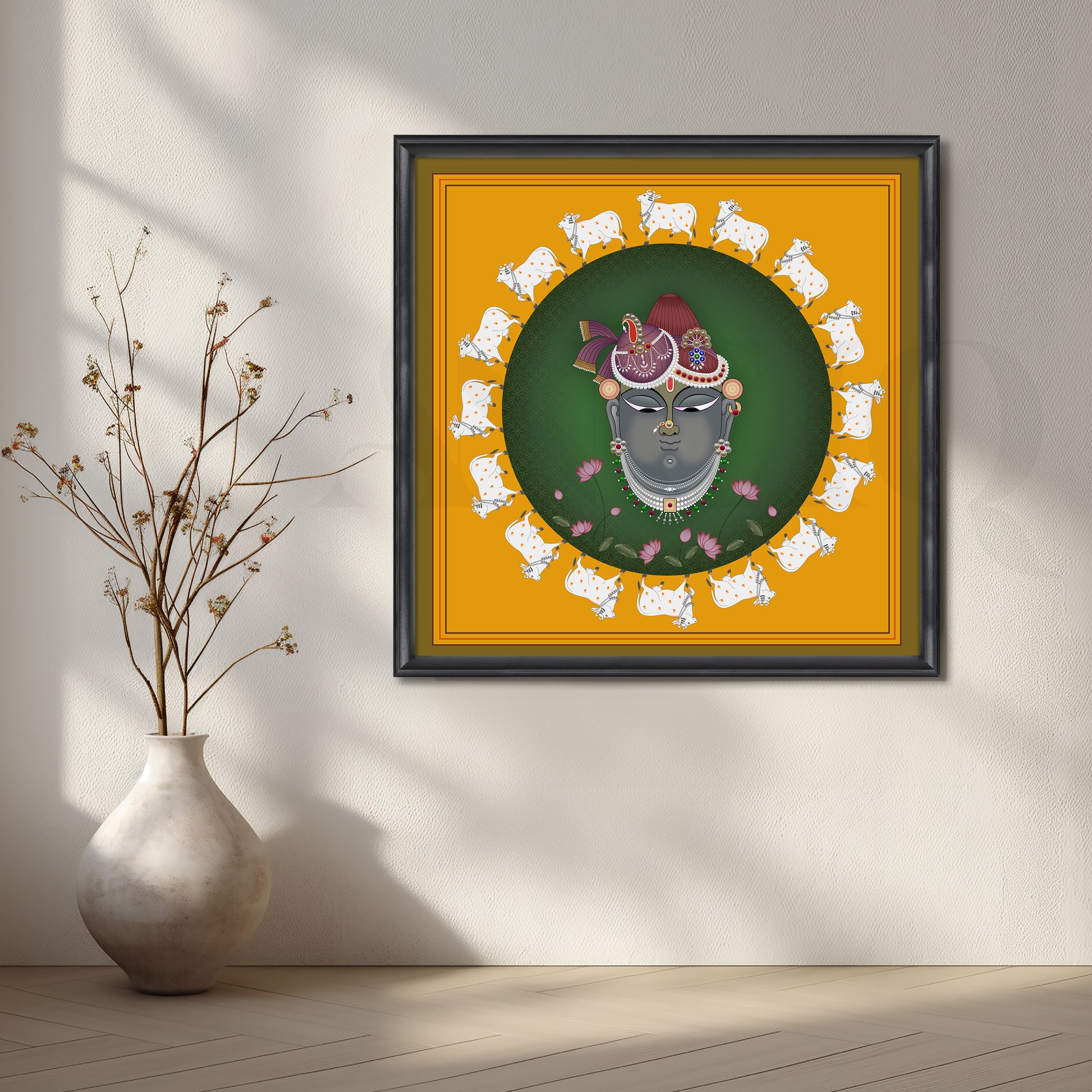 Divine Portrait of Shri Nathji Encircled by Sacred Cows