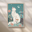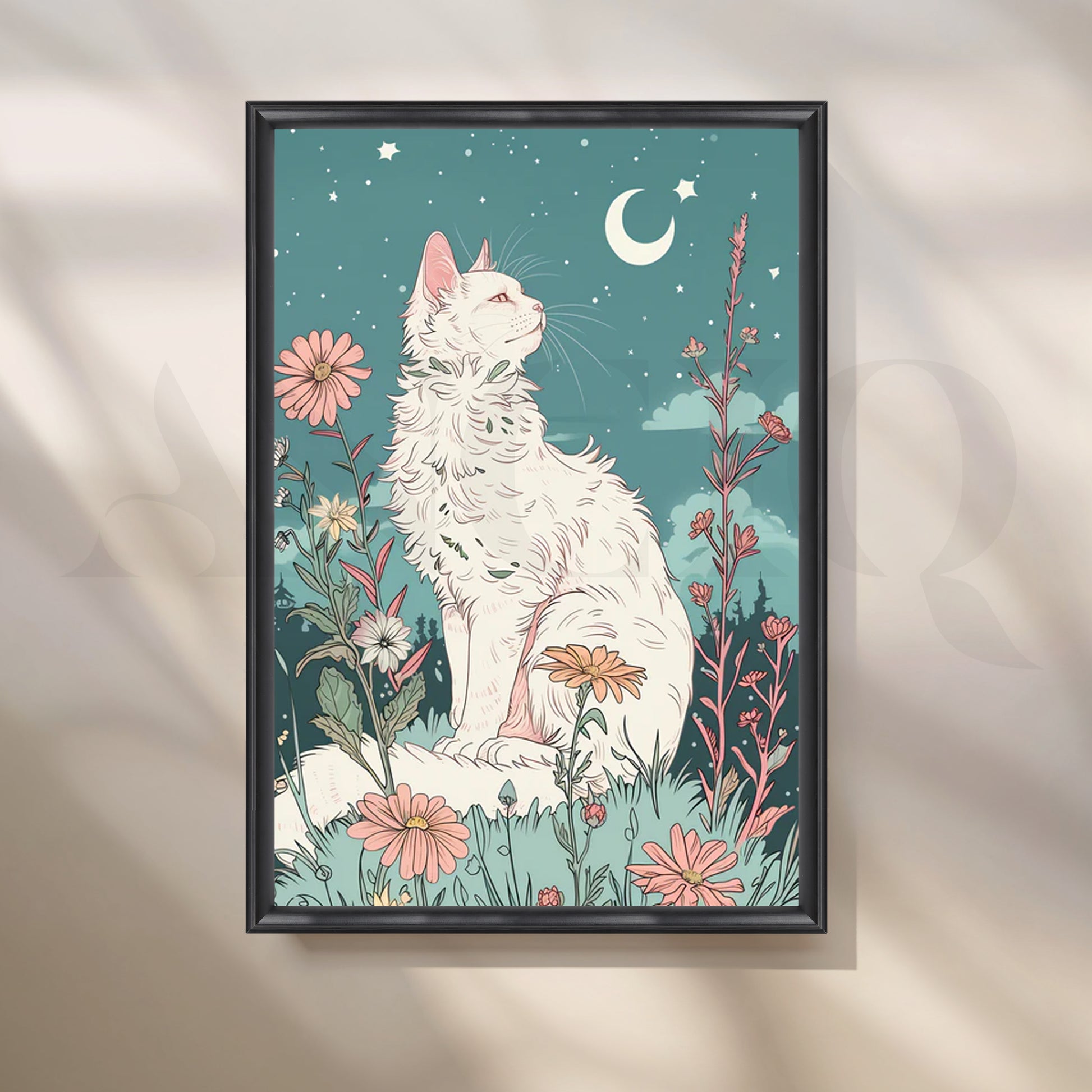 Moonlit Garden Cat Canvas Painting for Bedroom & Reading Nook