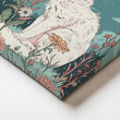 Dreamy and poetic, this illustrated cat under a crescent moon is the perfect whimsical canvas painting for a bedroom, reading nook, or creative studio. Soft teal skies, florals, and clean linework create soothing modern wall art that suits boho bedroom décor, cottagecore spaces, and kids’ rooms. A charming animal art print for cat lovers, it layers easily into gallery walls or stands alone as large living room art.