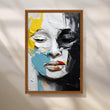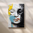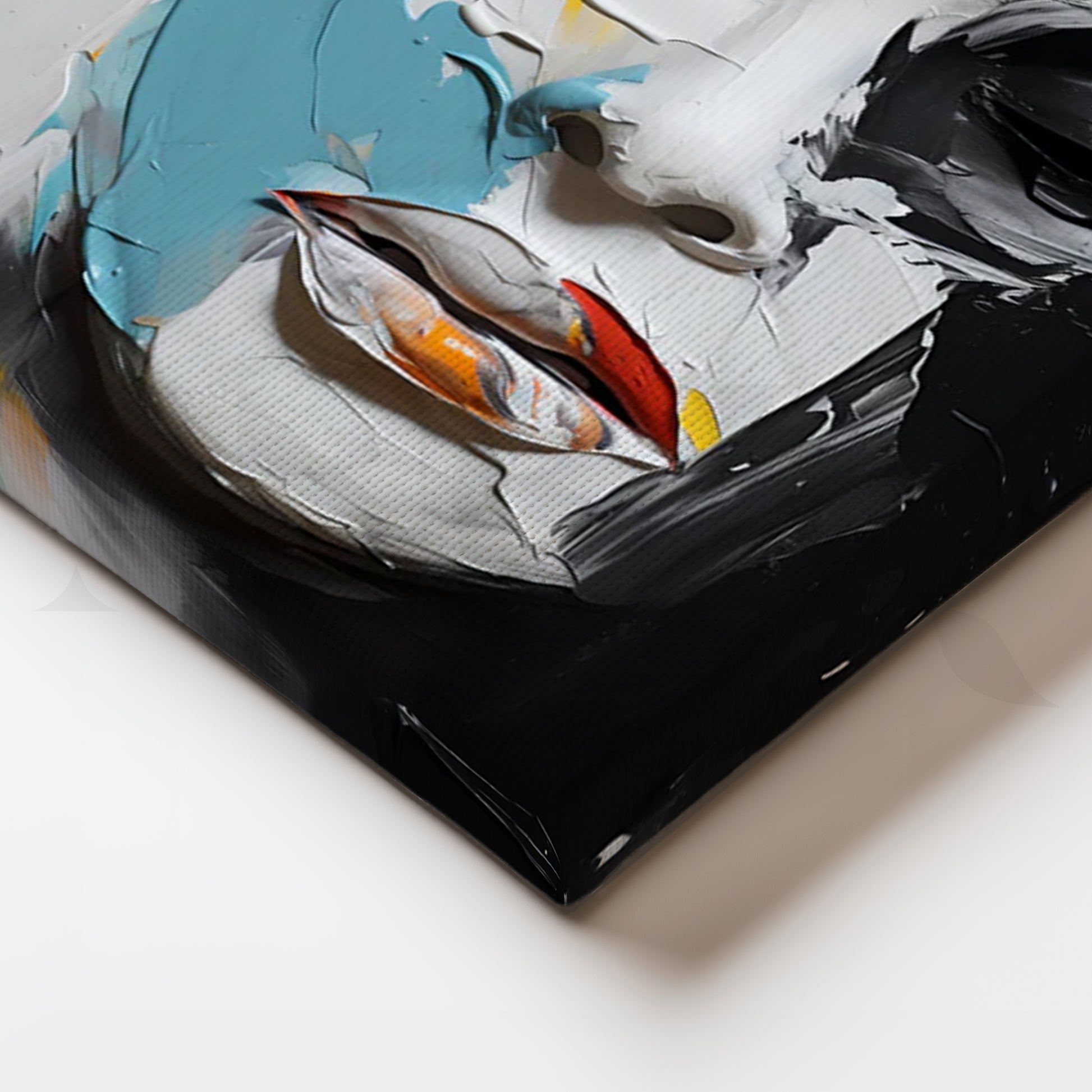 Bold and serene, “Monochrome Muse” is an abstract portrait rendered in thick impasto—creamy whites and charcoal black layered with teal blue, mustard yellow, and a pop of coral-red lips. The palette-knife texture gives this contemporary face art a gallery feel, perfect as modern wall art, abstract canvas painting, or large living room art. Its high-contrast color blocking complements minimalist décor, boho bedroom décor, or a chic office, adding depth and sophistication to neutral spaces. Ideal for shoppers seeking textured canvas art, statement portrait wall art, and contemporary home décor that looks striking over a sofa, console, or bed.