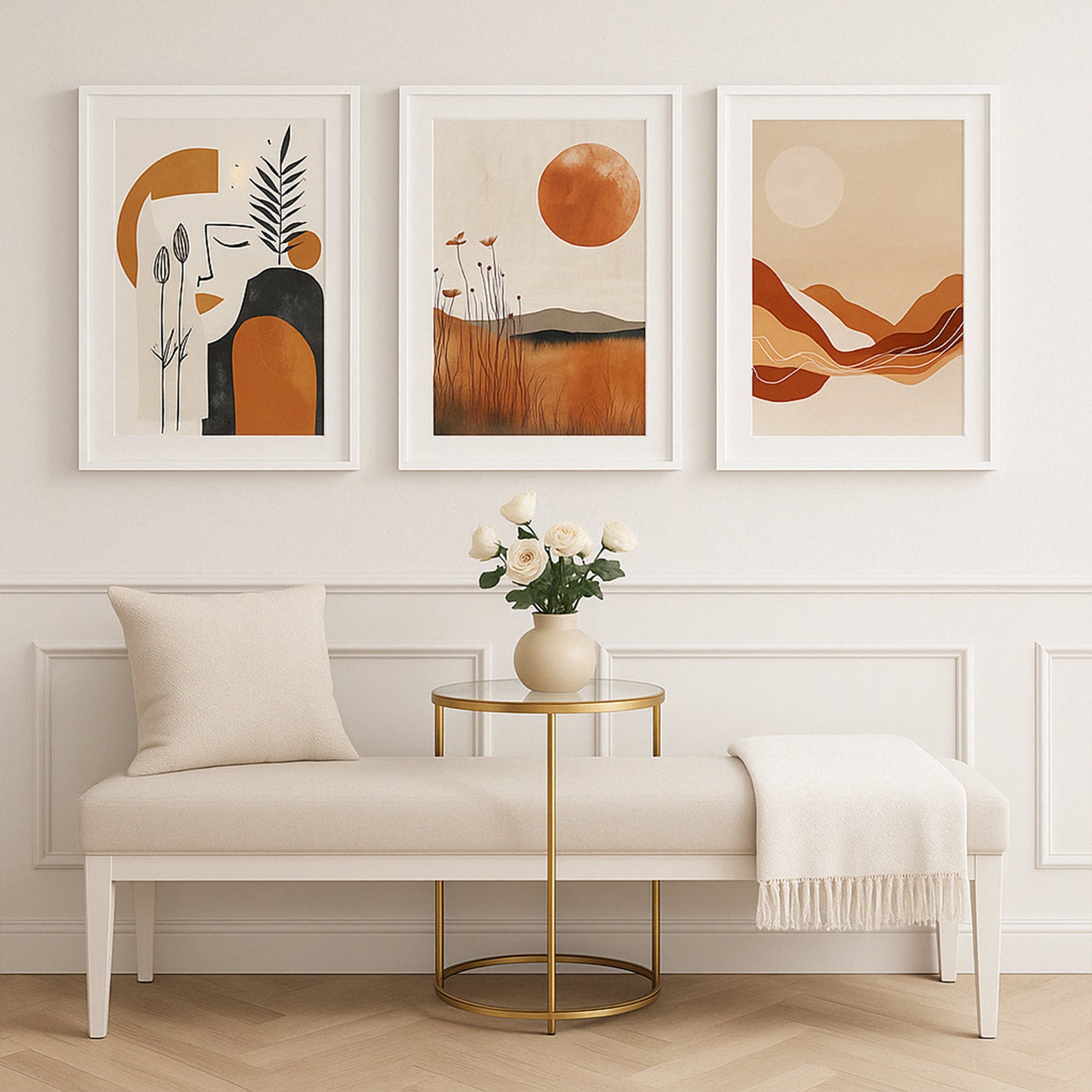 Earthy Minimal Calm Gallery Walls blend abstract botanicals, soft landscapes, and sun-kissed hues. This Gallery walls set brings a grounded, serene feel—ideal for cozy living rooms or minimalist home sanctuaries.