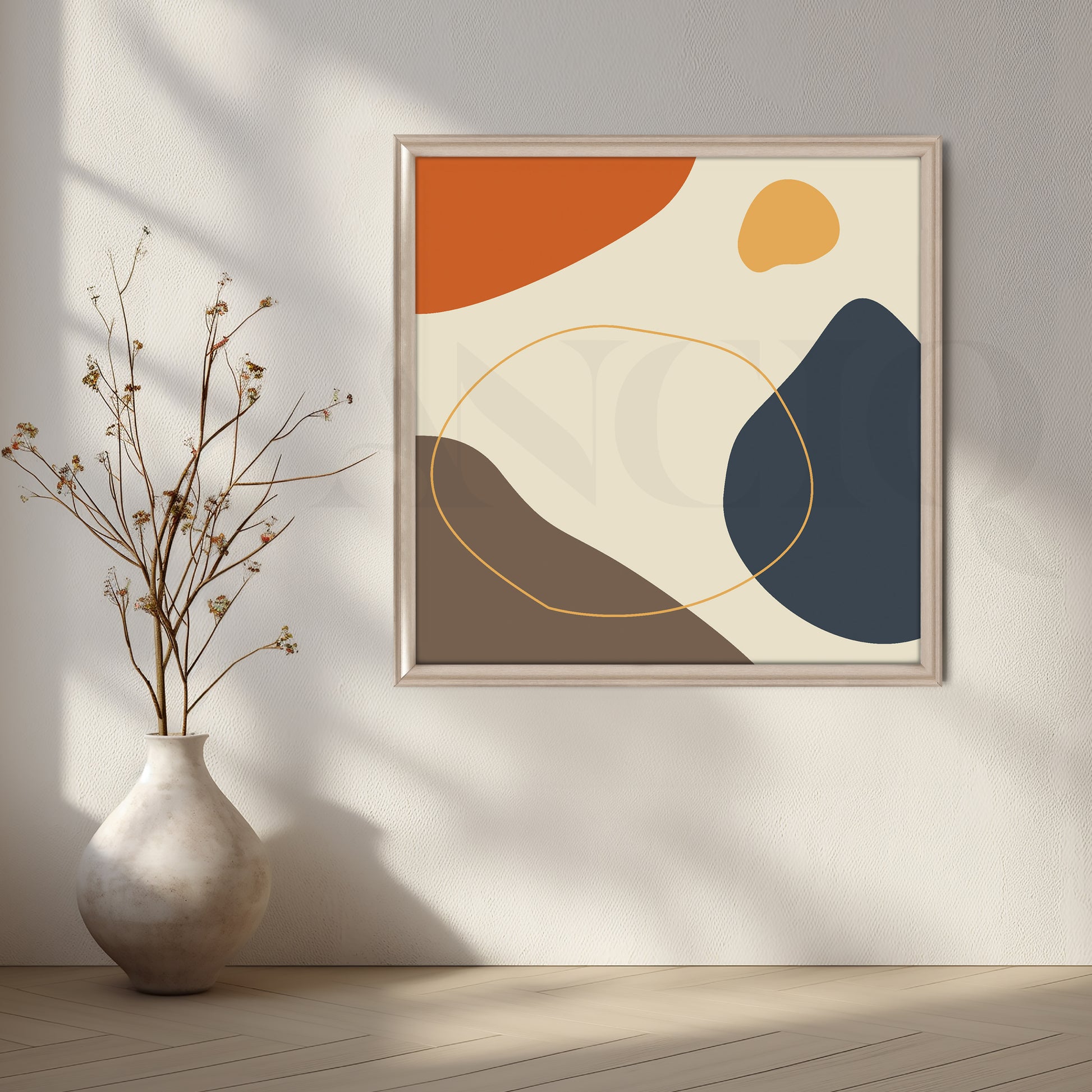 Earthy Tones and Organic Shapes in a Minimalist Abstract Design