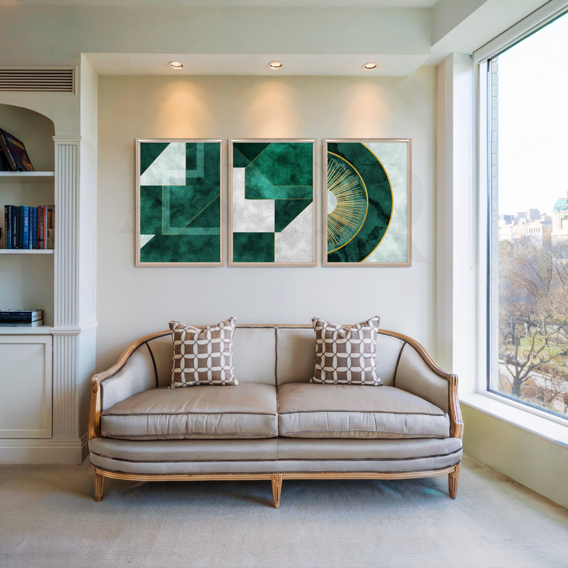 Emerald Geo Aura Gallery Wall – Set of 3 Artworks