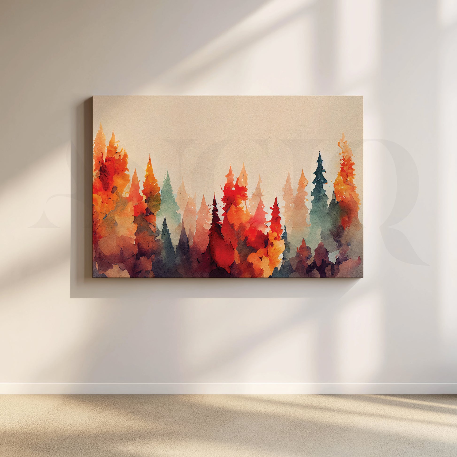 The "Enchanted Woods Canvas Wall Painting" is a beautiful and colorful landscape painting featuring red and yellow trees characteristic of a fall season. Made of high-quality materials, this painting is sure to last for years to come and add a touch of whimsy to any room.