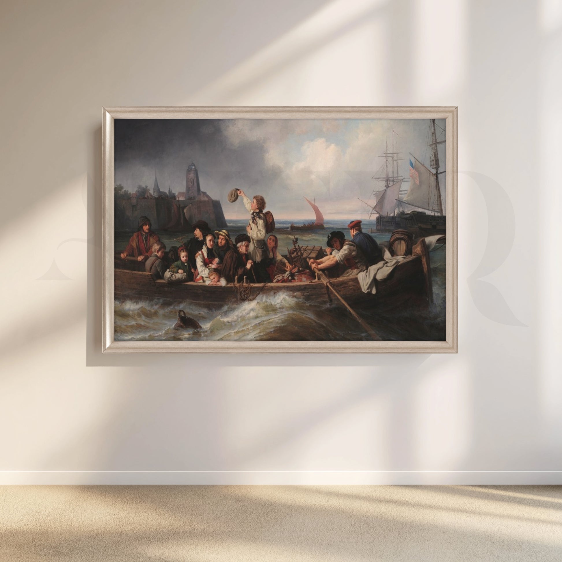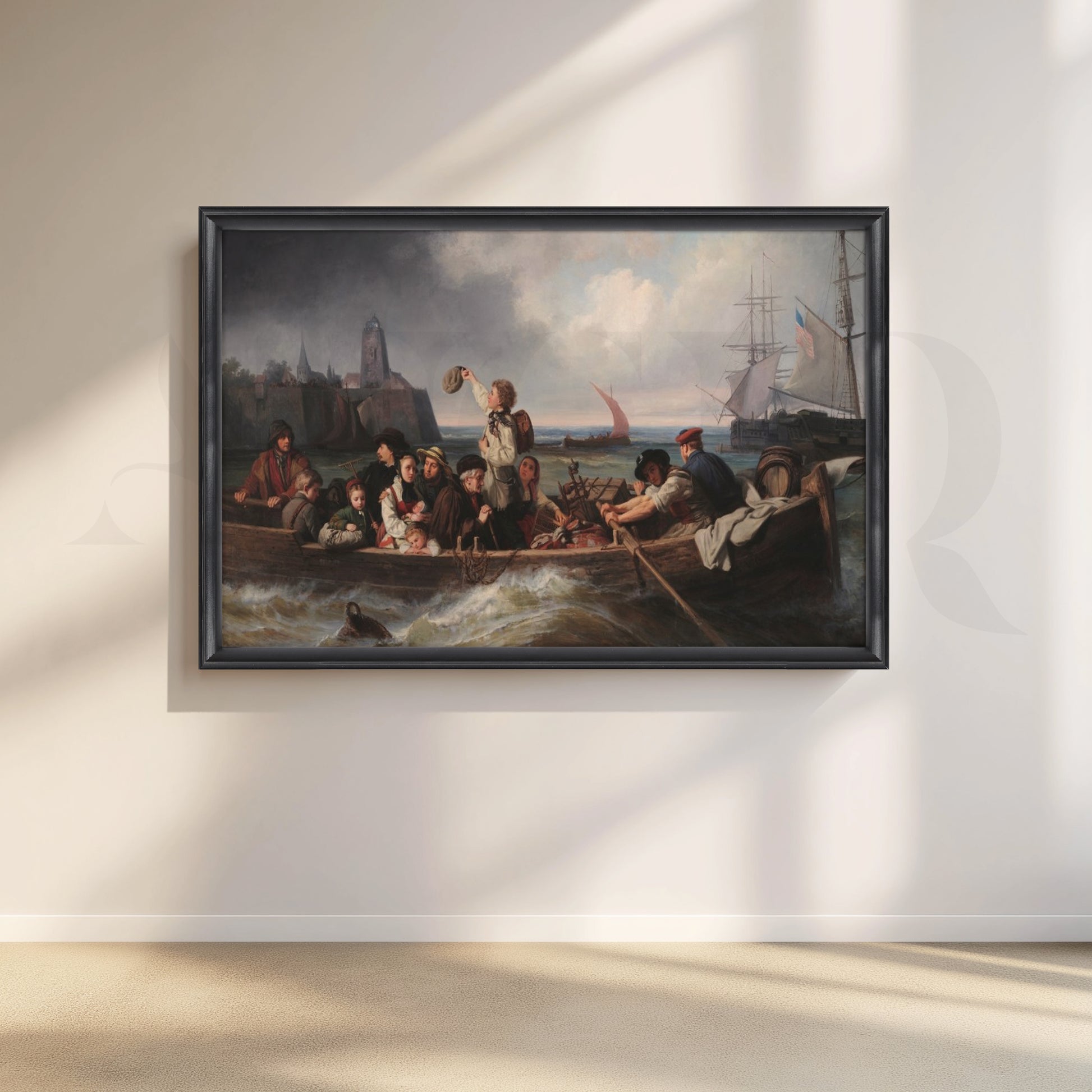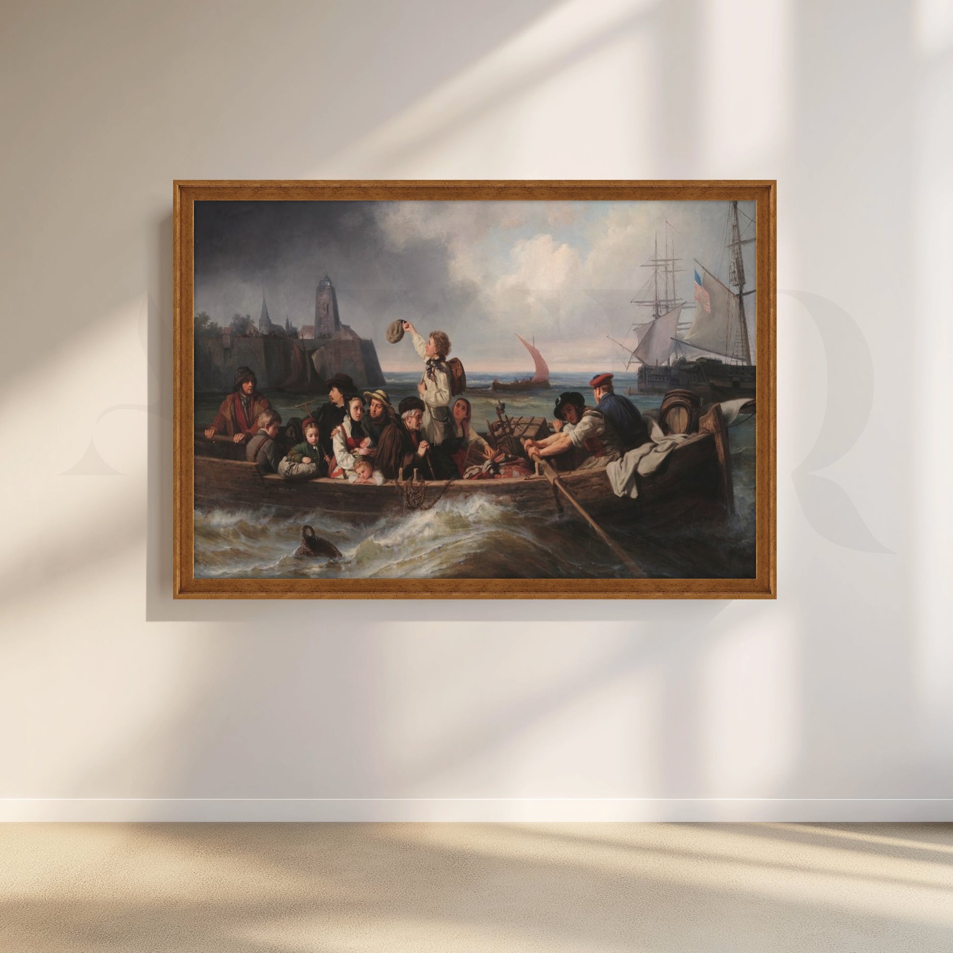 Anciq ‘Farewell at Sea’ Canvas Painting for Entryway tells a dramatic story of departure, emotion, and life at sea with rich classical brushwork. Ideal as a heritage art piece for hallway walls or vintage-inspired interiors.