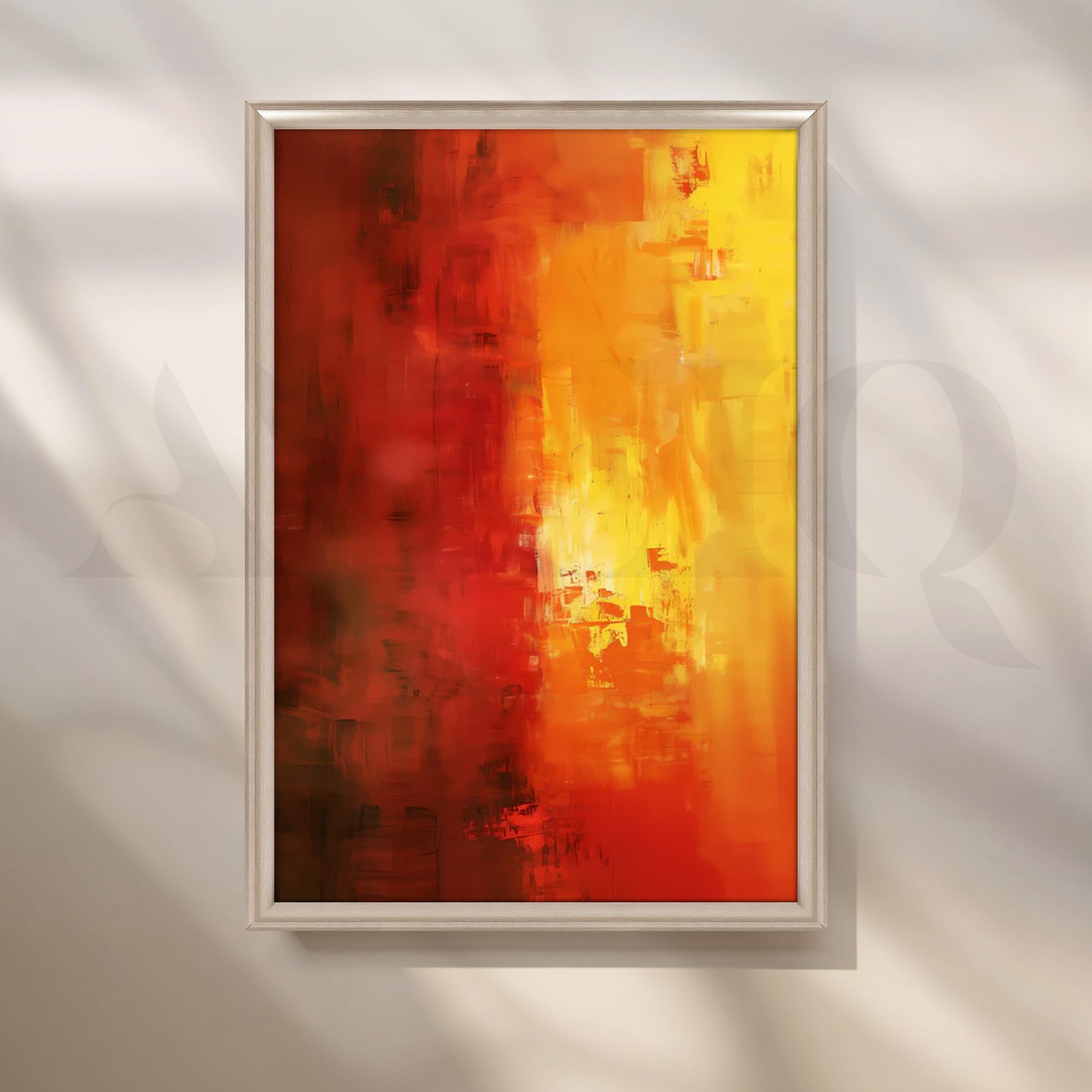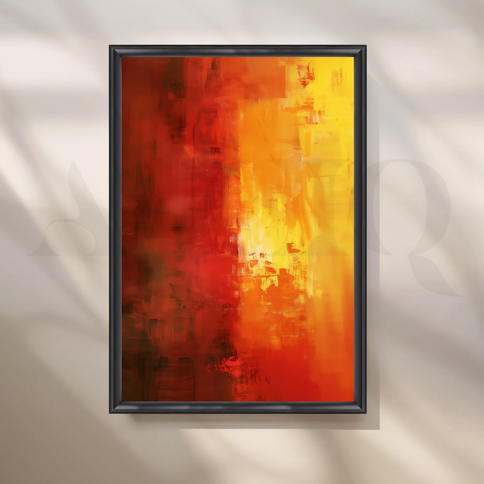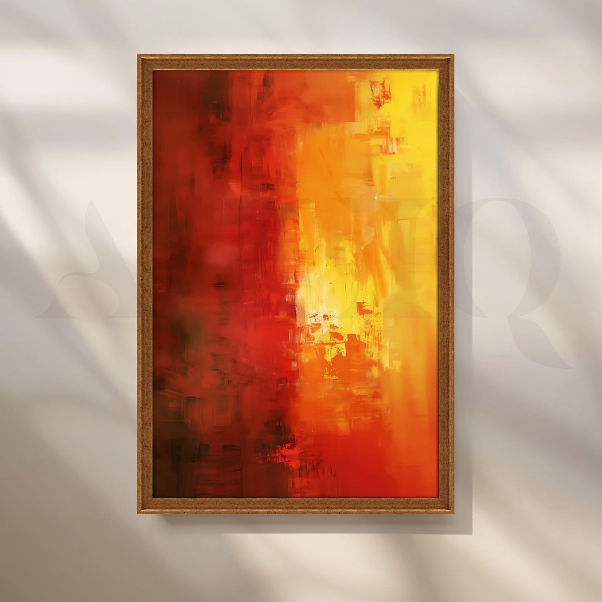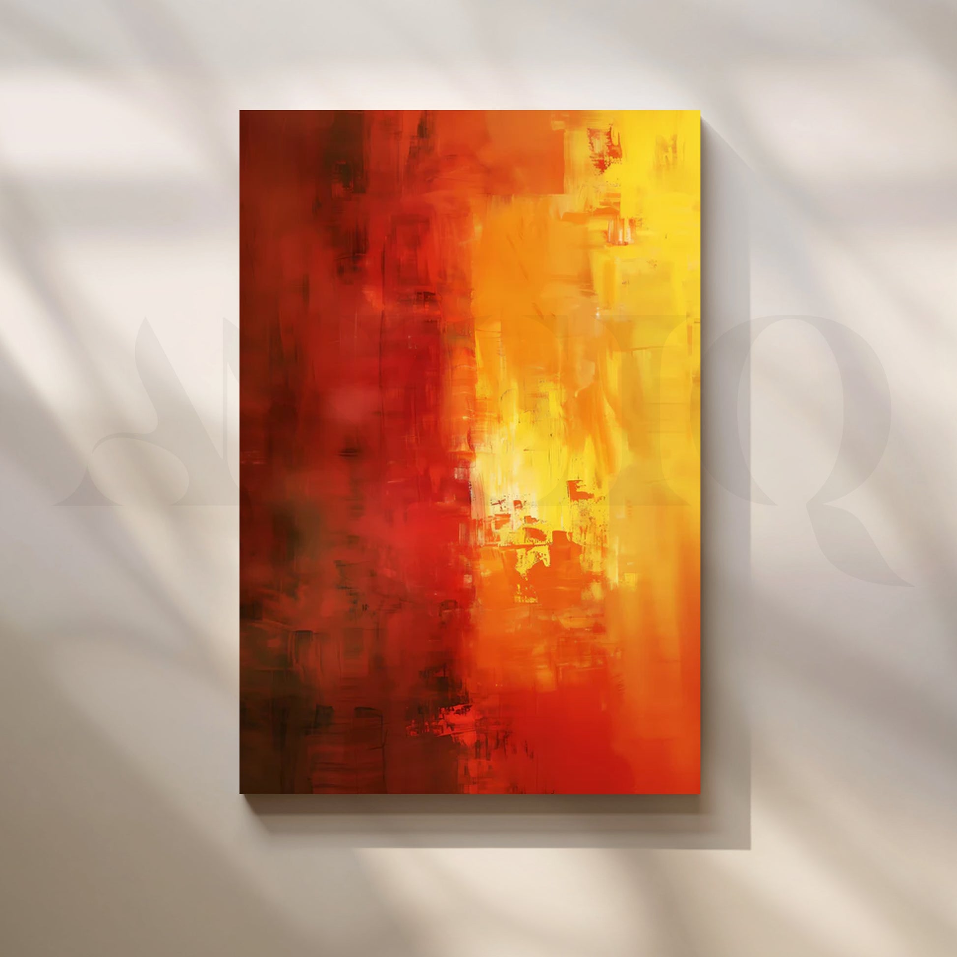 Radiating warmth in molten reds, ambers, and golden yellows, “Sunfire Glow” is the statement abstract your living room has been missing. This modern wall art delivers rich texture and depth—ideal as large living room art, contemporary wall décor above a sofa, or a dramatic dining room focal point.