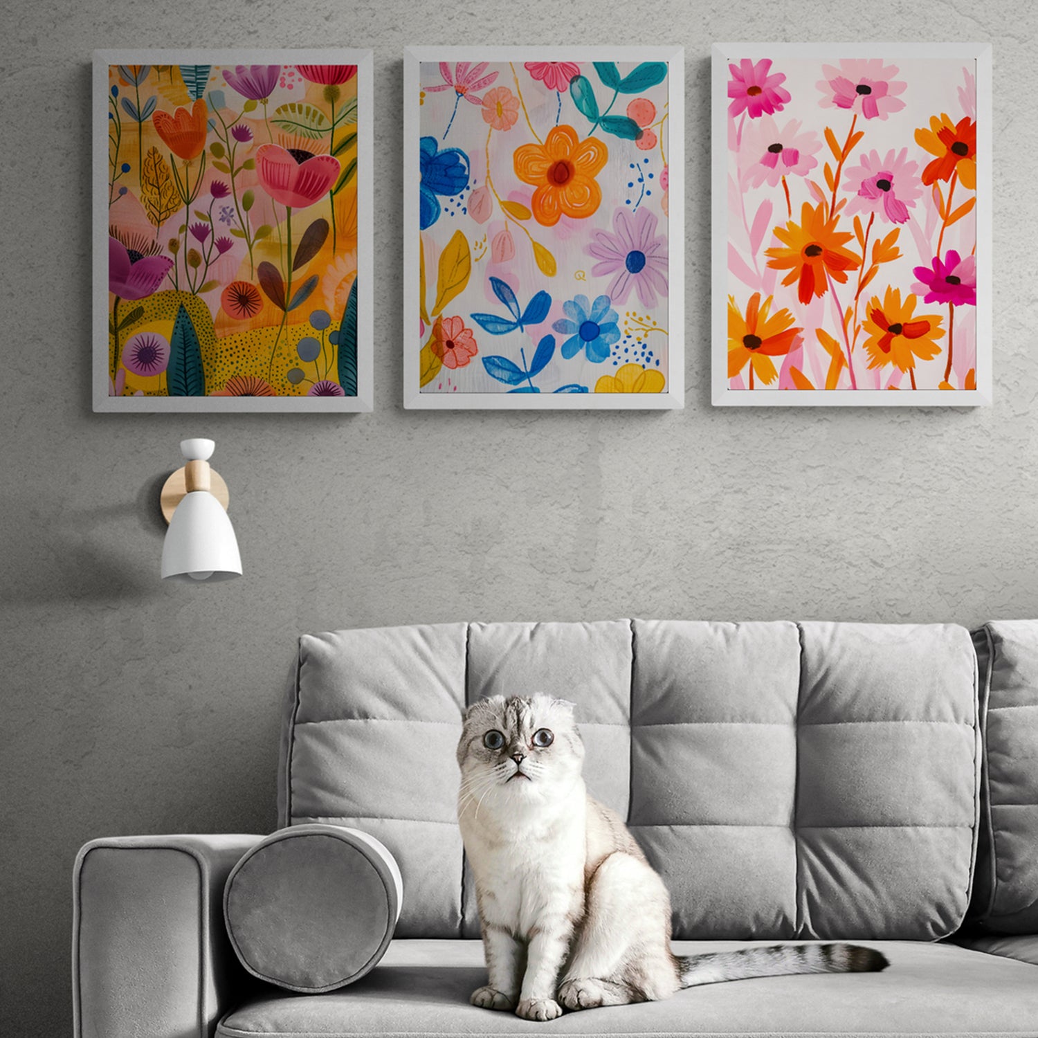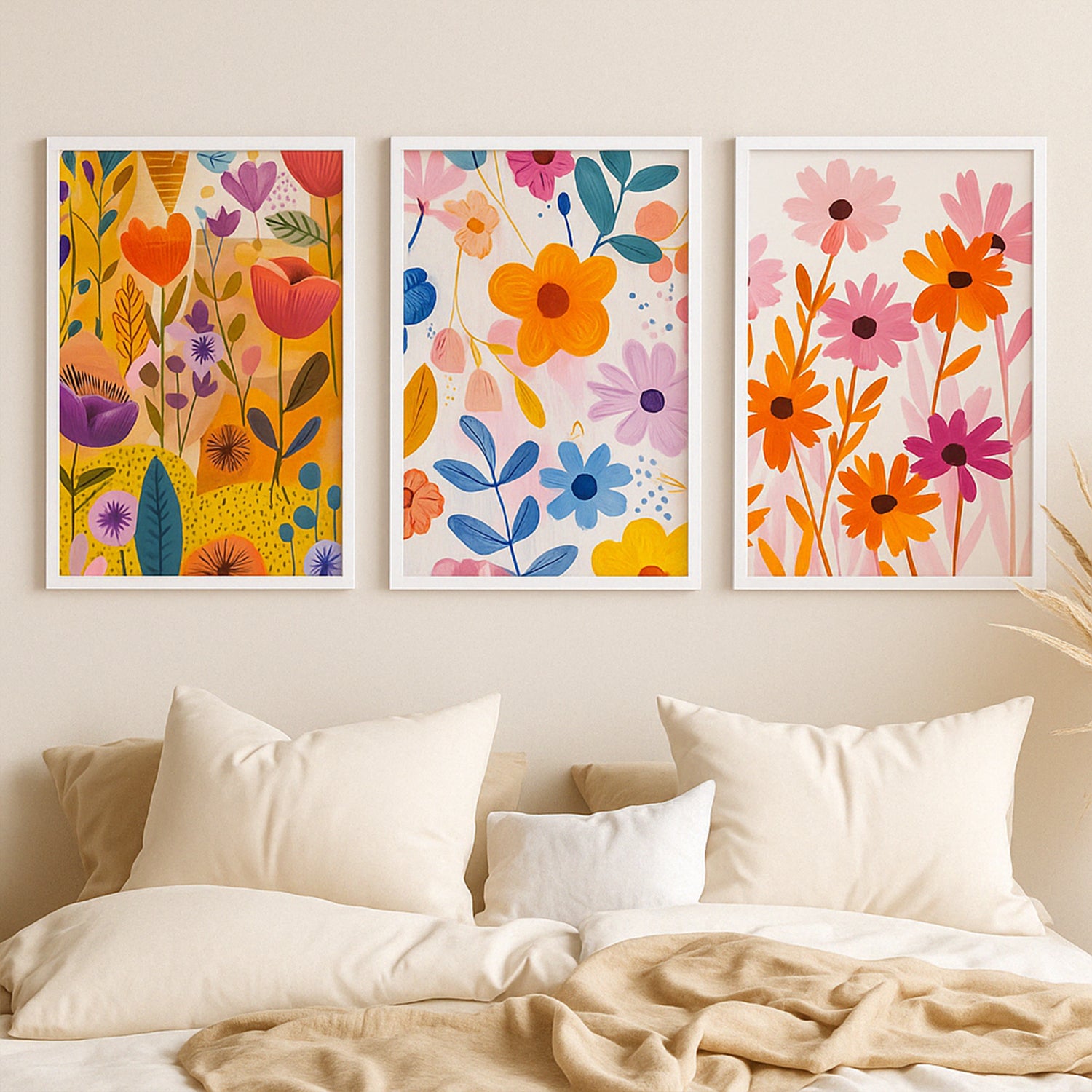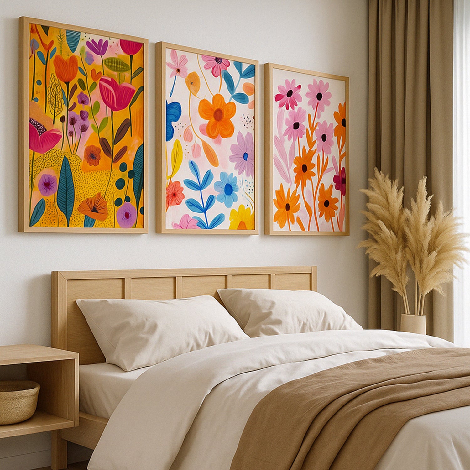 Floral Elegance Gallery Walls bring charm and vibrancy to your interiors with delicate botanical designs in warm, lively hues. These captivating gallery walls create a soothing atmosphere, blending natural beauty with artistic expression for a refreshing decor upgrade.