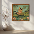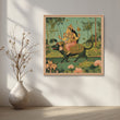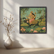 Infuse your sacred corner with divine grace through Anciq’s “Forest Ganesha on Vahana” canvas artwork. Lord Ganesha, adorned in intricate ornaments and a radiant crown, rides his majestic mount through a serene lotus-filled forest. Soft greens, tranquil waters and blooming lotuses surround the deity, symbolising wisdom, new beginnings and spiritual prosperity.