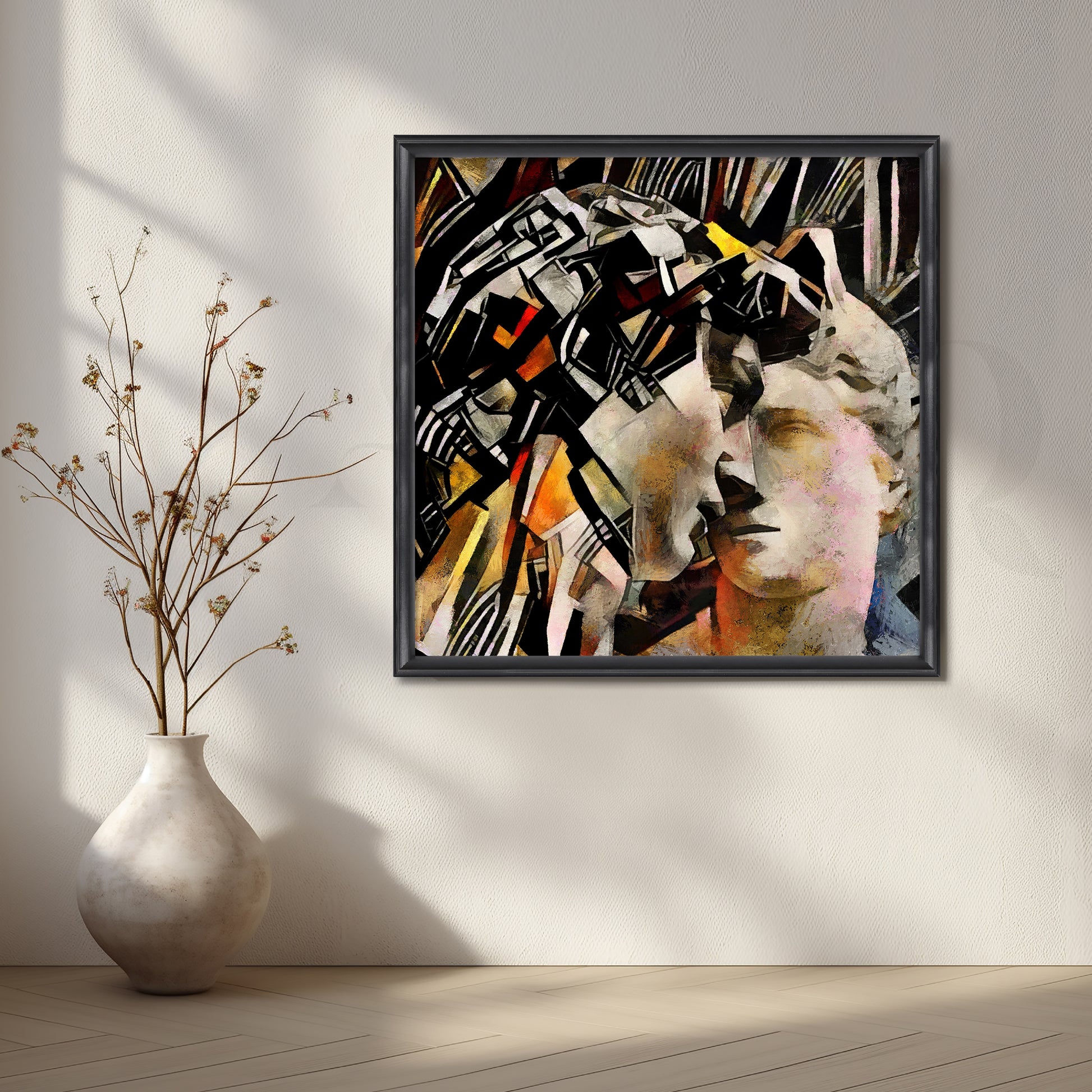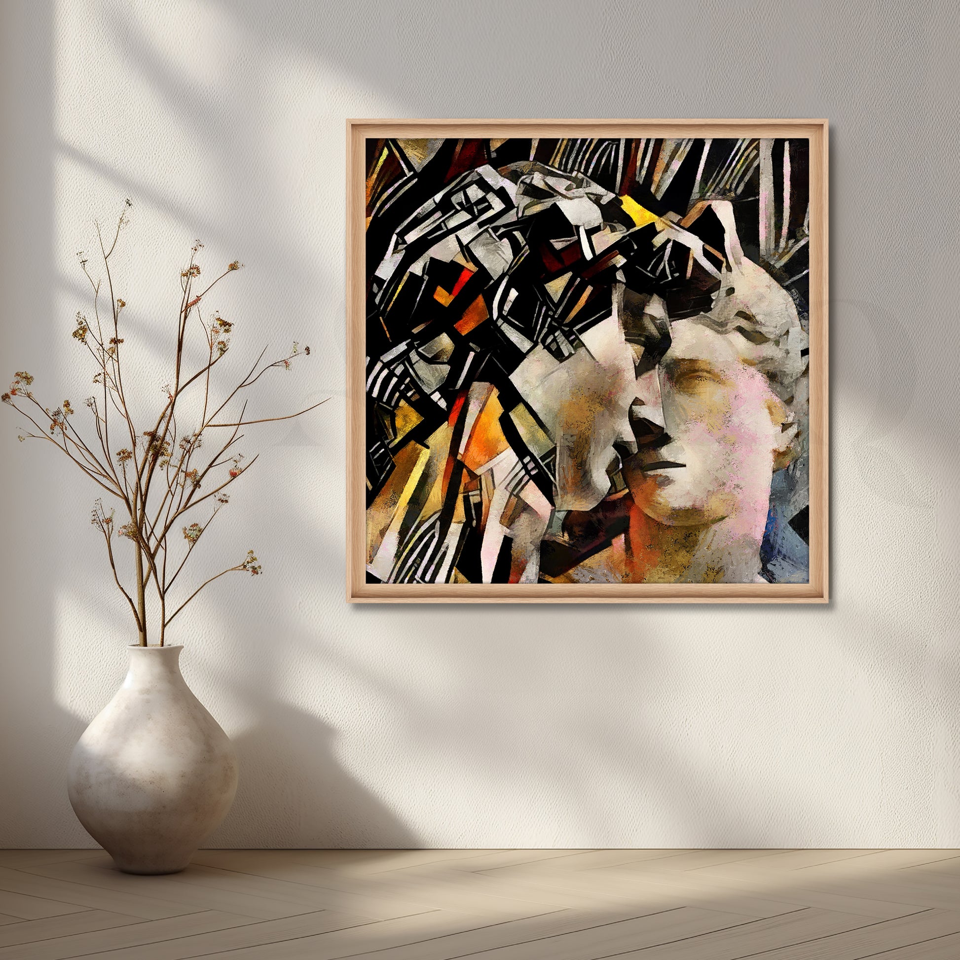- Premium French mouldings: Slim, elegant frames that enhance—not overpower—the artwork. A refined profile, a clean fit, and a finish that reads premium from any angle.