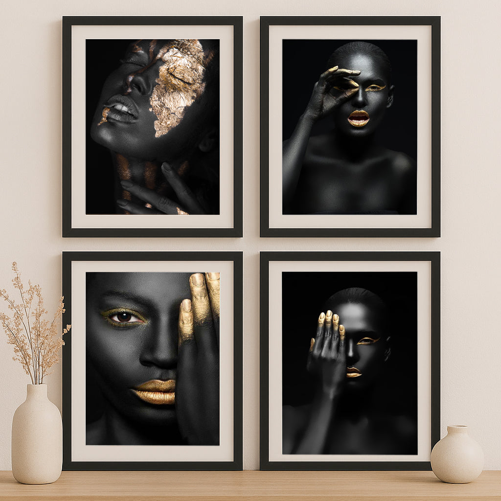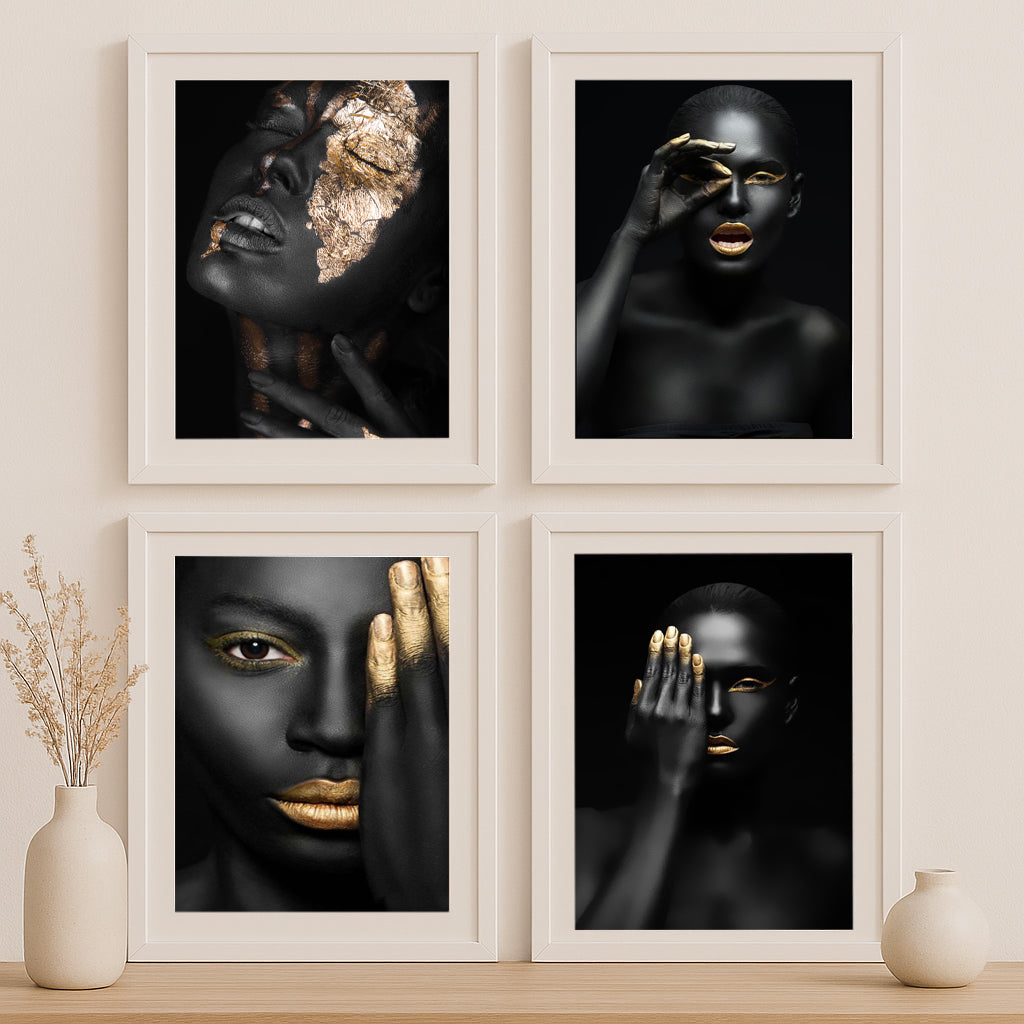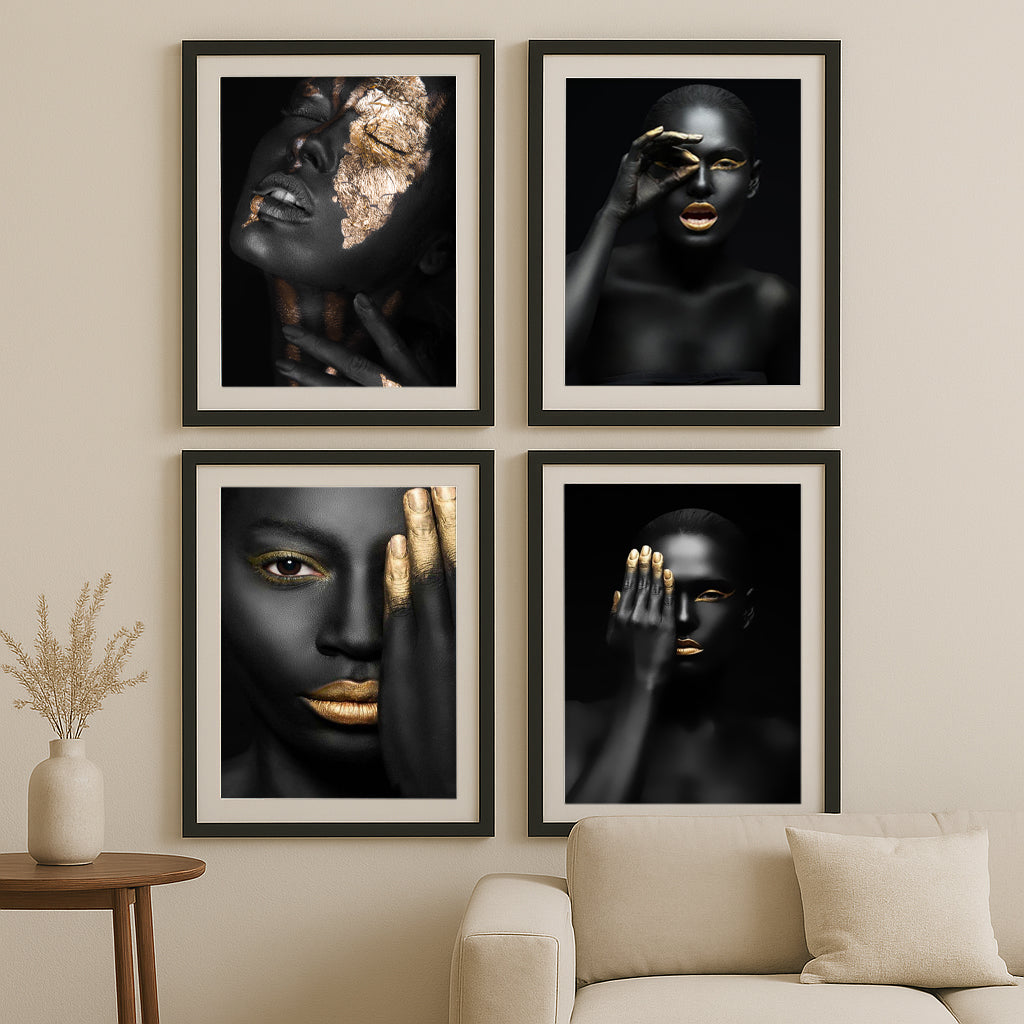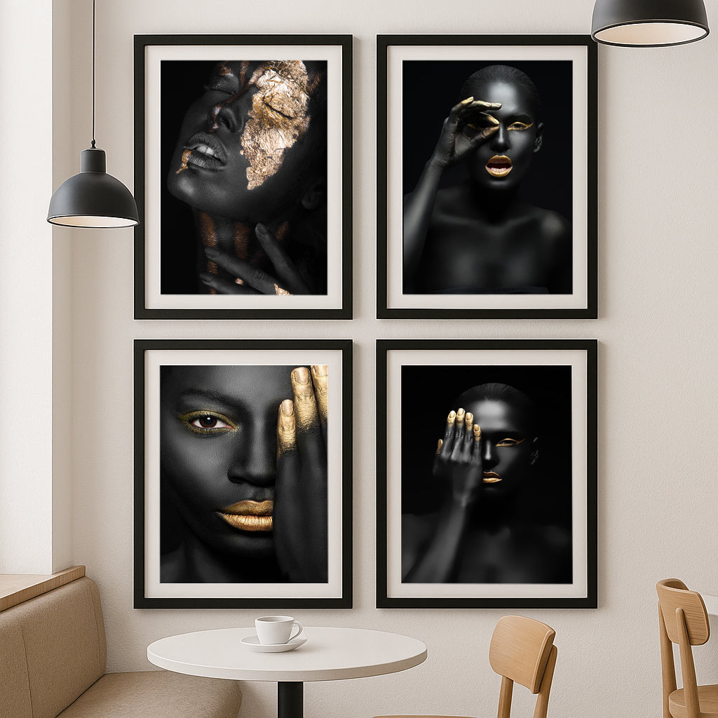 Gilded Mystery Muse Gallery Walls highlight expressive female portraits adorned with gold leaf and painted accents. These Gallery walls radiate strength and beauty—ideal for luxe entryways, fashion corners, or high-concept interiors.