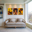 Anciq ‘Golden Afro Muse’ Gallery Wall celebrates Afro-inspired beauty with regal silhouettes, a dreamy floral portrait, and warm sunlit patterns, creating a bold cultural statement. Ideal for living rooms, hallways, studios, cafes, and statement walls, this 3-piece set adds richness, warmth, and personality. Perfect for ethnic wall art, African decor, and modern boho interiors.