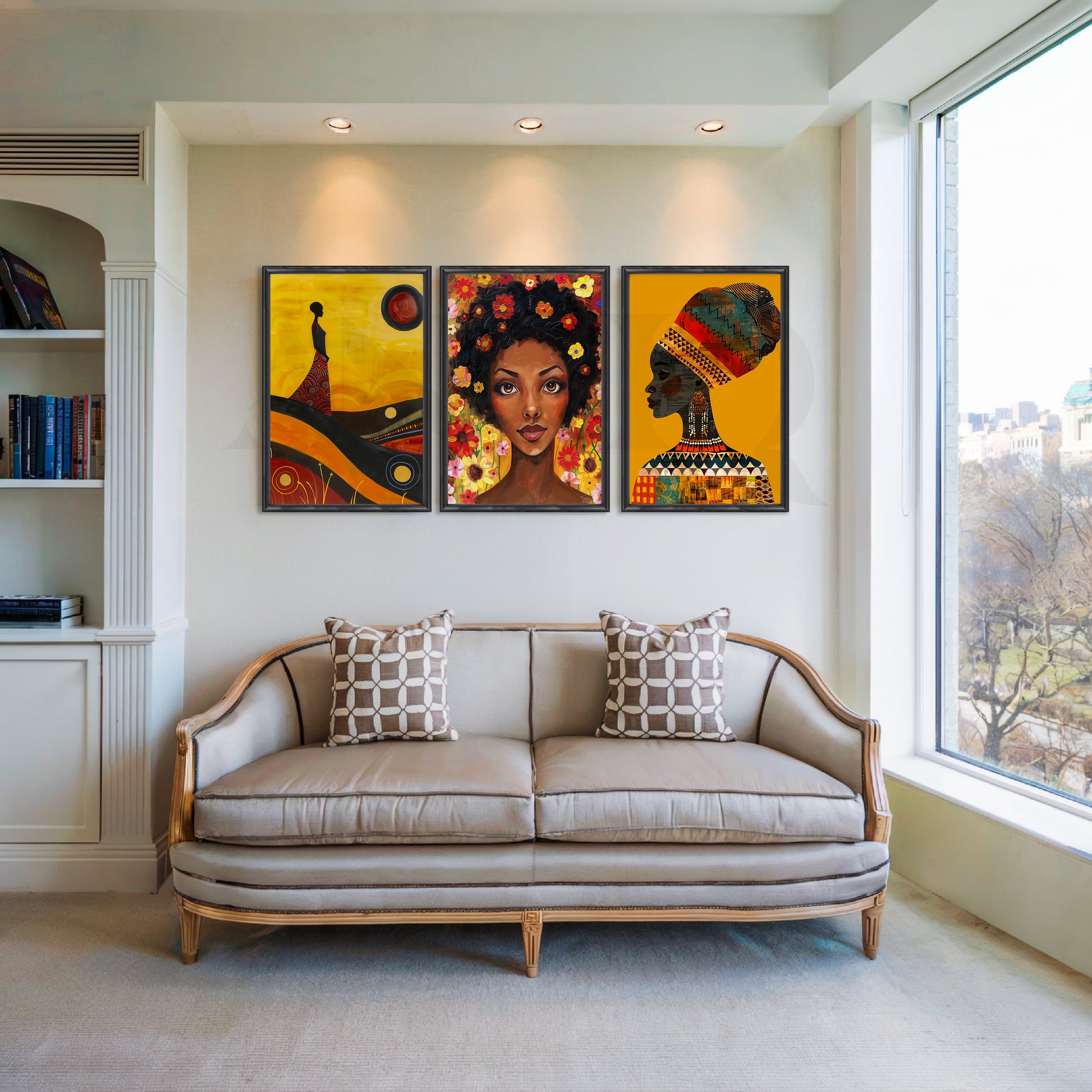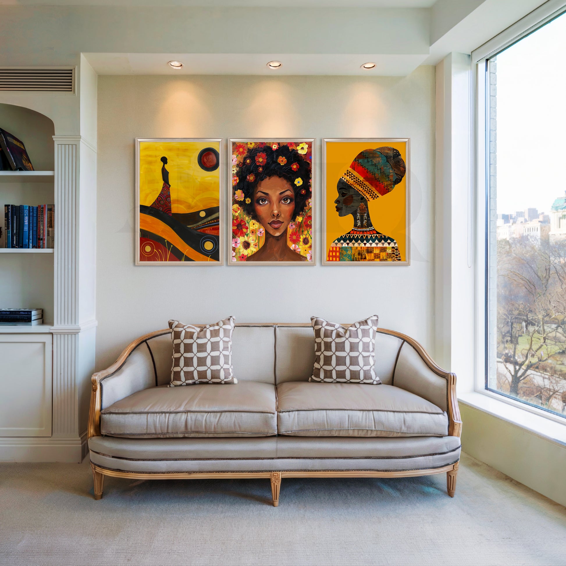 Golden Afro Muse Gallery Wall – Set of 3 Artworks