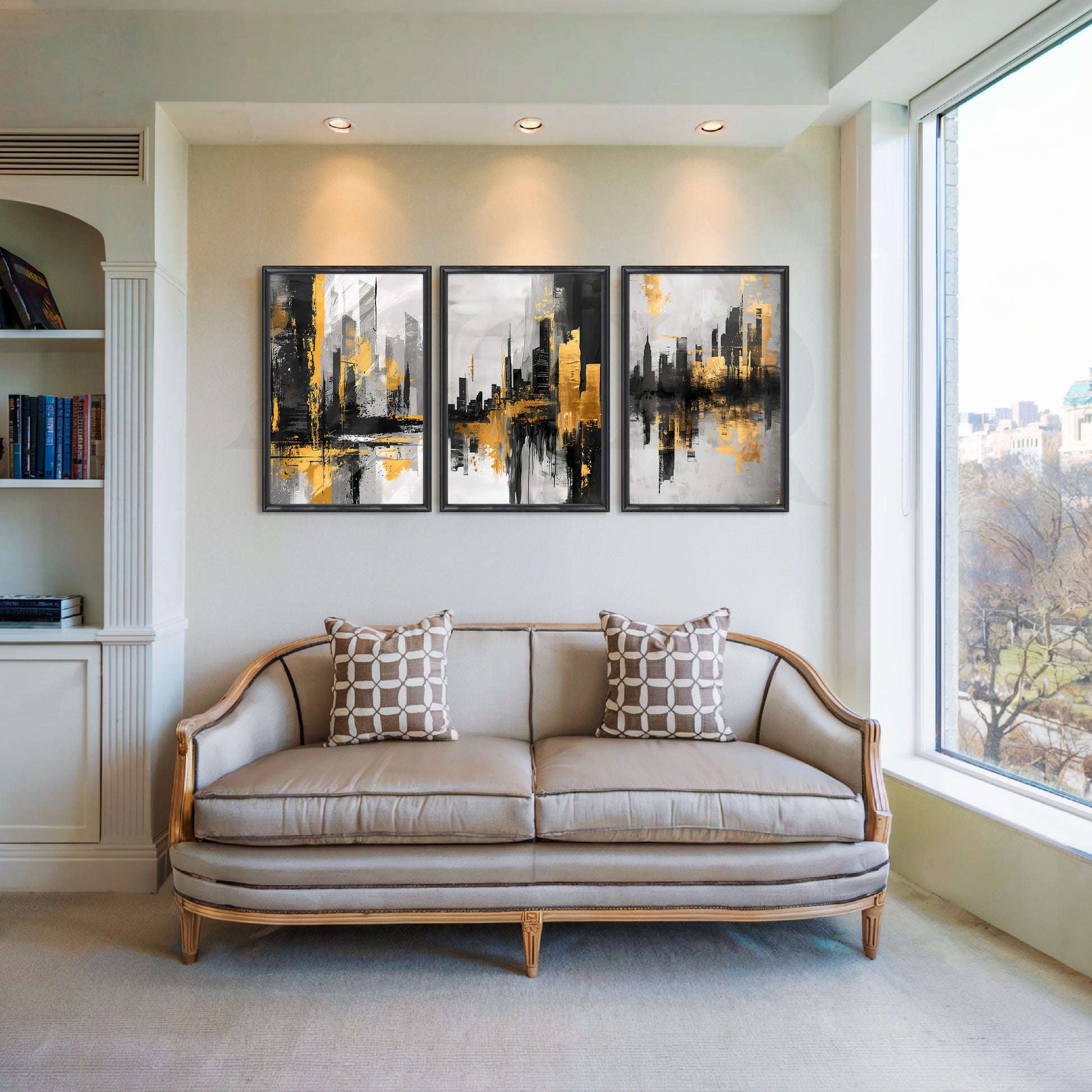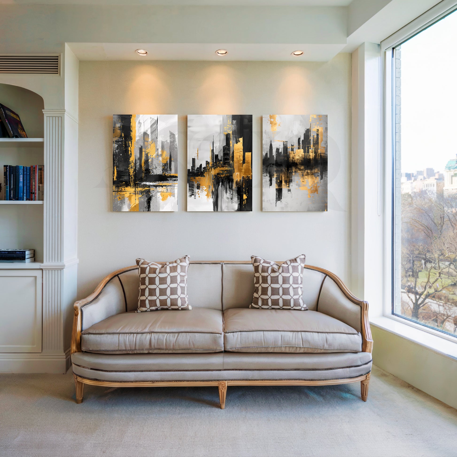 Golden City Reflections Gallery Wall – Set of 3 Artworks