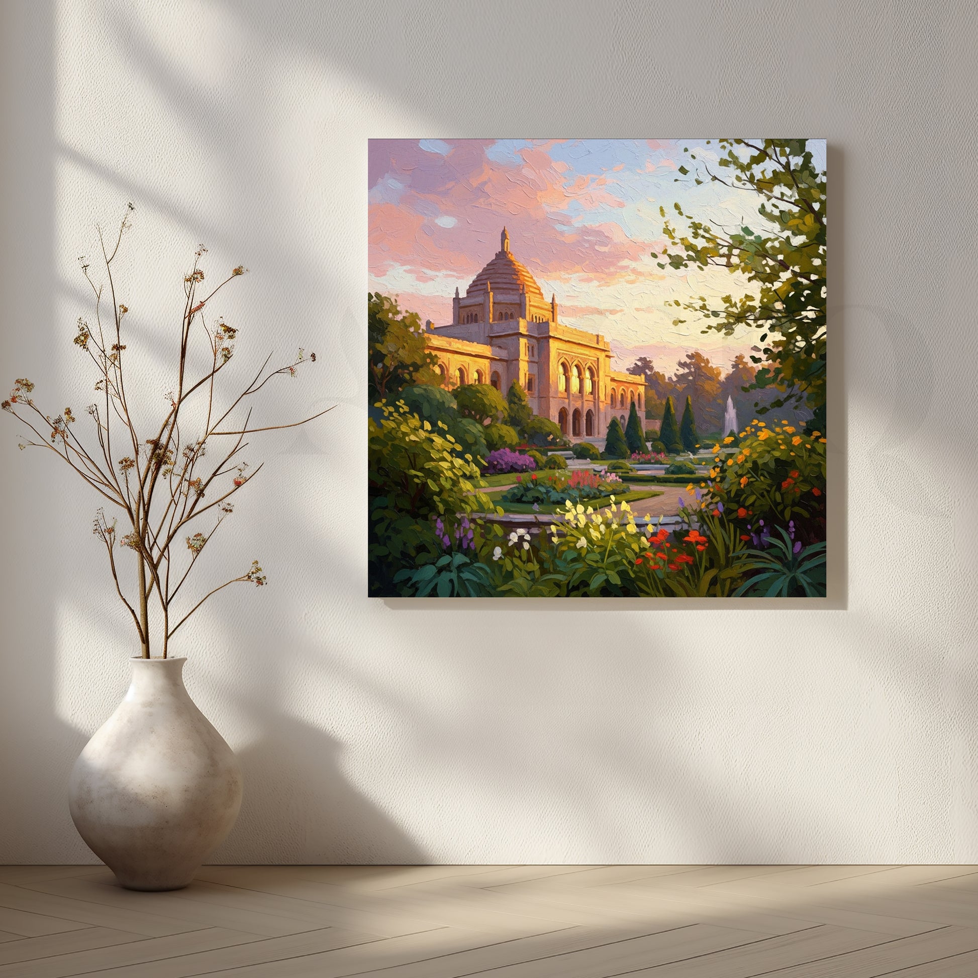 Golden Dome Garden Canvas Artwork for Entryway or Drawing Room