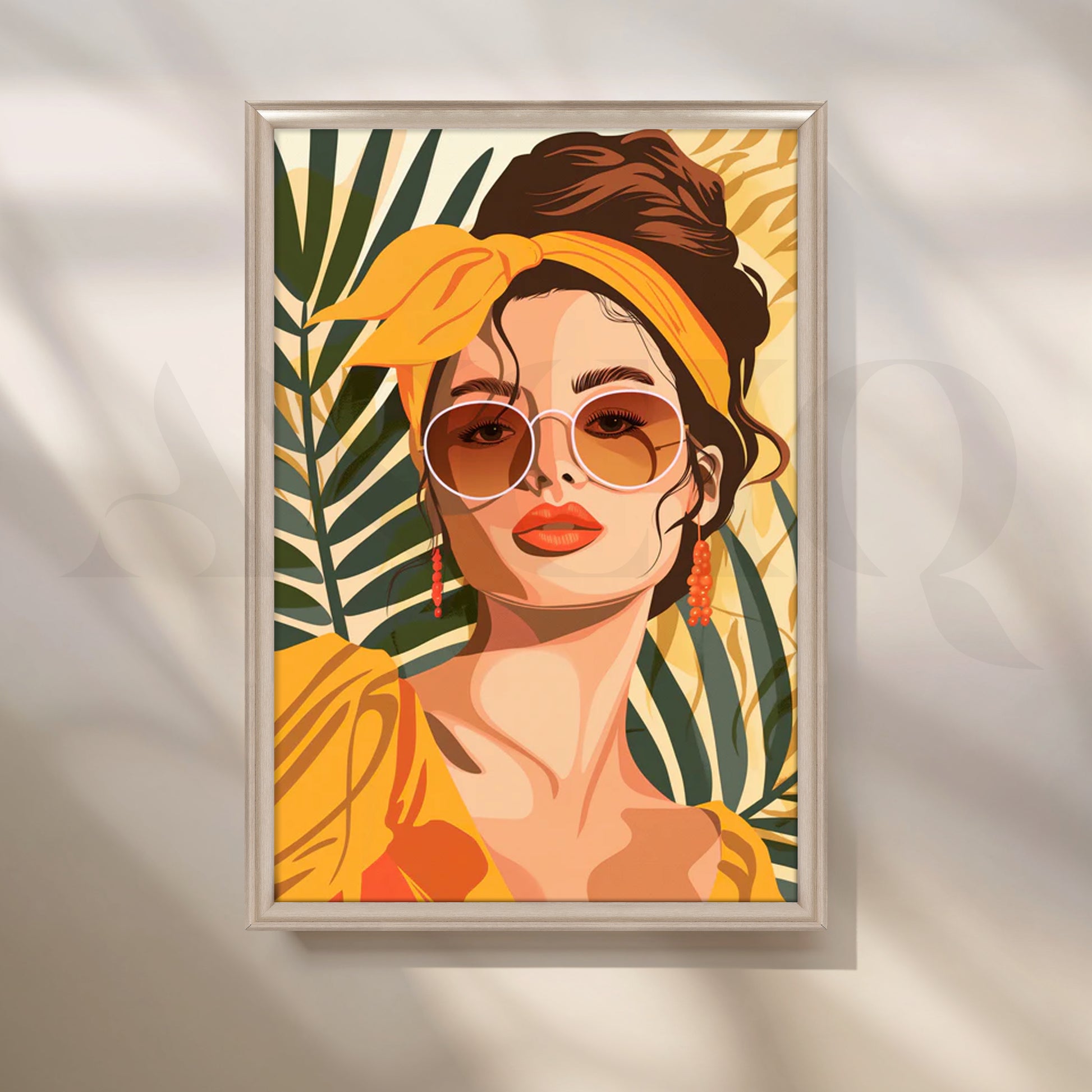 “SUNLIT PALM MUSE” infuses your space with vacation-ready energy—sun-kissed yellows, leafy greens, and chic retro accents. The stylish portrait and tropical fronds create a crisp, graphic look that reads as modern wall art for a contemporary living room, home office, or studio. Ideal as large living room art or hallway statement décor, this abstract canvas painting elevates gallery walls and pairs perfectly with coastal, mid-century, and boho design schemes.