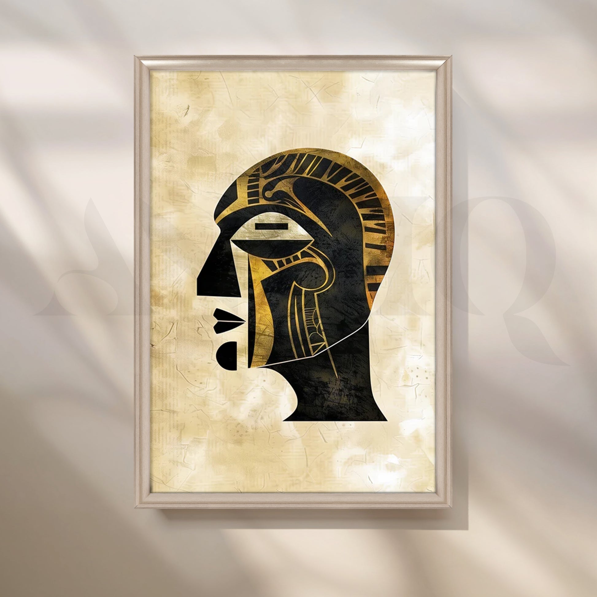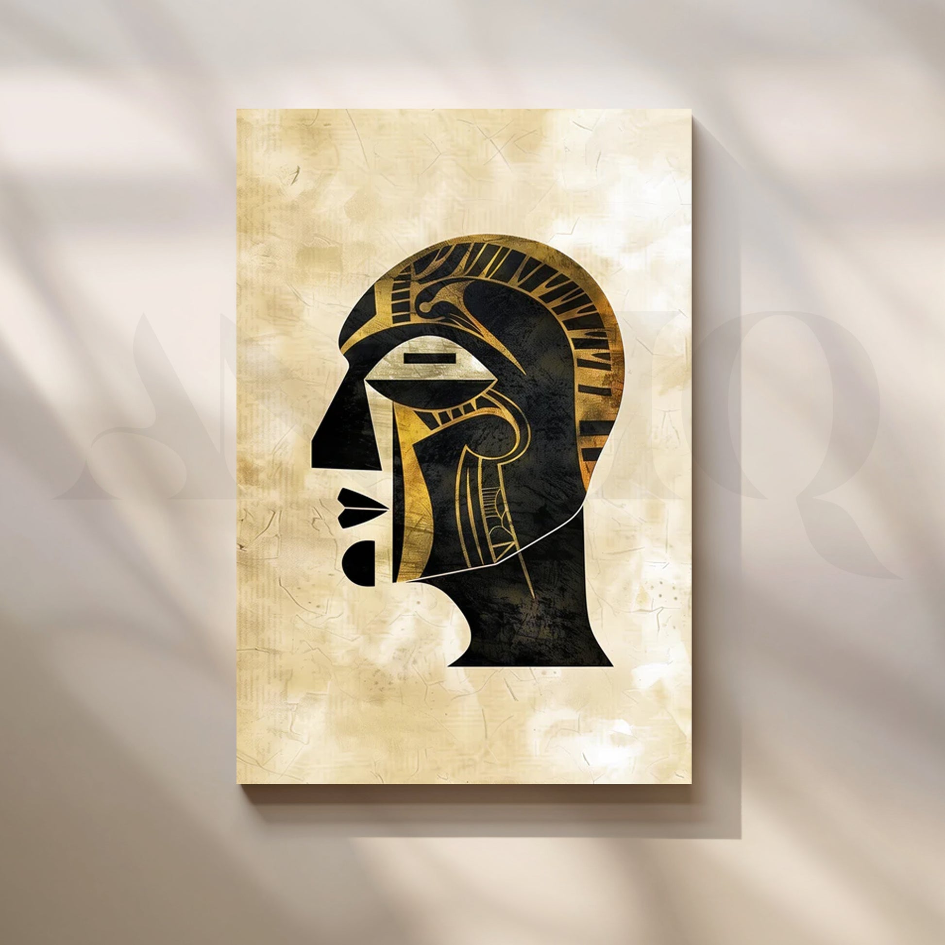 "Golden Dynasty” showcases a refined black-and-gold profile inspired by ancient motifs, rendered on a textured neutral ground. This sleek modern canvas painting reads like luxury art décor—perfect for a sophisticated home office or study. Its neutral palette with metallic accents complements contemporary interiors, while keywords like modern wall art, abstract face art, and large office art ensure it’s easy to find for buyers seeking elevated, timeless design.