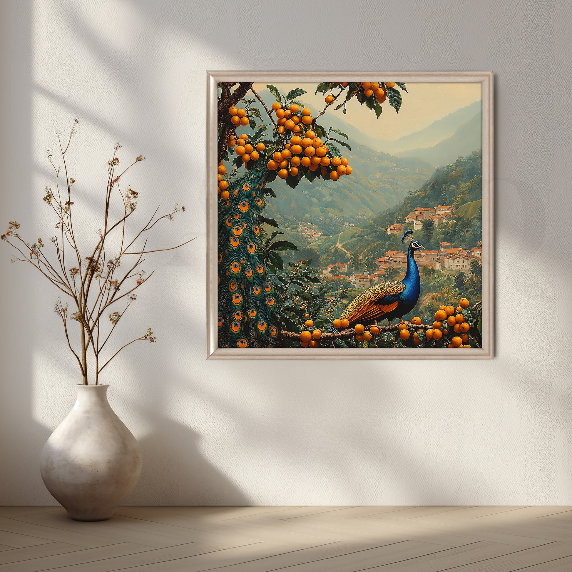 Hillside Orchard Peacock Canvas Artwork for Living Room Wall Decor