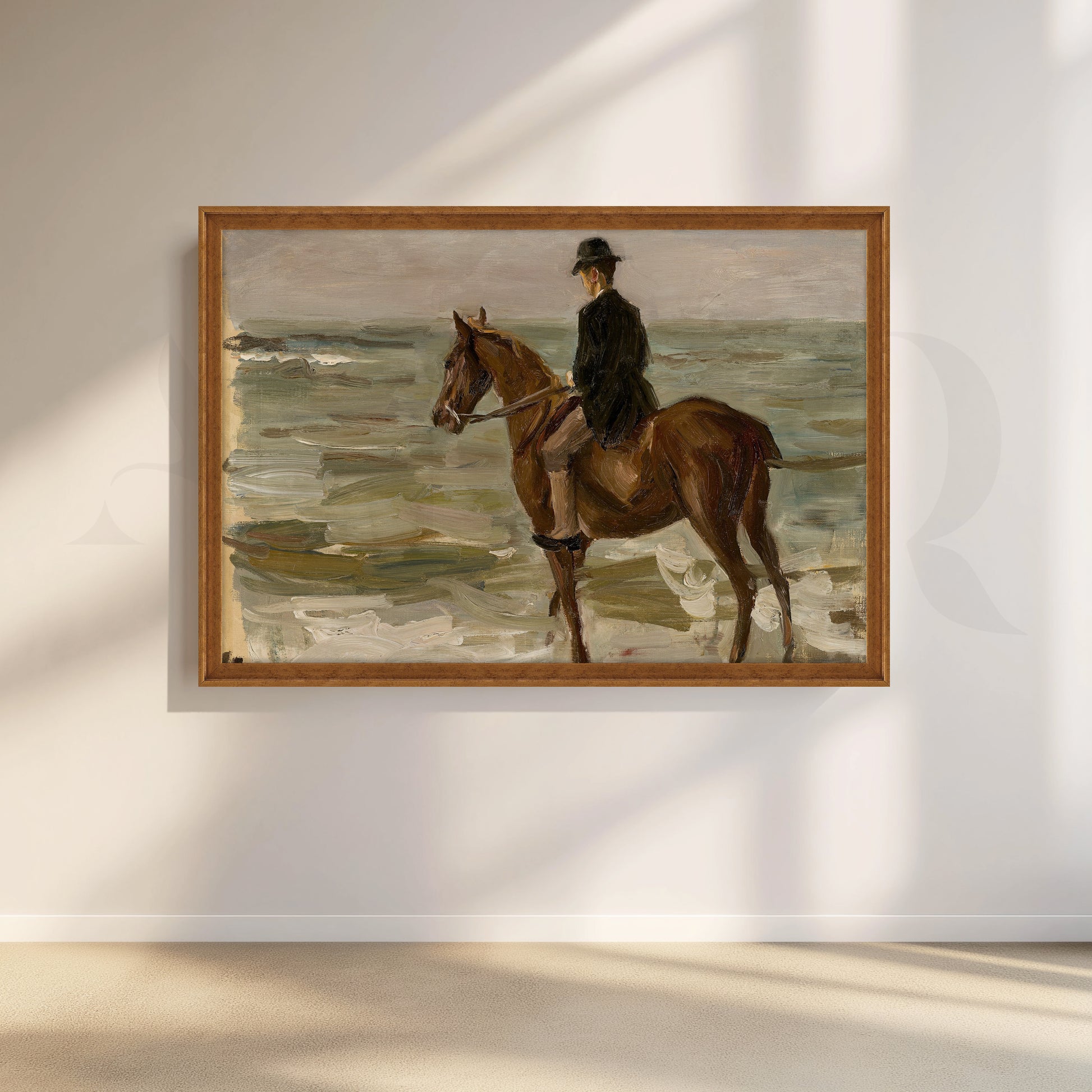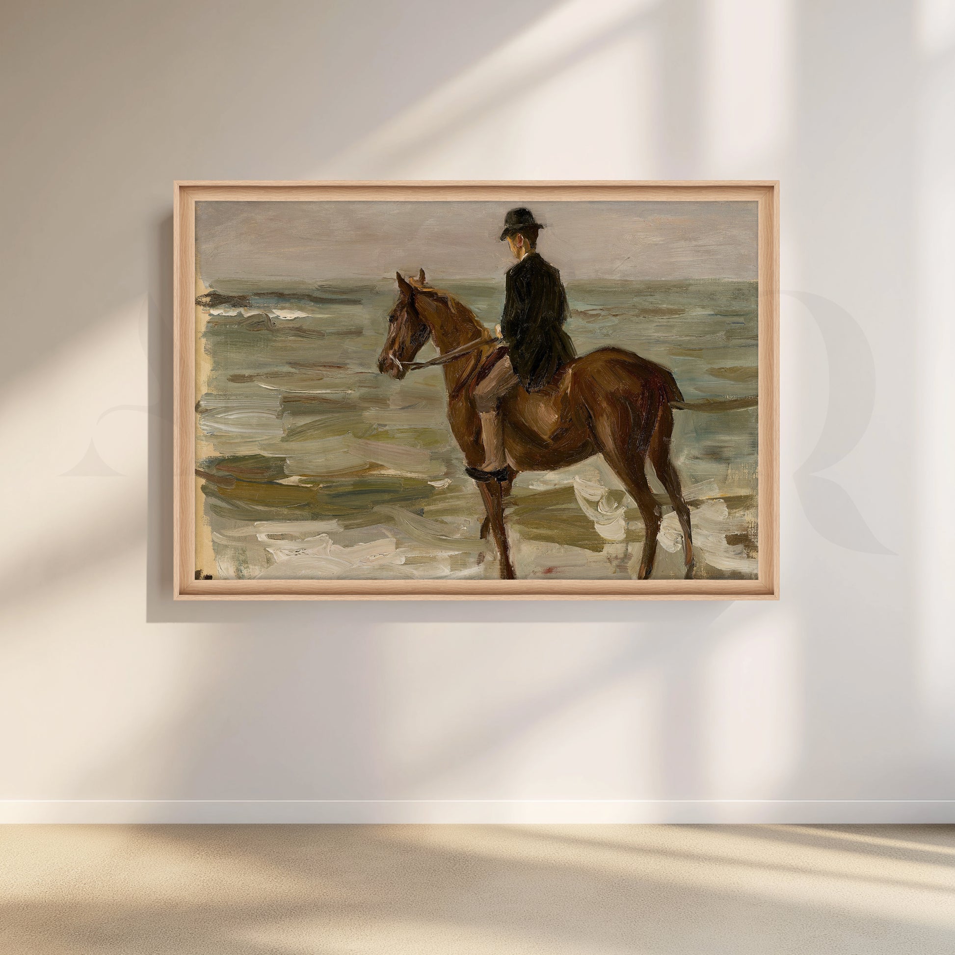 Capture quiet strength with this serene canvas artwork depicting a lone rider gazing into the ocean. This equestrian coastal painting makes an ideal wall piece for a study, lounge, or hallway. Perfect for those seeking minimalist seascape art or horse-themed canvas decor.