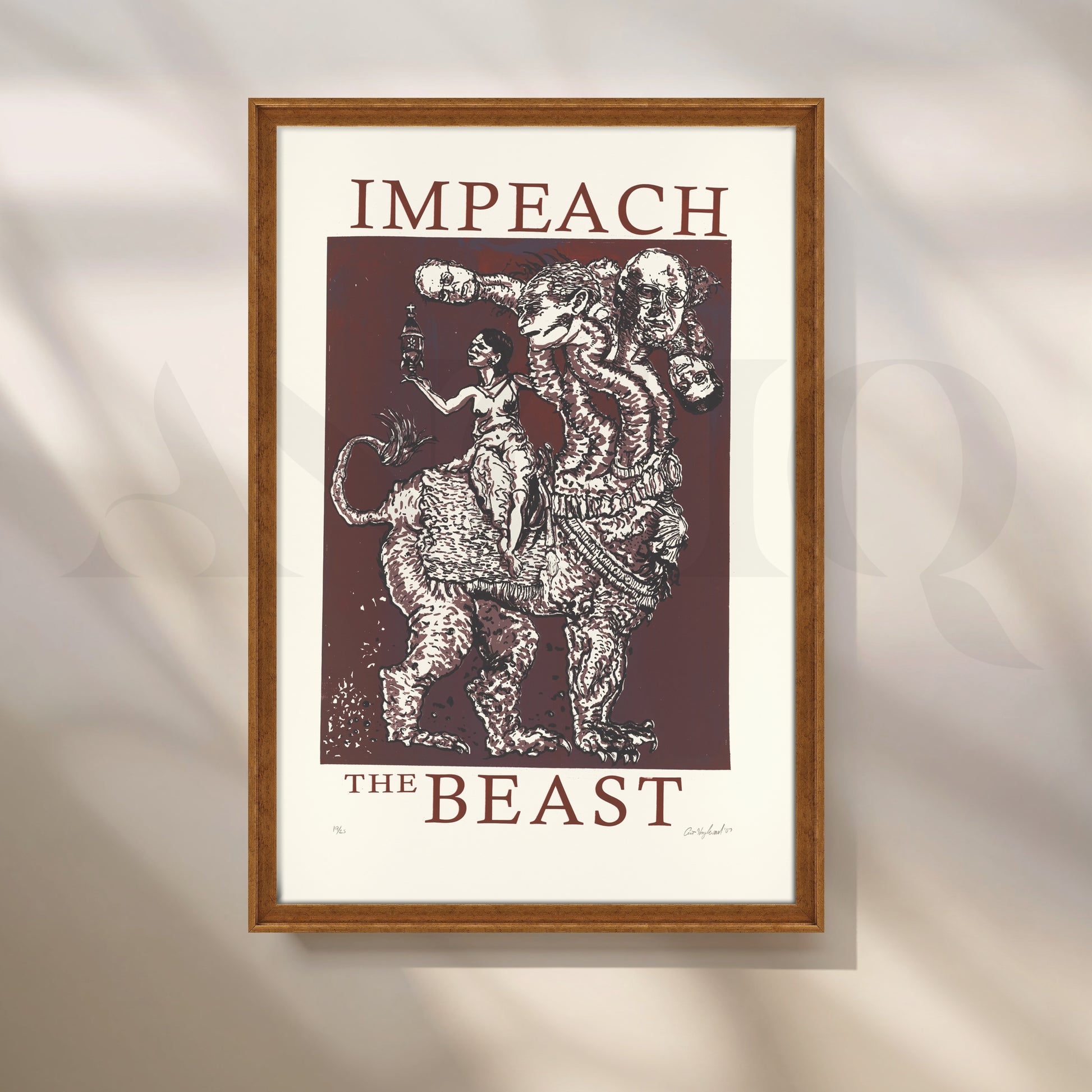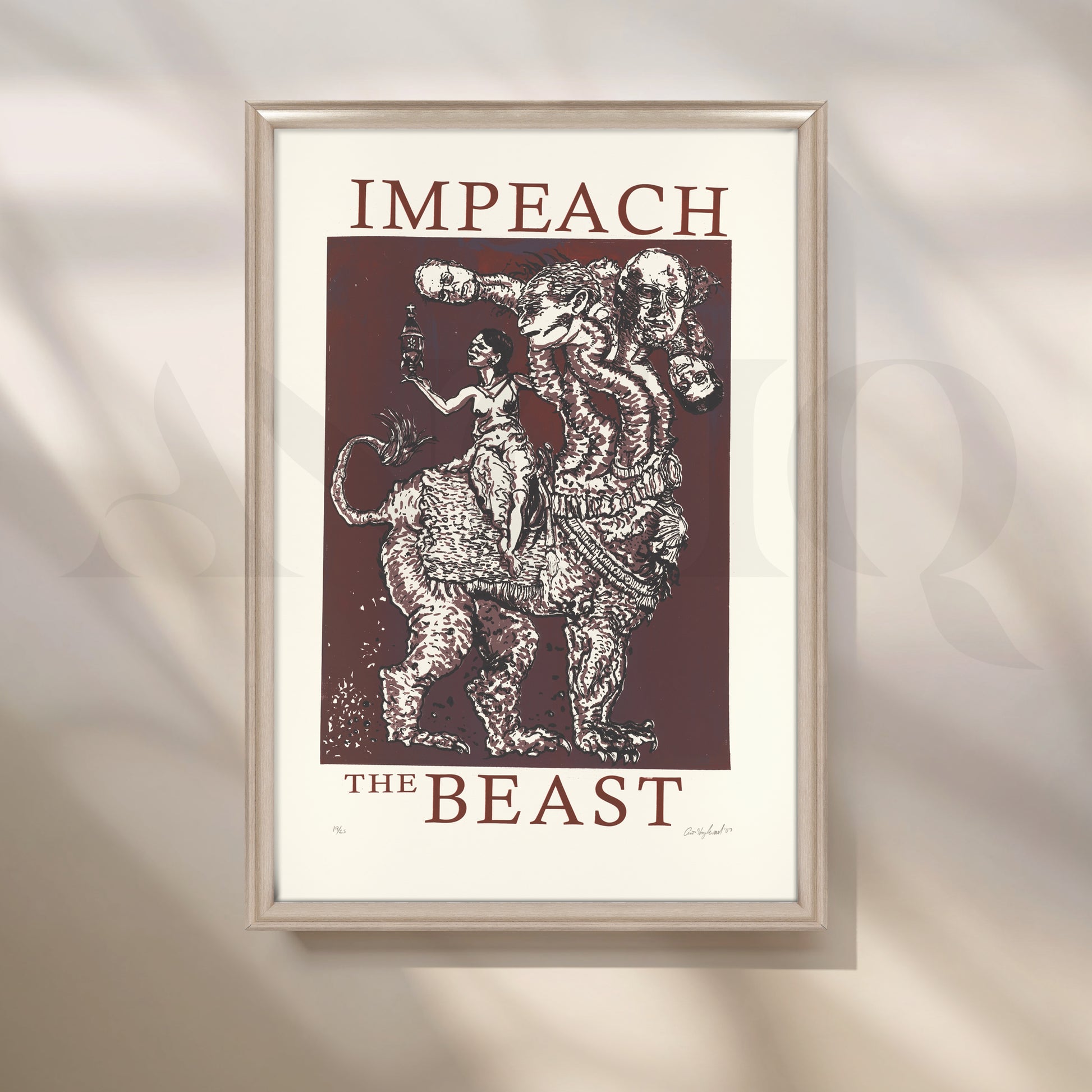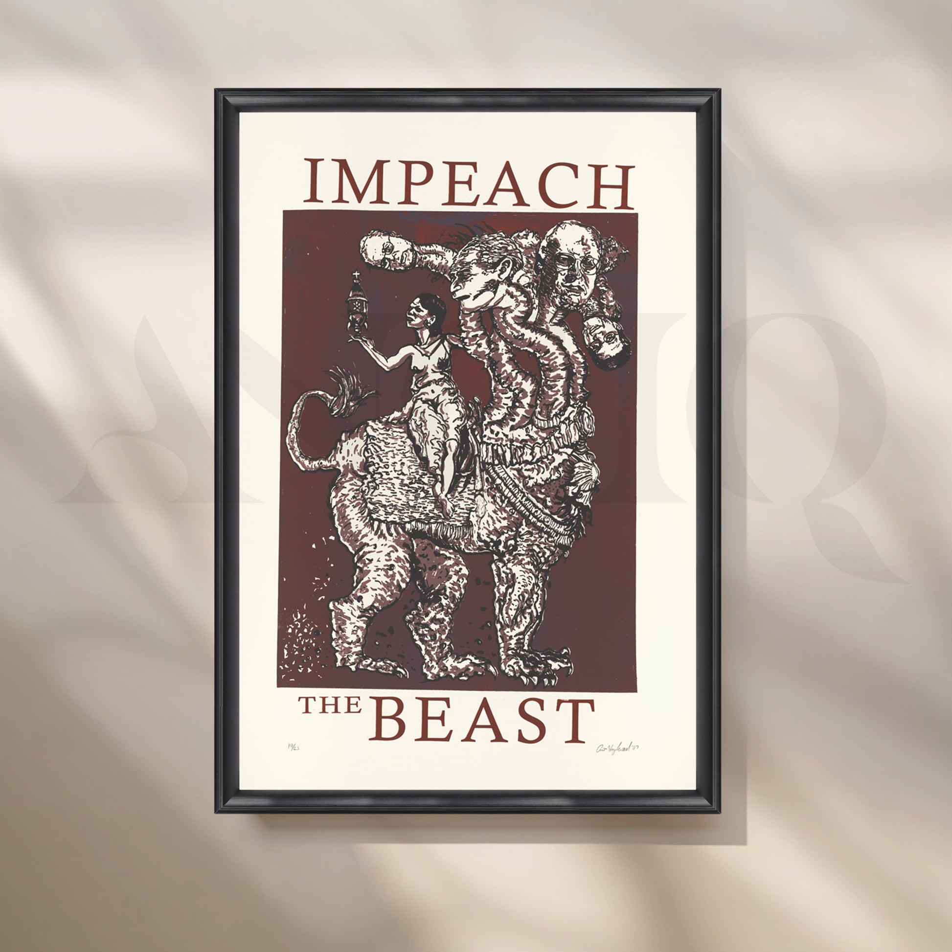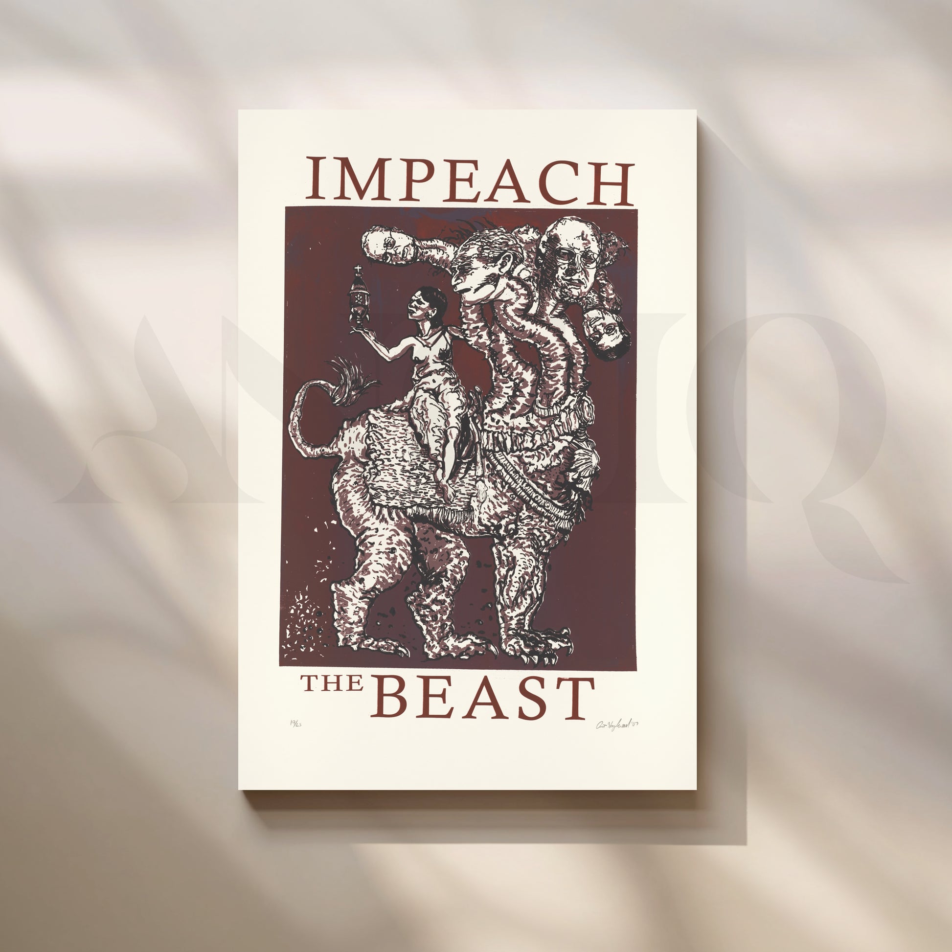 Anciq ‘Impeach the Beast’ Canvas Artwork for Political Art Collectors is a bold, satirical piece highlighting power, corruption, and resistance. Featuring a surreal multi-headed beast and symbolic characters, this modern political wall art is perfect for study rooms, creative offices, or statement walls in homes that celebrate rebellious thought and activist expression.