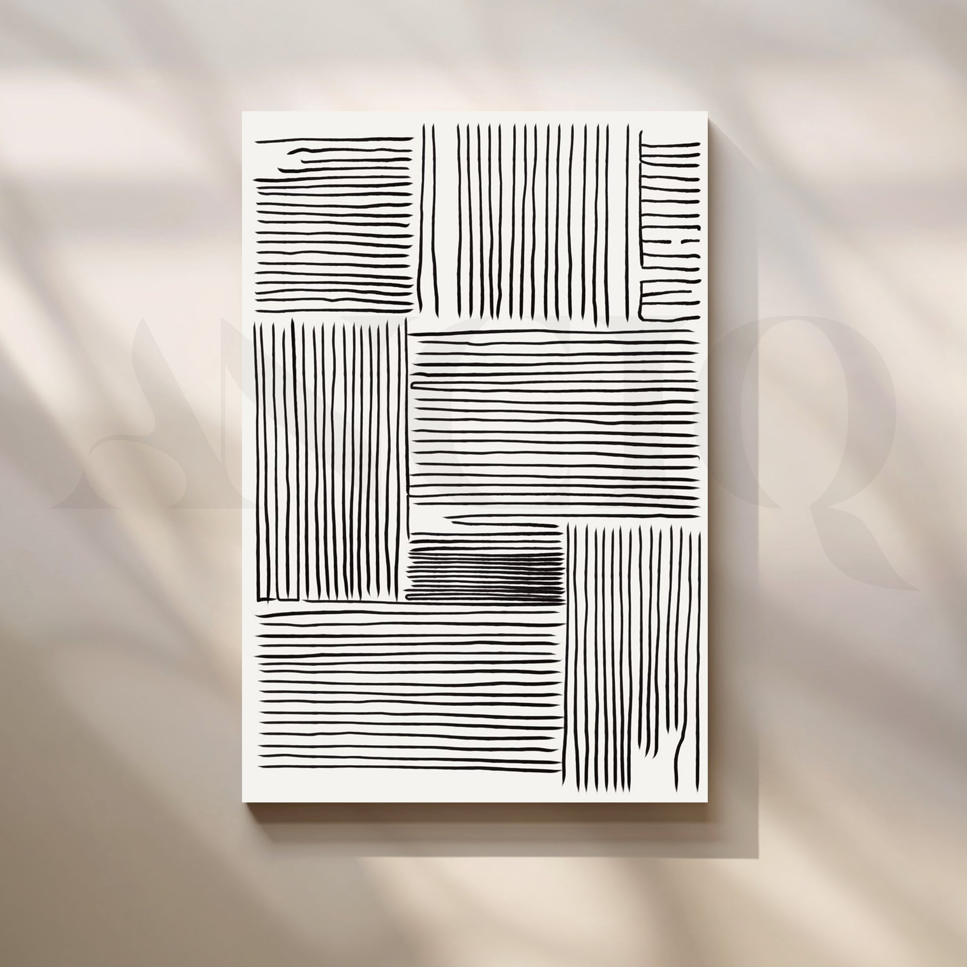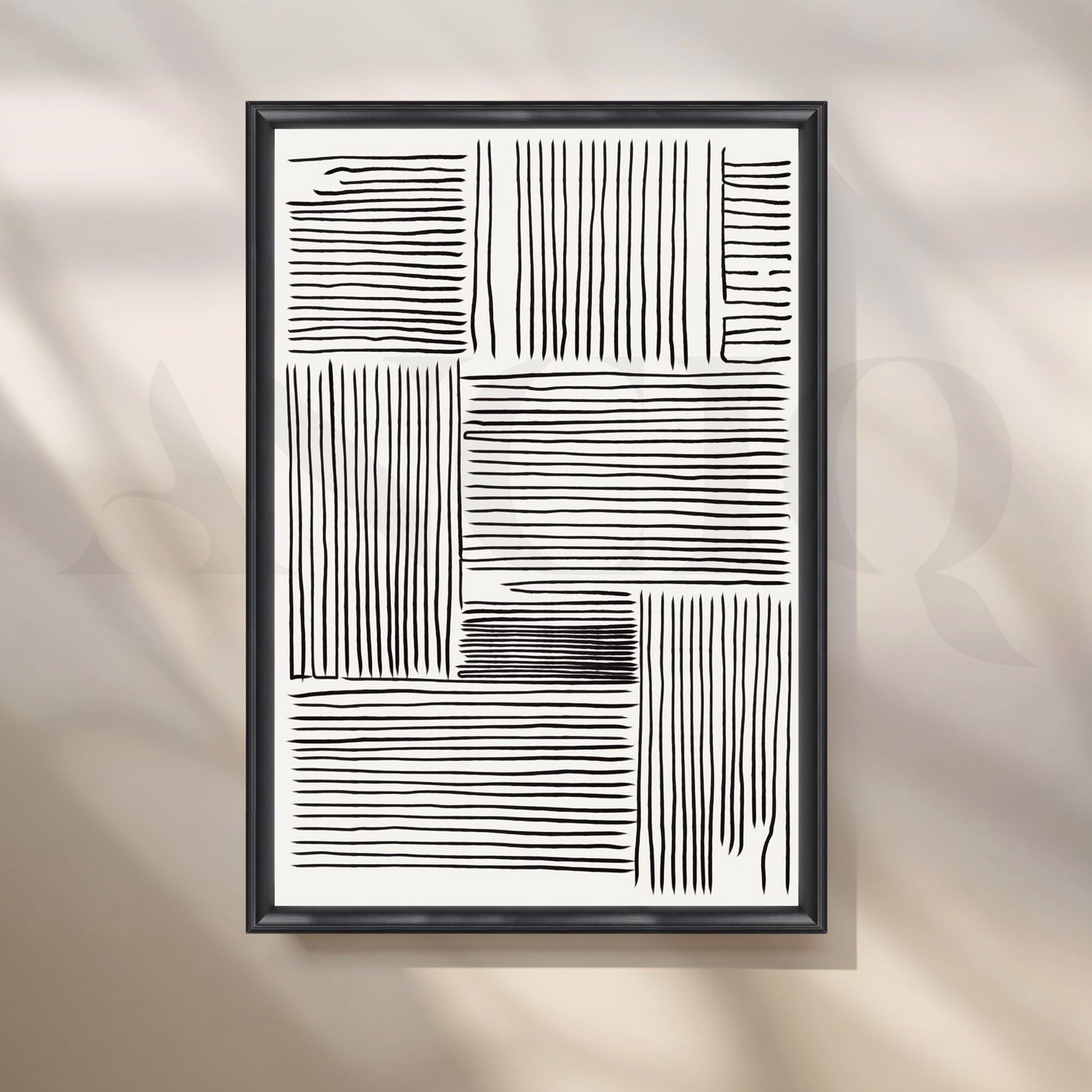 Anciq ‘Linear Mind’ Canvas Painting is a bold black and white composition made entirely of freehand-style vertical and horizontal strokes. Ideal for hallways, workspaces, or Scandinavian-themed interiors, this modern geometric canvas art is a great find for buyers searching linear abstract canvas, black white modern prints, or line pattern wall décor.