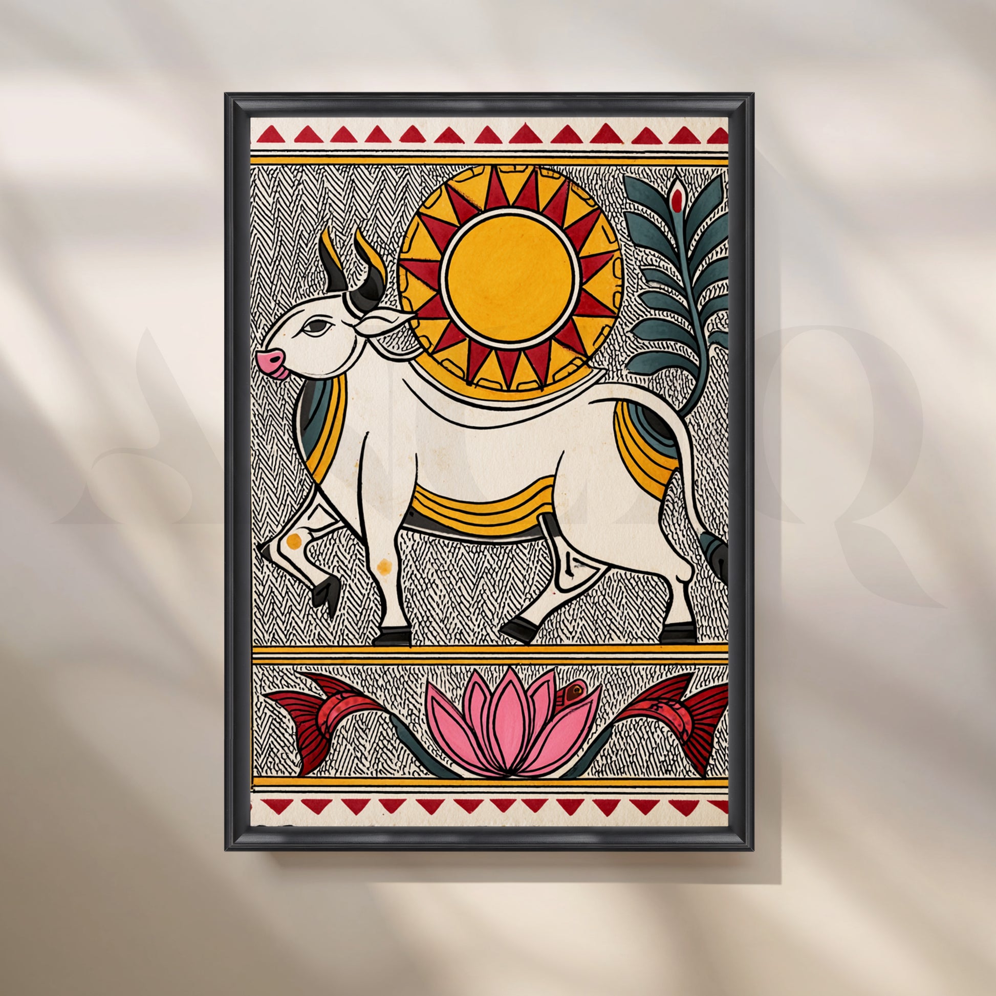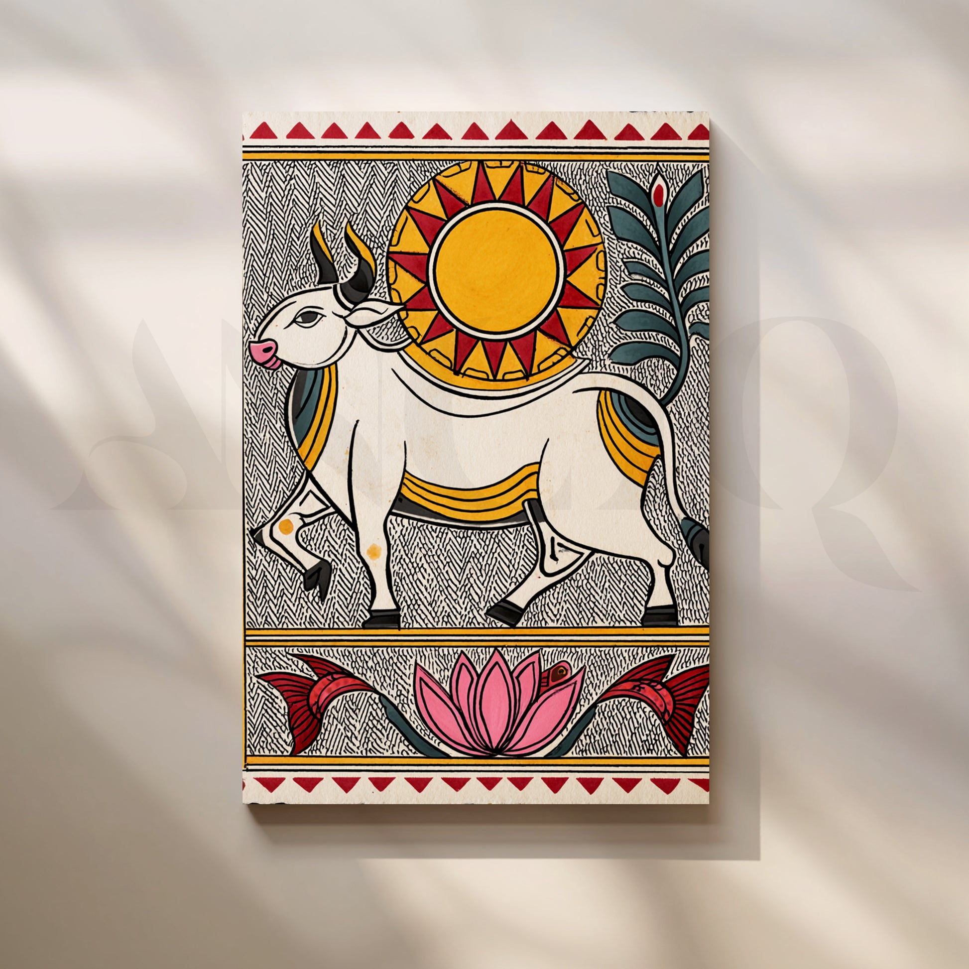 “Madhubani Sacred Bull” Canvas Painting for Pooja Room & Entryway
