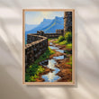 Majestic Mountain Fort Canvas Painting – Scenic Pathway Wall Art for Home Decor