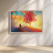 Capture a moment of quiet contemplation. This painting features a solitary figure dwarfed by a lone tree, bathed in the warm glow of a sunset. Available in different size, oil on canvas. Perfect for adding a touch of serenity and introspection to your space.