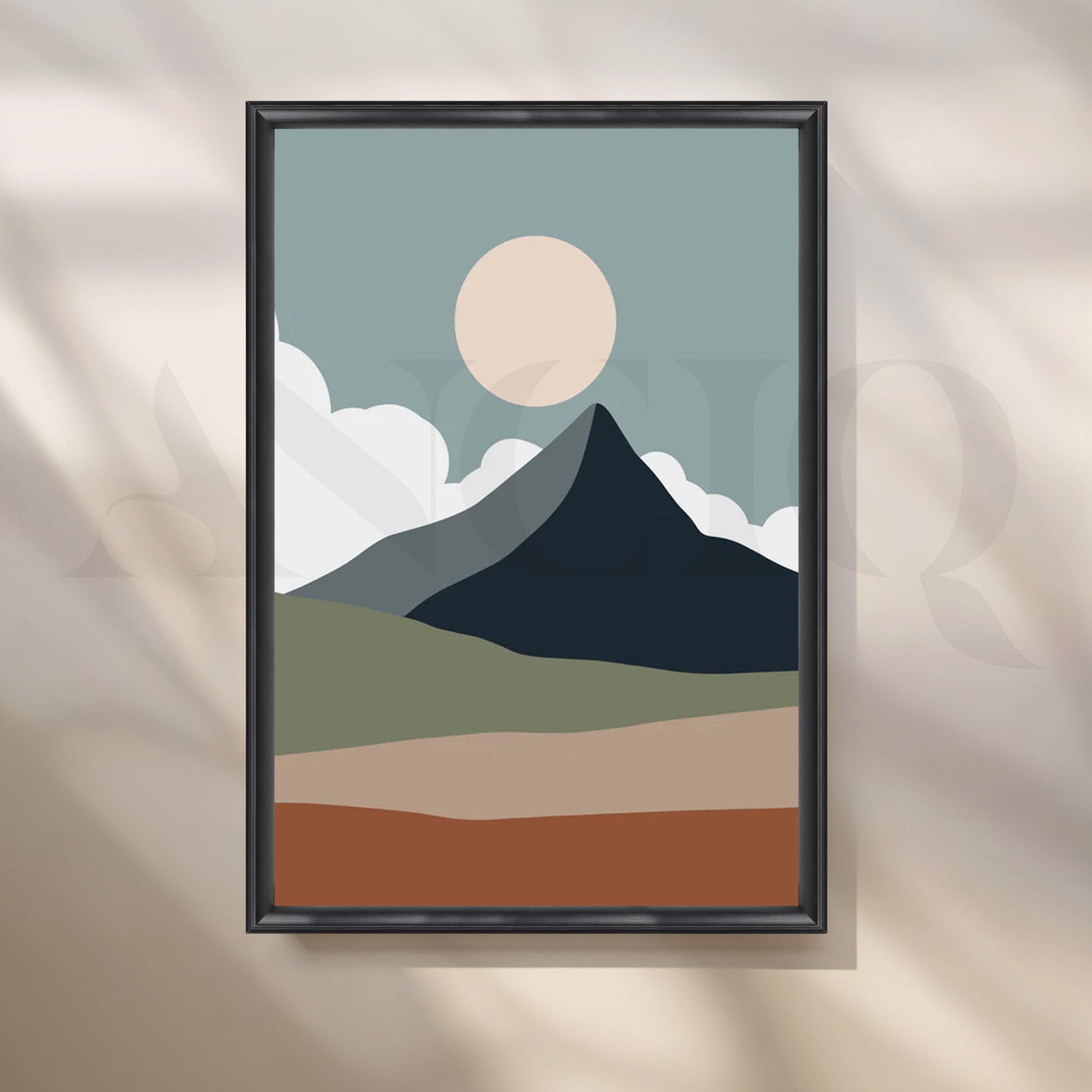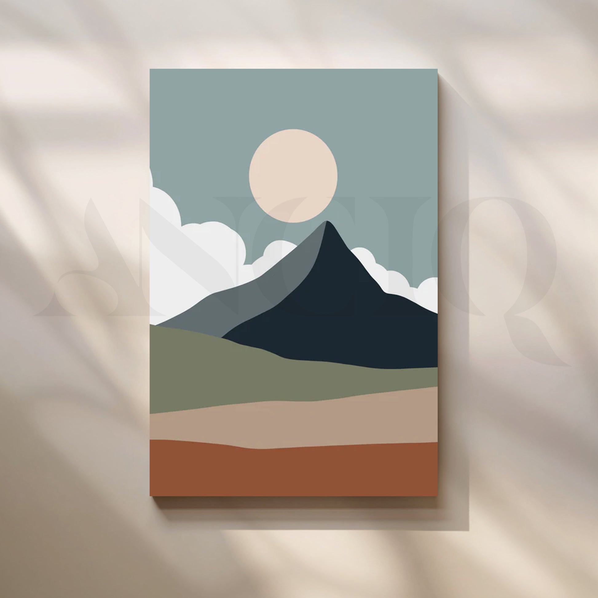 Clean lines and a refined profile meet blush, terracotta and leafy greens in this minimalist botanical canvas. Its mid-century inspired shapes and serene palette add polished warmth to a home office, study nook or creative studio—ideal modern wall art for a focused, stylish workspace. Works beautifully as abstract canvas painting, botanical wall décor, or large living room art.