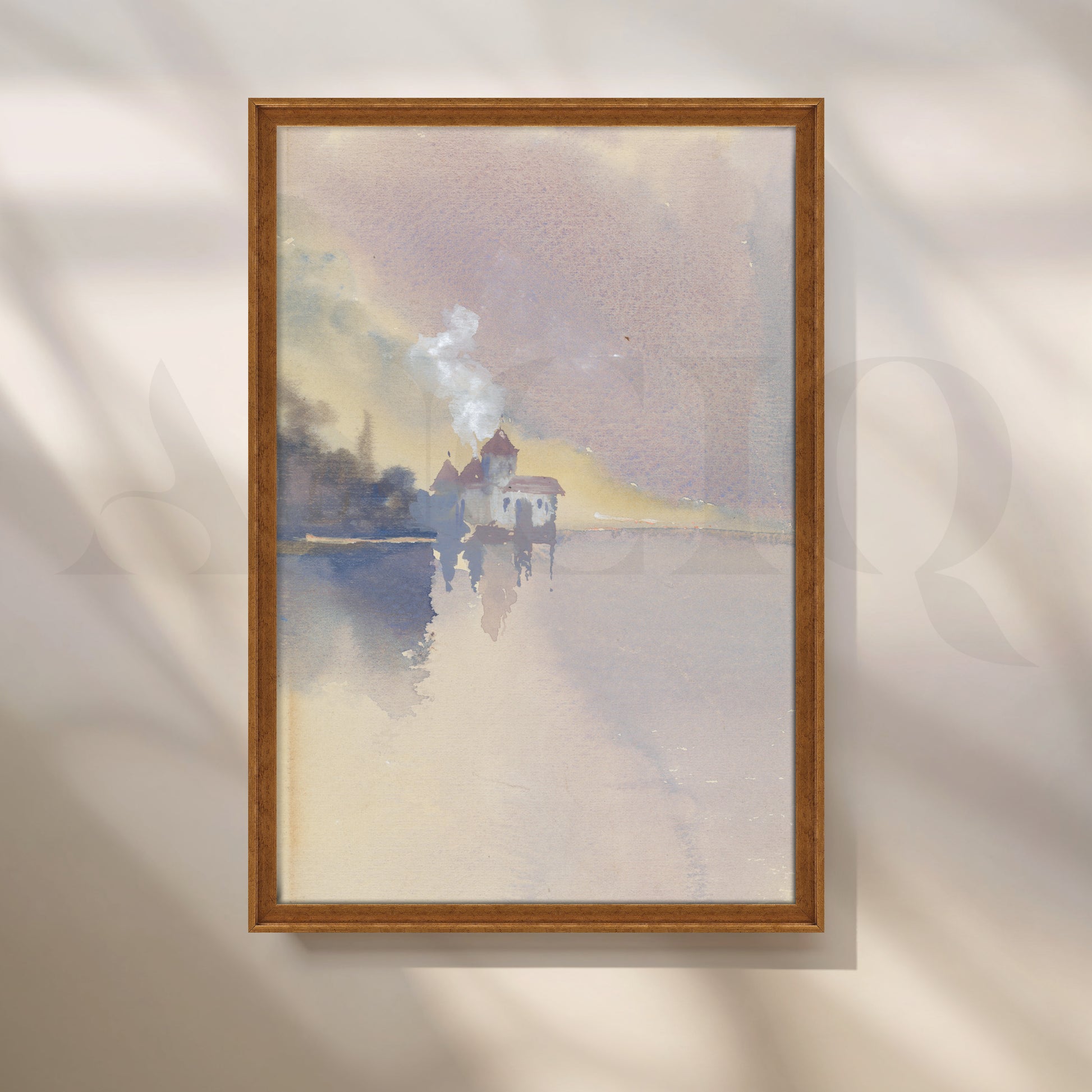 Soft watercolor hues and luminous mist define Misty Chapel, a tranquil lakeside scene that calms any room. Ideal above a bed or console, this soothing canvas elevates coastal, Japandi, and cottage-modern decor with gentle pastels, delicate gradients, and a peaceful horizon that invites slow living.