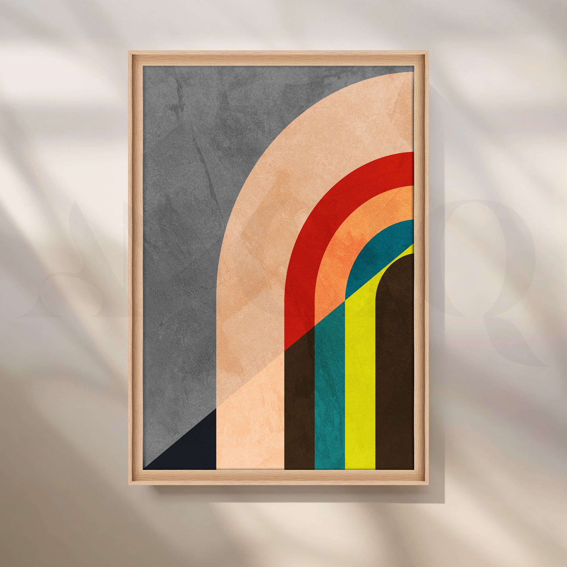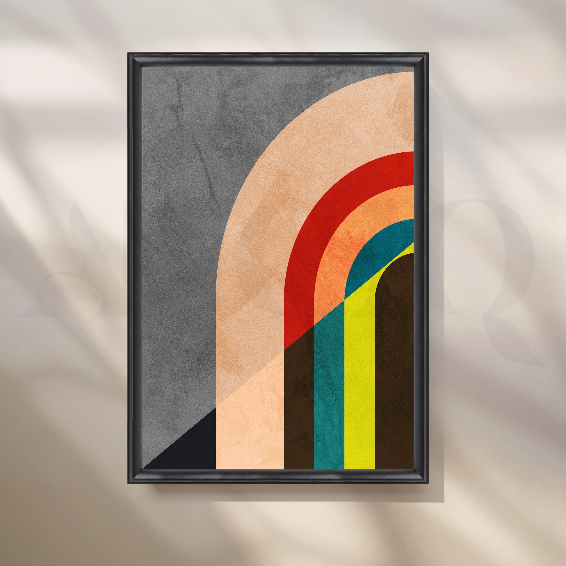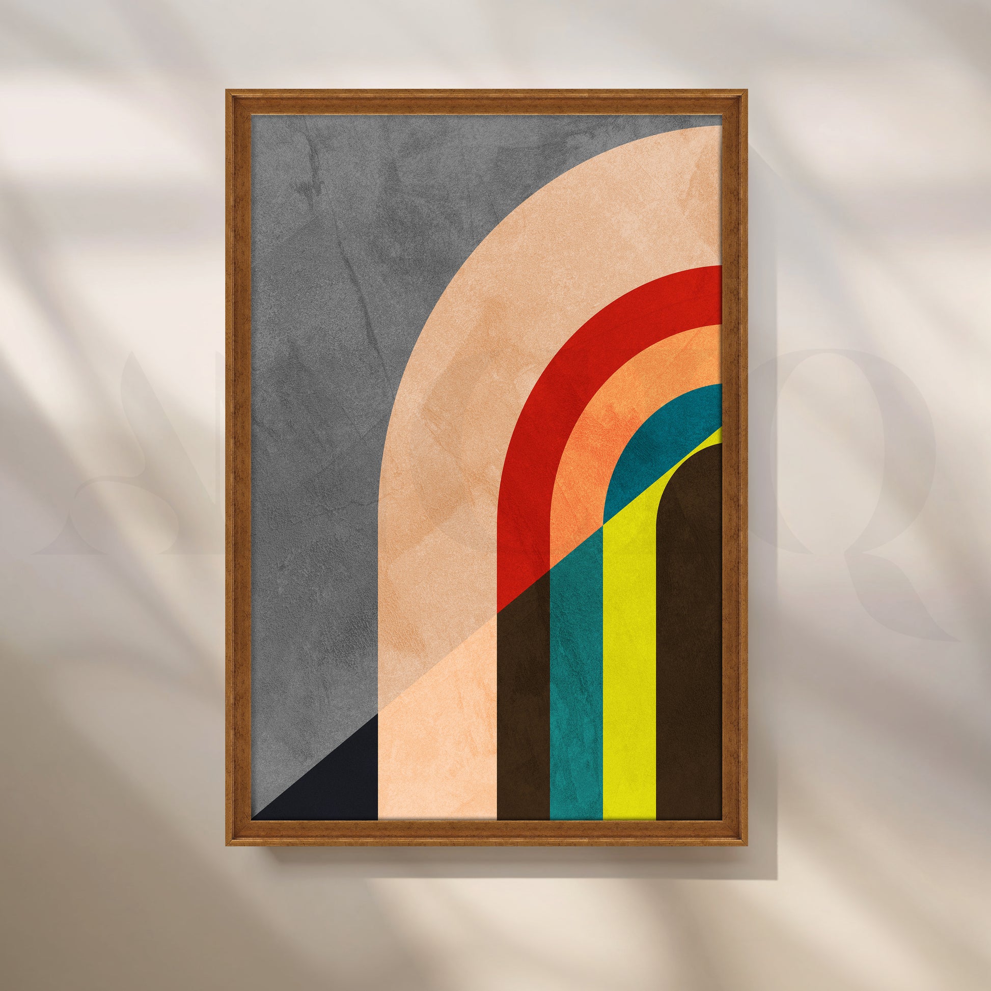 This modern geometric abstract art will transform your space. The wall decor piece depicts vivid multicolored arcs and bold shapes that give a contemporary touch to any room it is placed in. It is an important background for rooms like living rooms or bedrooms as its color combination and clear lines form a picturesque area of interest. If you are looking for something firmer than other pieces with which they can be compared against as well as seeking something energetic, stylish, and sophisticated then this artwork is perfect for you.