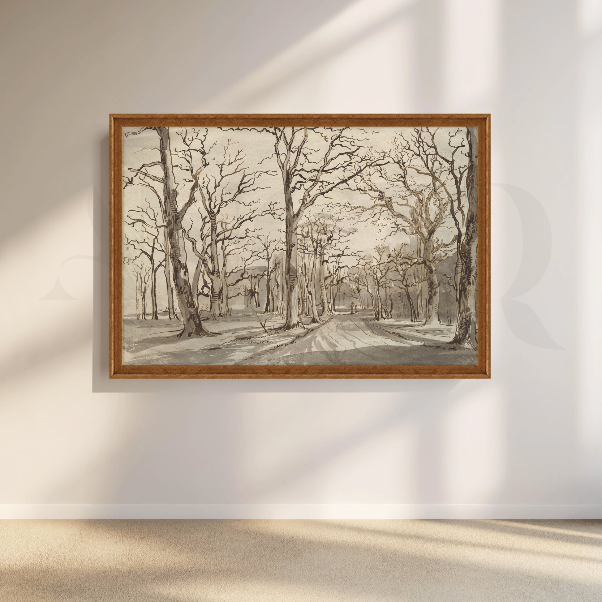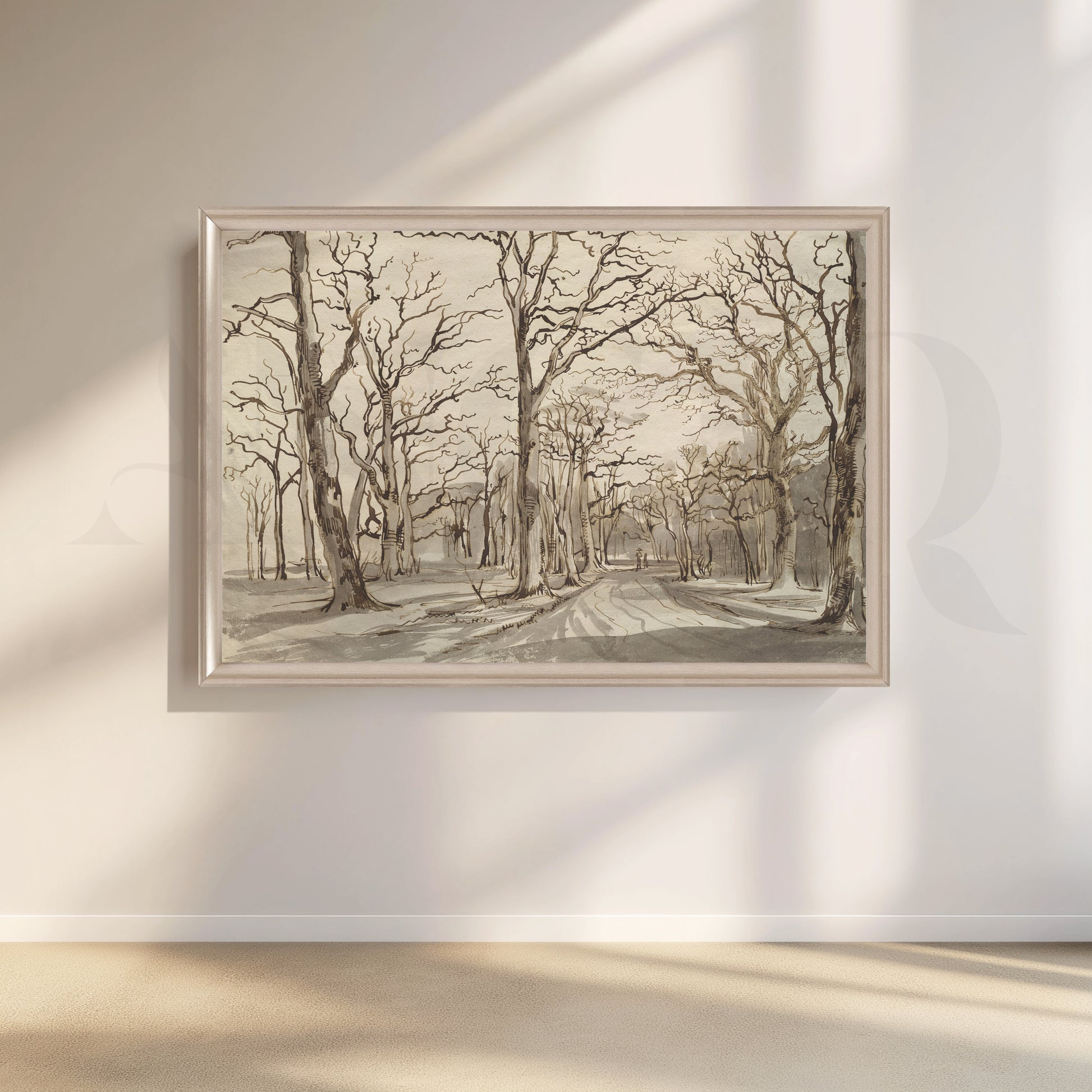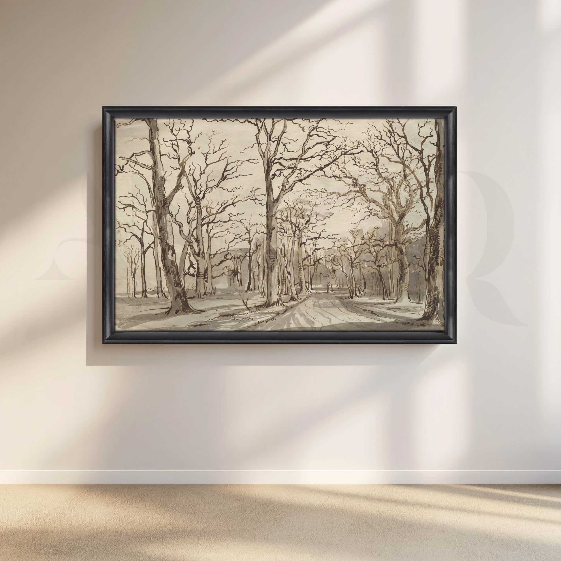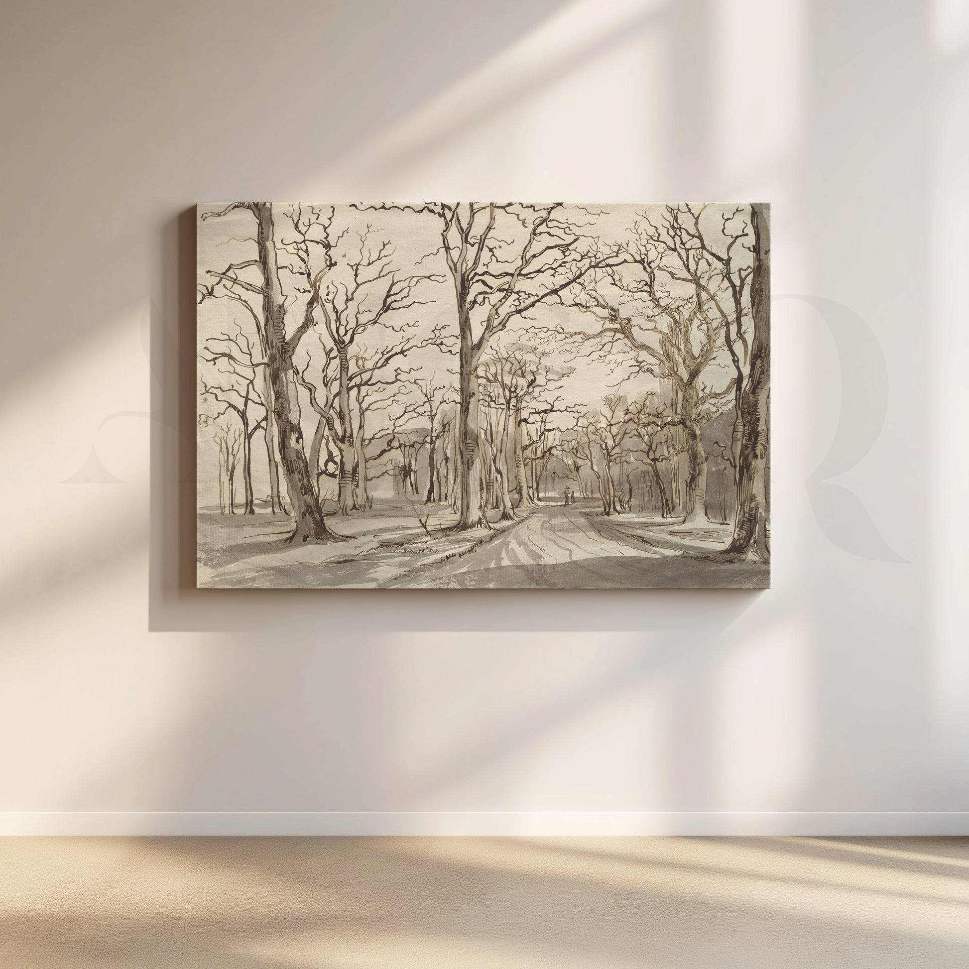 • This monochrome forest path canvas artwork depicts leafless trees lining a quiet woodland road in subtle sepia tones. Perfect for modern, minimalist, and Scandinavian interiors, it works beautifully as hallway or office wall art, adding depth, mood, and texture while keeping the palette neutral for easy pairing with existing décor and furnishings.