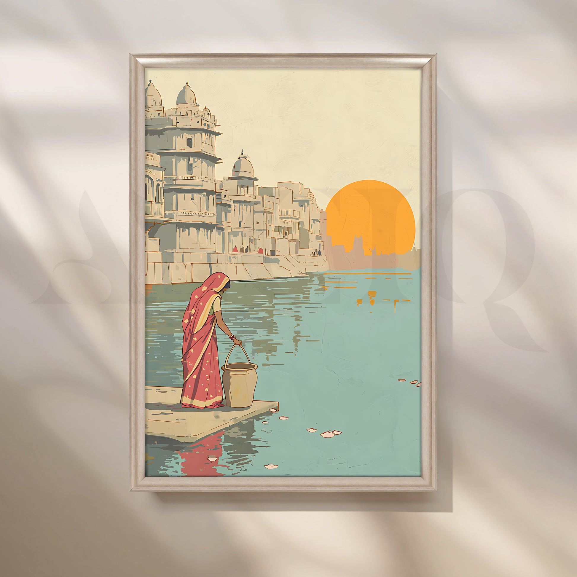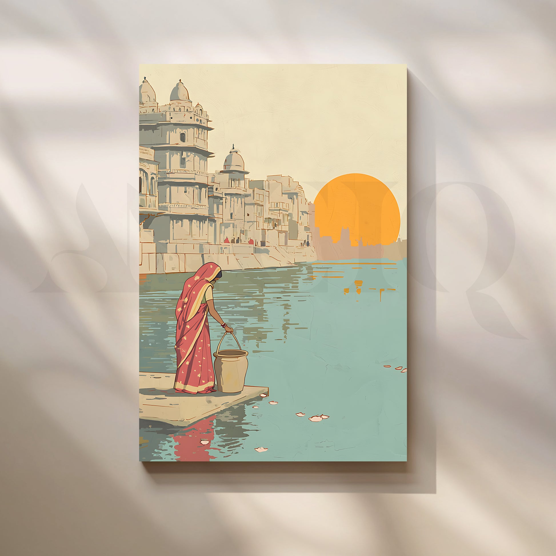 Morning by the Ghats Canvas Artwork for Entryway