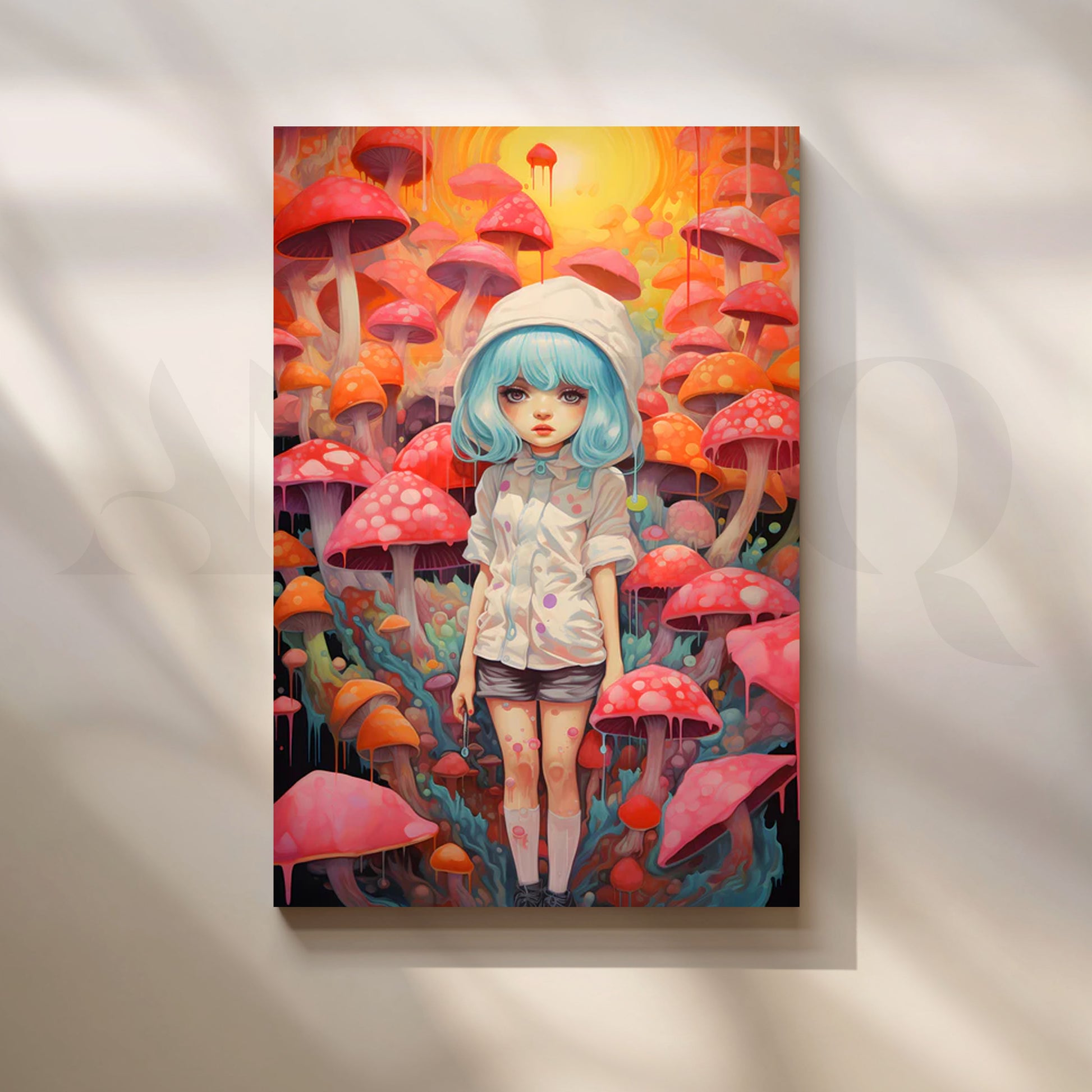 Mushroom Dream Girl Canvas Painting for Bedroom/Creative Studio