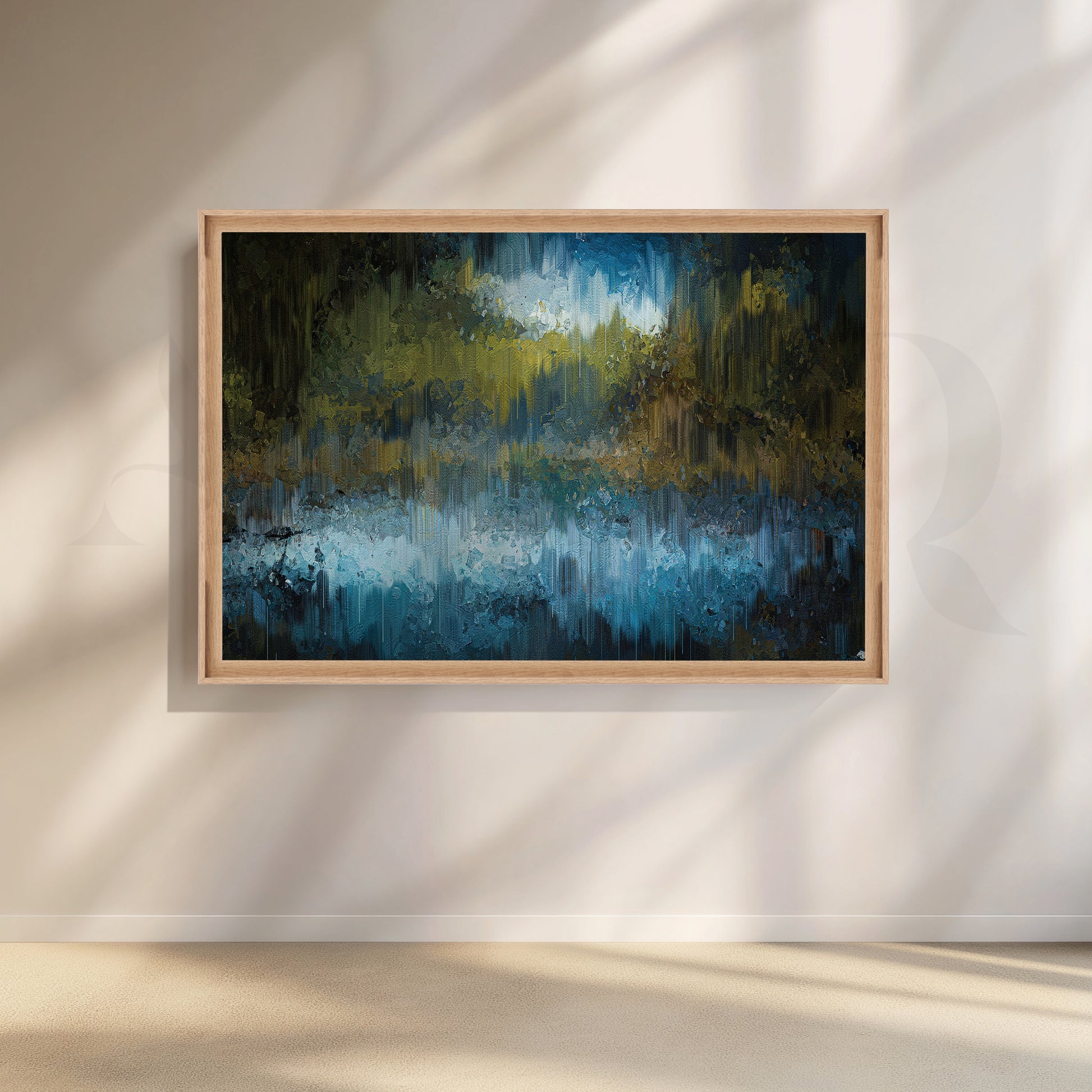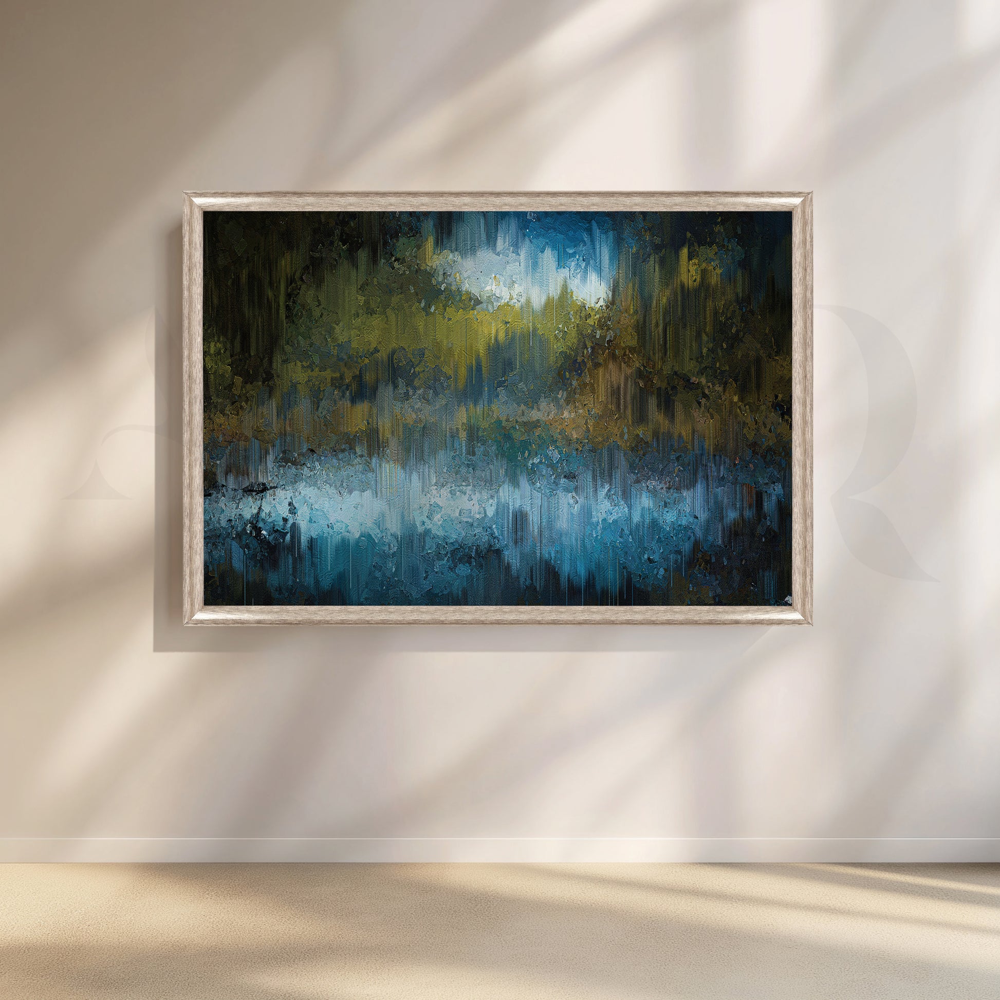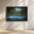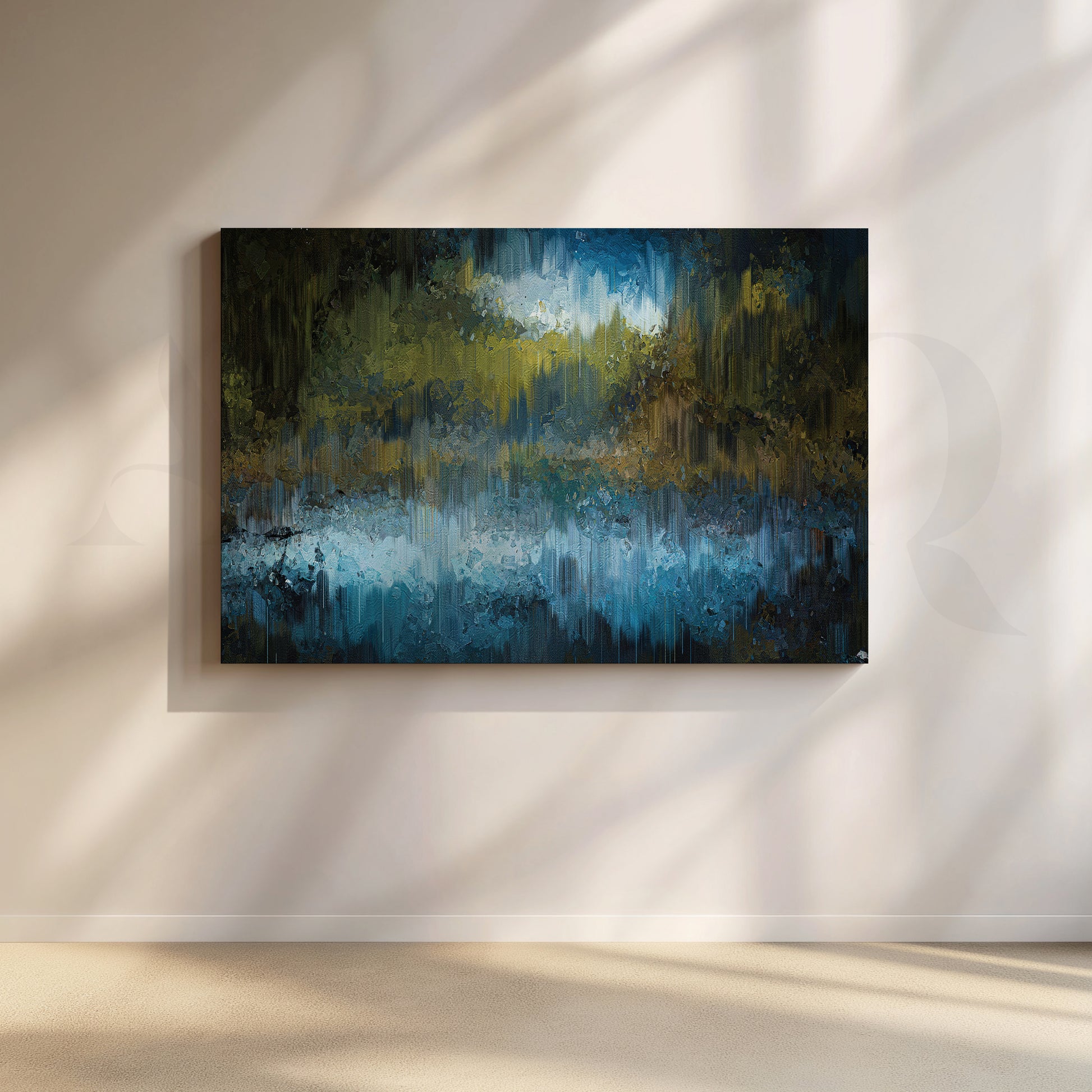 Immerse yourself in serenity. This captivating landscape captures a tranquil lake reflecting the vibrant greens of a lush forest. The perfect escape for any room, this canvas masterpiece brings the beauty of nature indoors.
