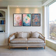 Anciq ‘Pastel Mosaic Dreams’ Gallery Wall blends soft florals, dreamy circular abstracts, and intricate mosaic-style patterns to create a serene, artistic mood. Perfect for living rooms, bedrooms, reading corners, or creative workspaces, this 3-piece set elevates modern and boho-inspired interiors. Ideal for pastel abstract décor and calming gallery wall styling.