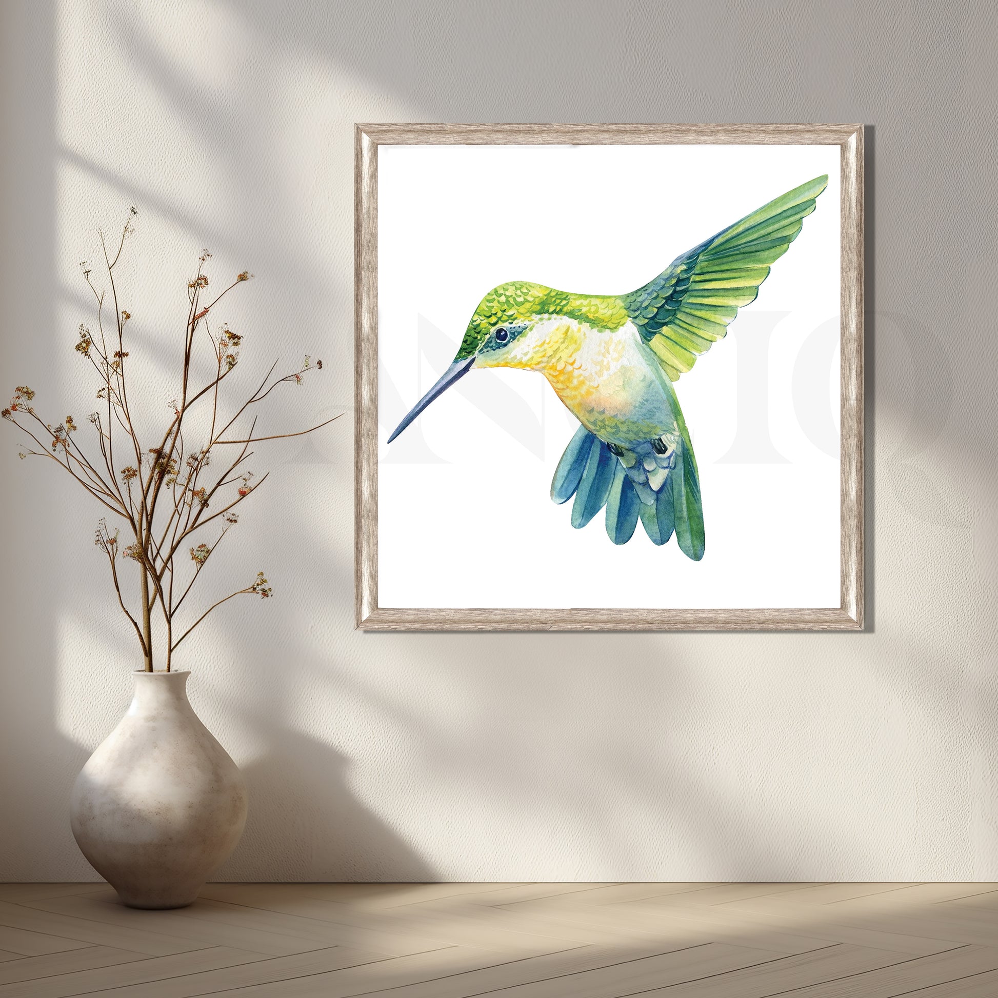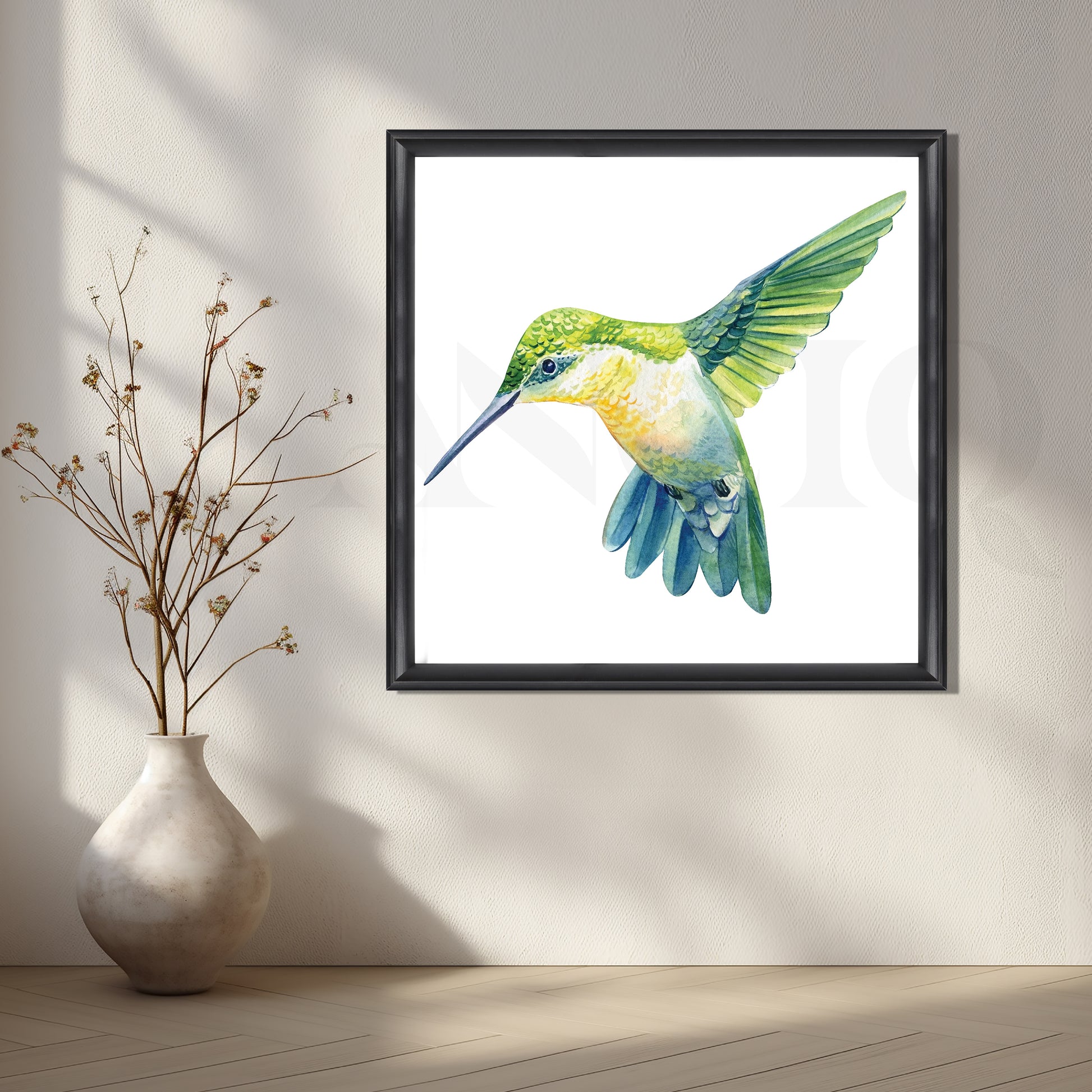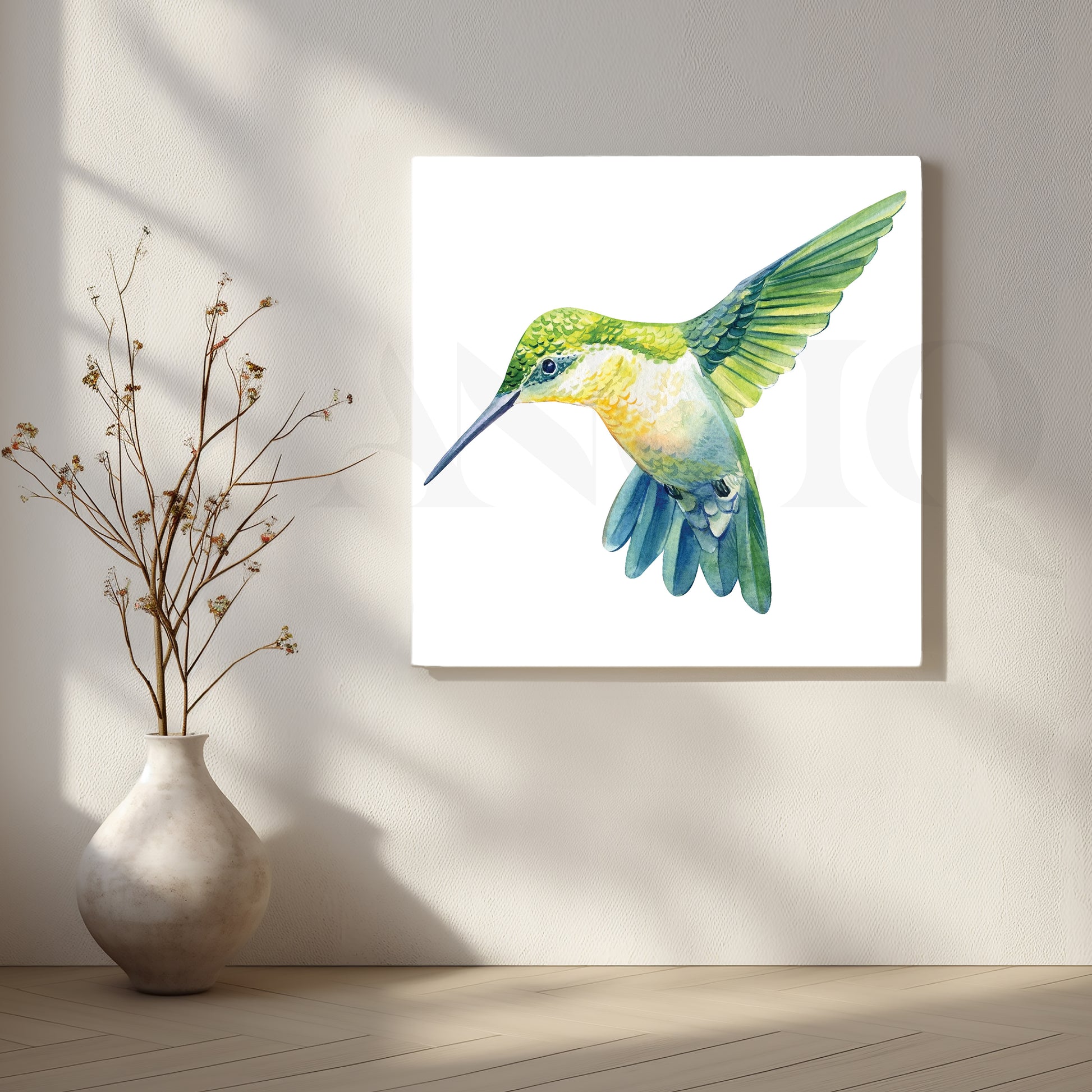 Capture the frenetic dance of a hummingbird mid-flight. This vibrant painting brings a touch of the exotic indoors, with its jewel-toned feathers and delicate brushstrokes. Perfect for nature lovers and those seeking a burst of color for their home.