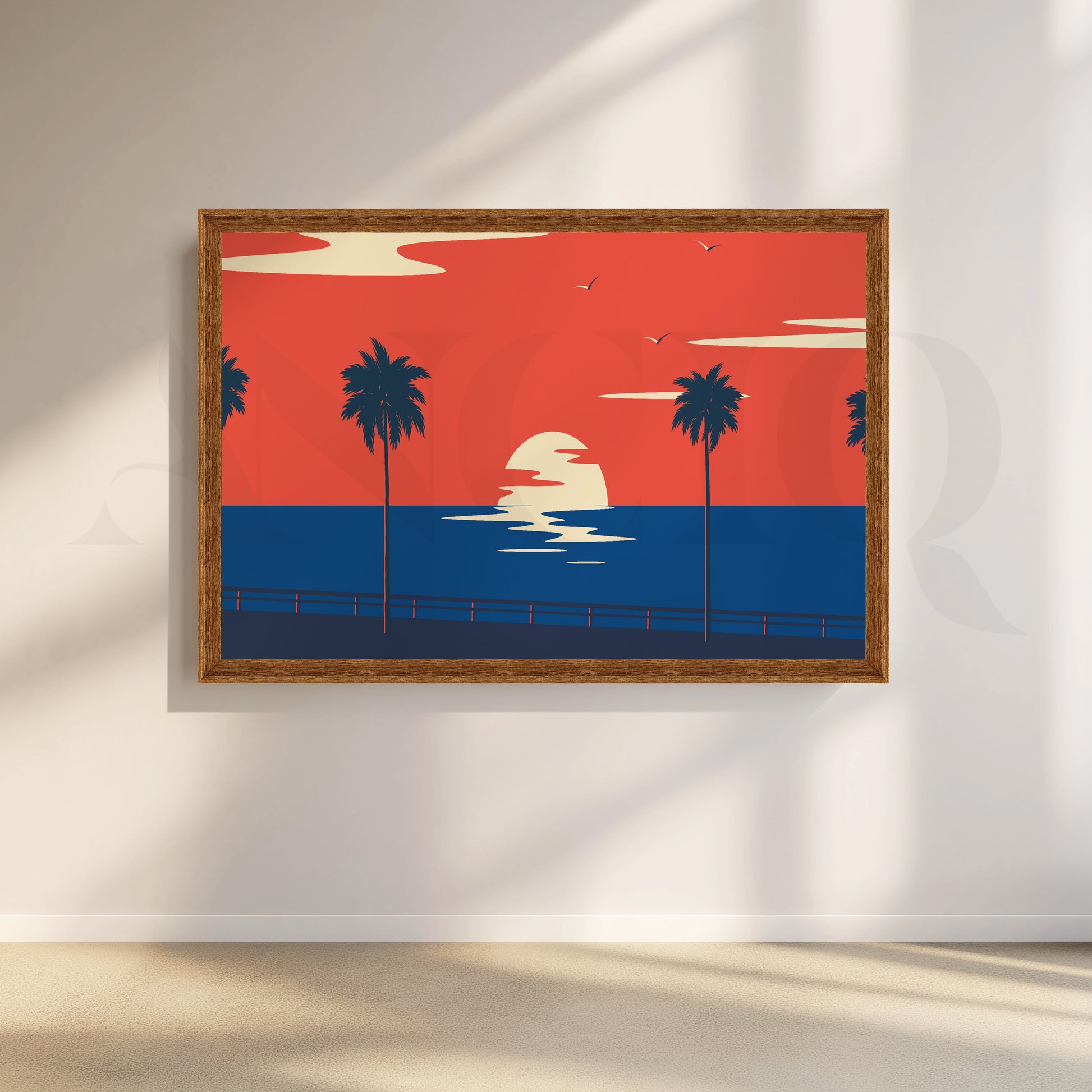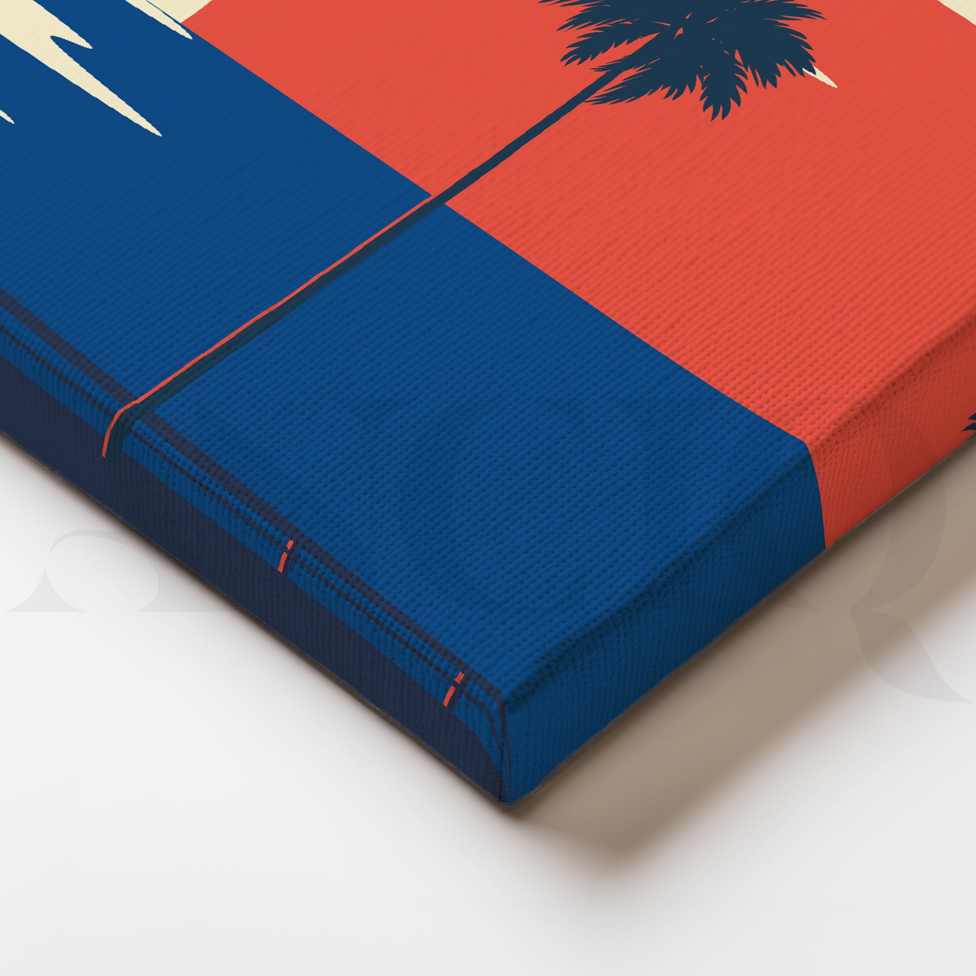 Feel the tropical sunset into your home with this beautiful canvas painting. Vibrant sky colors and palm tree silhouettes create a cozy and inviting atmosphere. This art piece will definitely add a touch of paradise to any room.