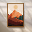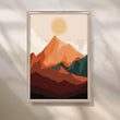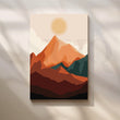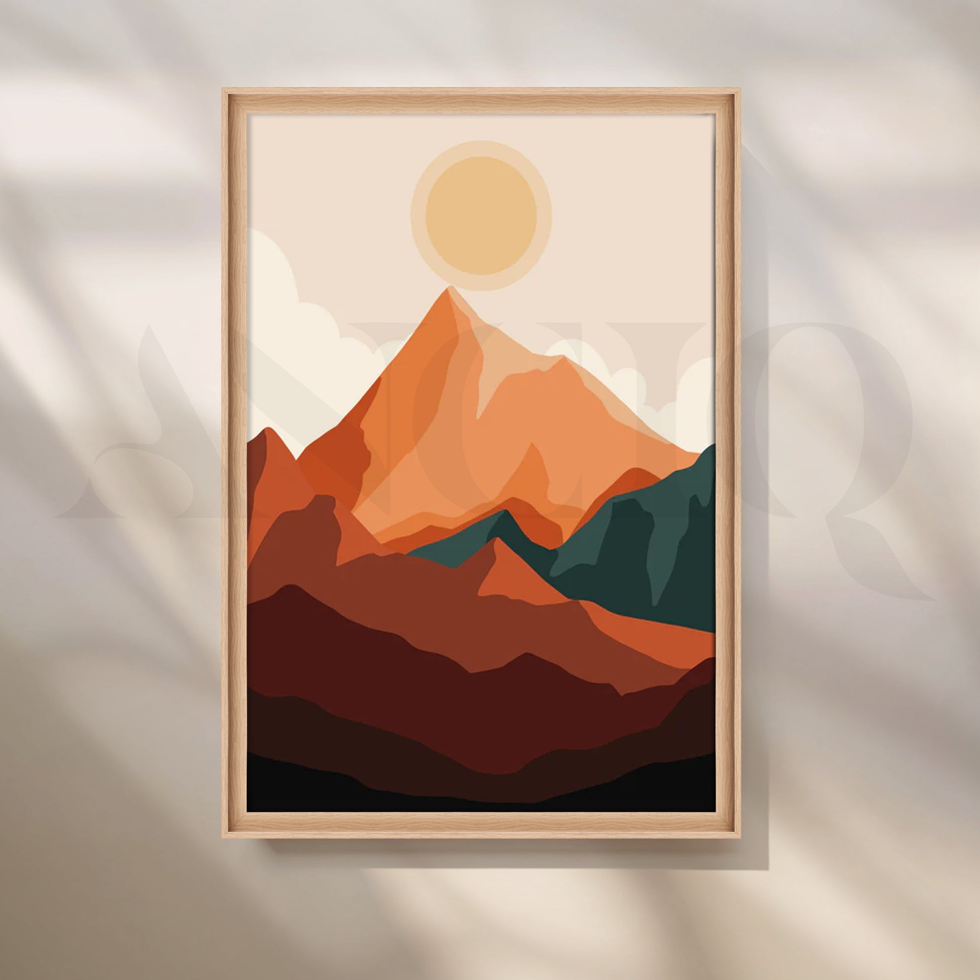 Strata of rust, clay, and deep green rise to a sunlit peak in this striking abstract mountain artwork. The terracotta palette warms any room while the clean, graphic forms suit modern wall art collections and mid-century or boho décor. Ideal as large office wall art or over the sofa, this minimalist landscape canvas painting delivers color, calm, and effortless style to curated spaces.