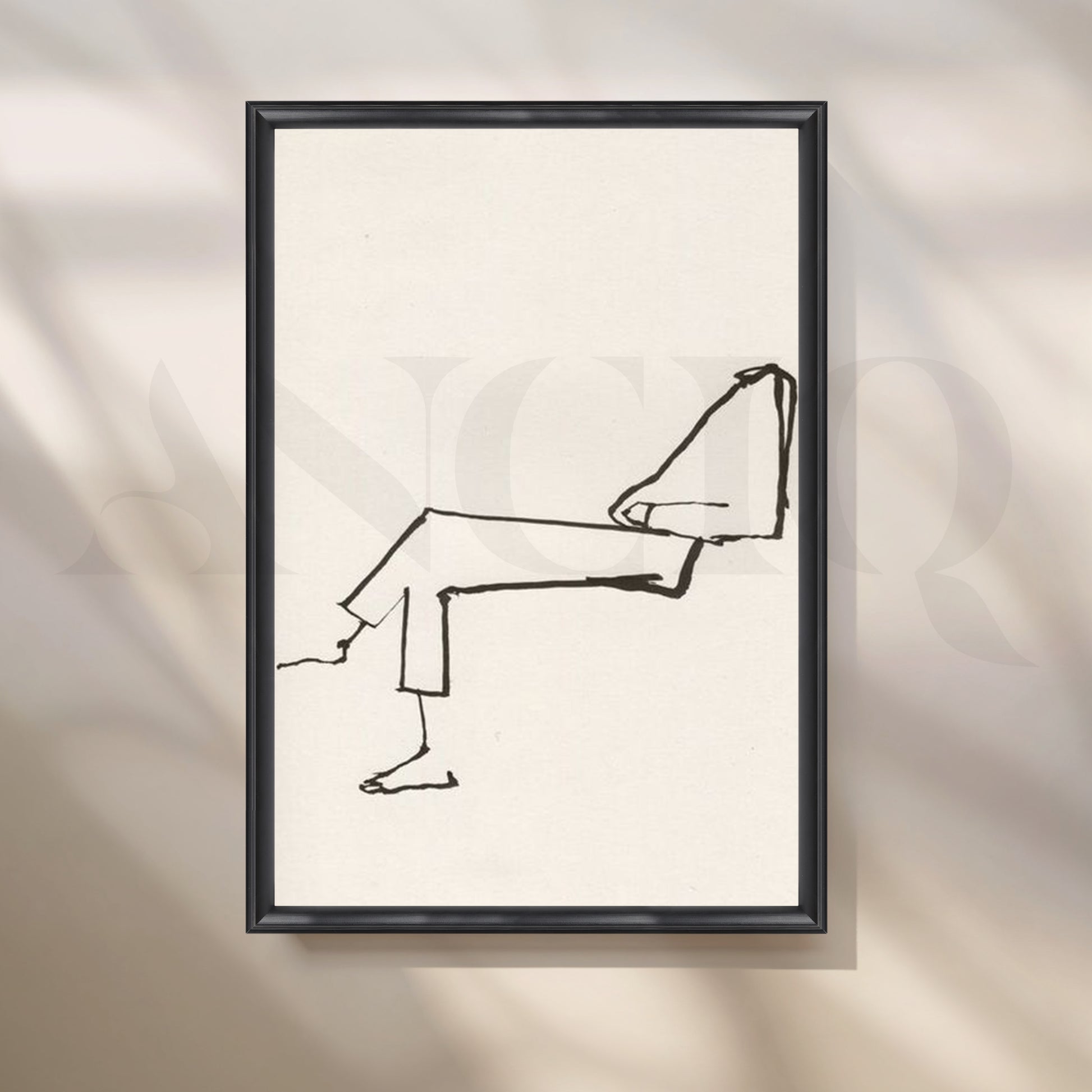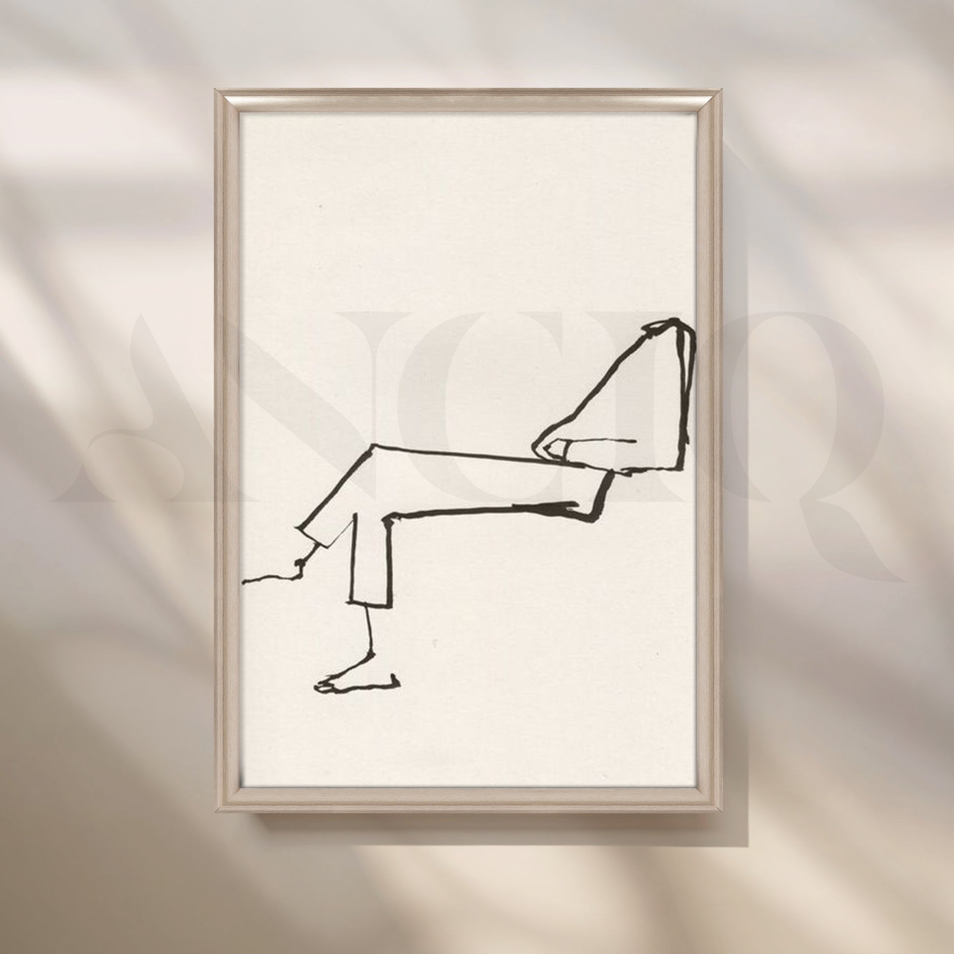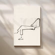 Effortlessly chic, this line-drawing figure lounges across warm white canvas—clean, calm and poetic. “Reclined Line” suits Scandinavian bedrooms, reading corners and serene home offices, pairing easily with neutral palettes and natural textures.