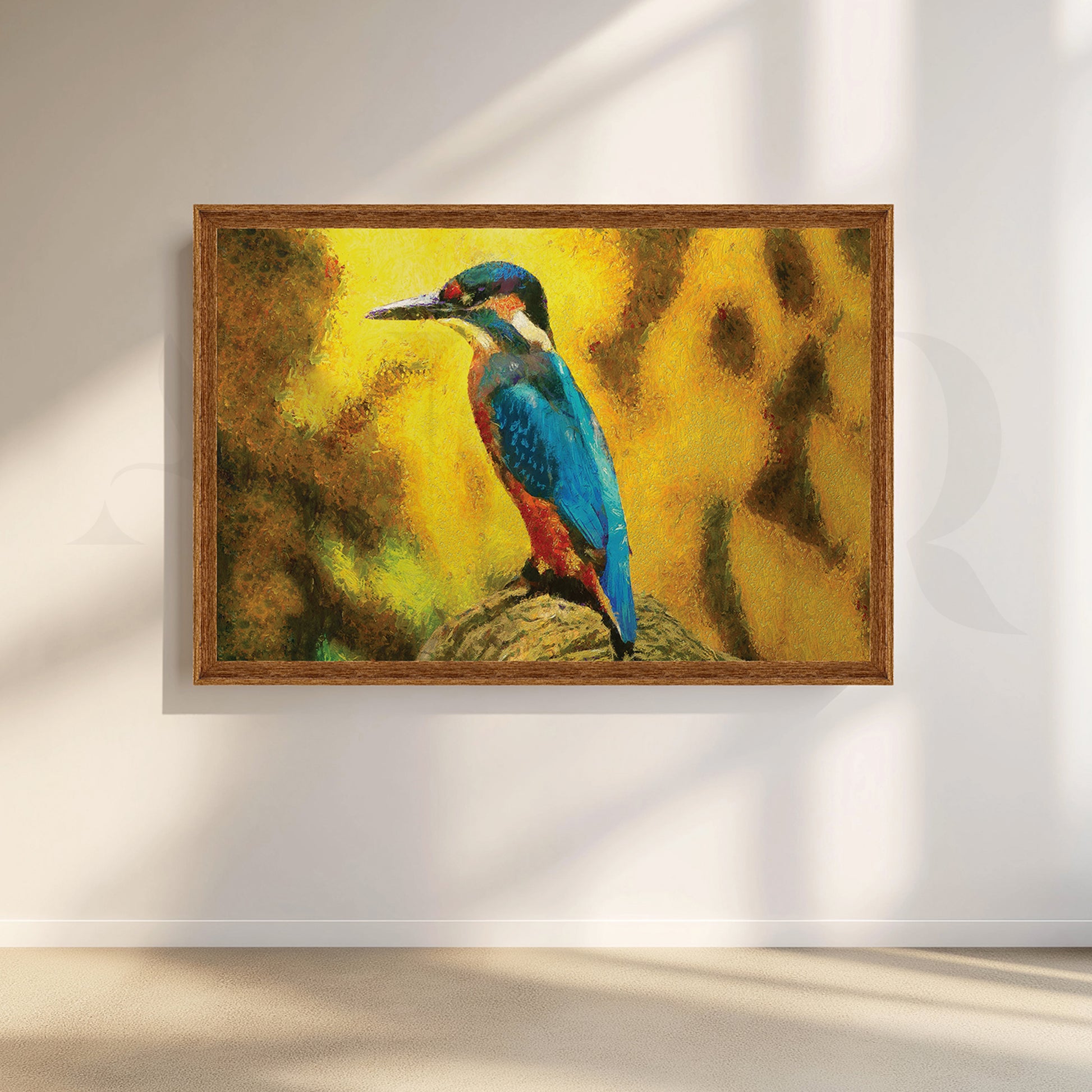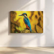 This captivating oil painting bursts with color! A vibrantly plumaged bird perches on a sun-drenched rock, its feathers catching the warm light. The background hints at a lush landscape, inviting the viewer to imagine a world beyond the frame. Bring a touch of avian beauty and summer warmth to your home.