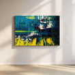 The Reverie Canvas Wall Painting is a fragment abstract painting with a focus on bold colors and geometric shapes. The use of light and dark hues creates a sense of depth and dimension. This high-quality, unframed printed art print is available in a variety of sizes .