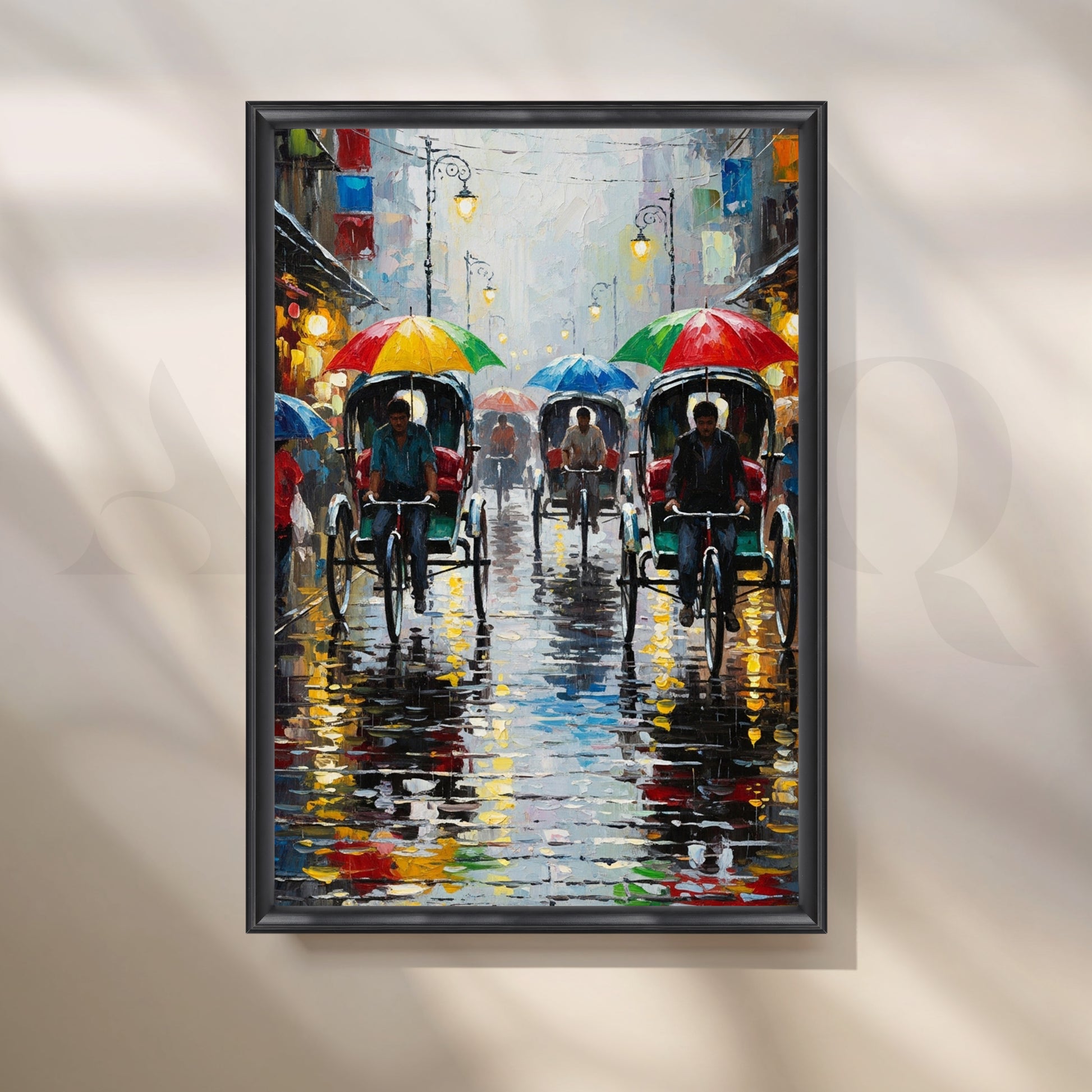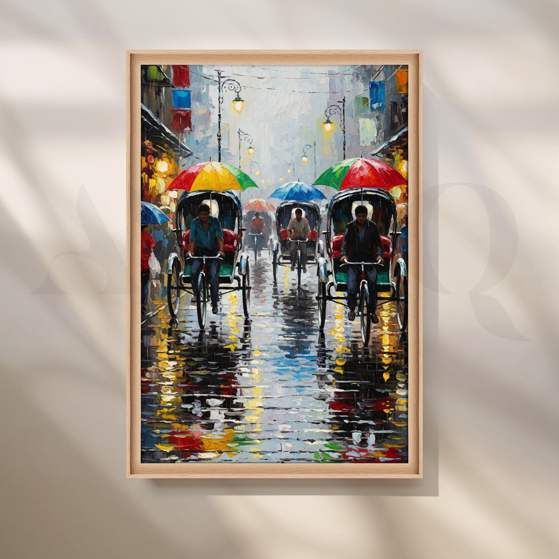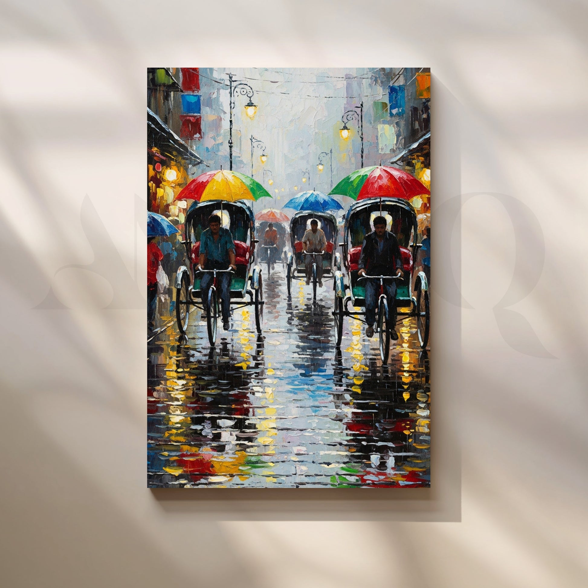 Rickshaw Rain Street Canvas Artwork for Urban Hallways or Study Corners