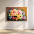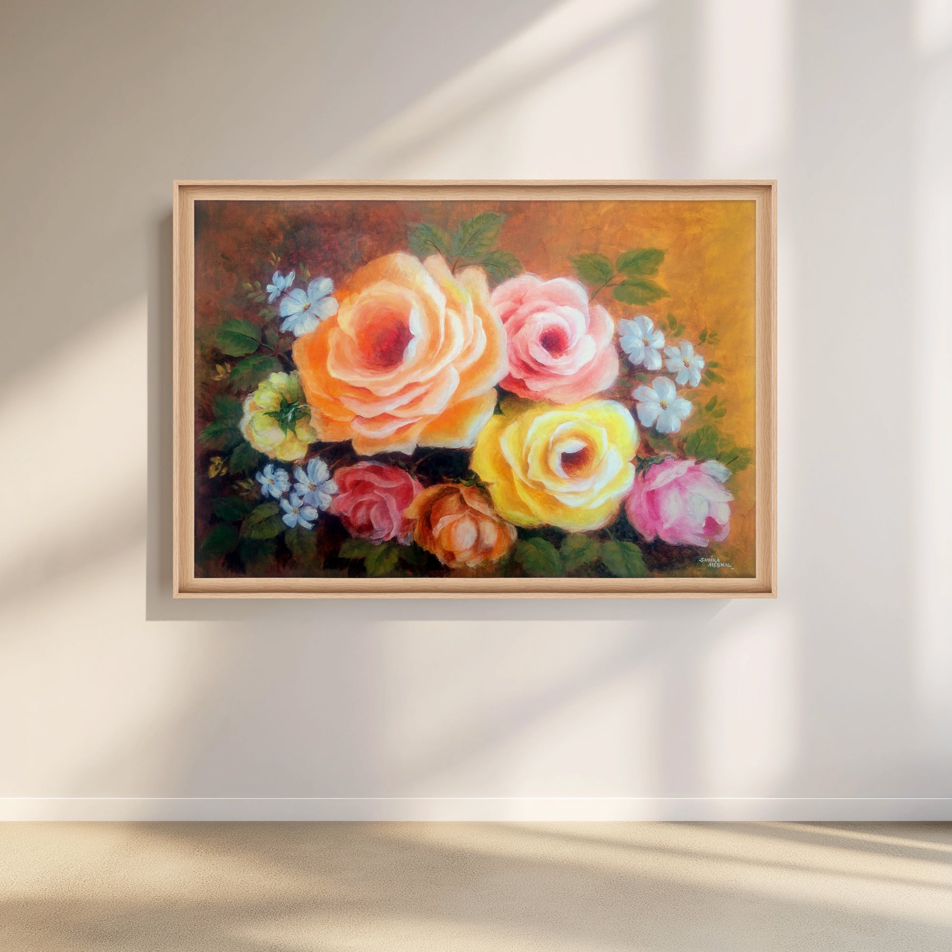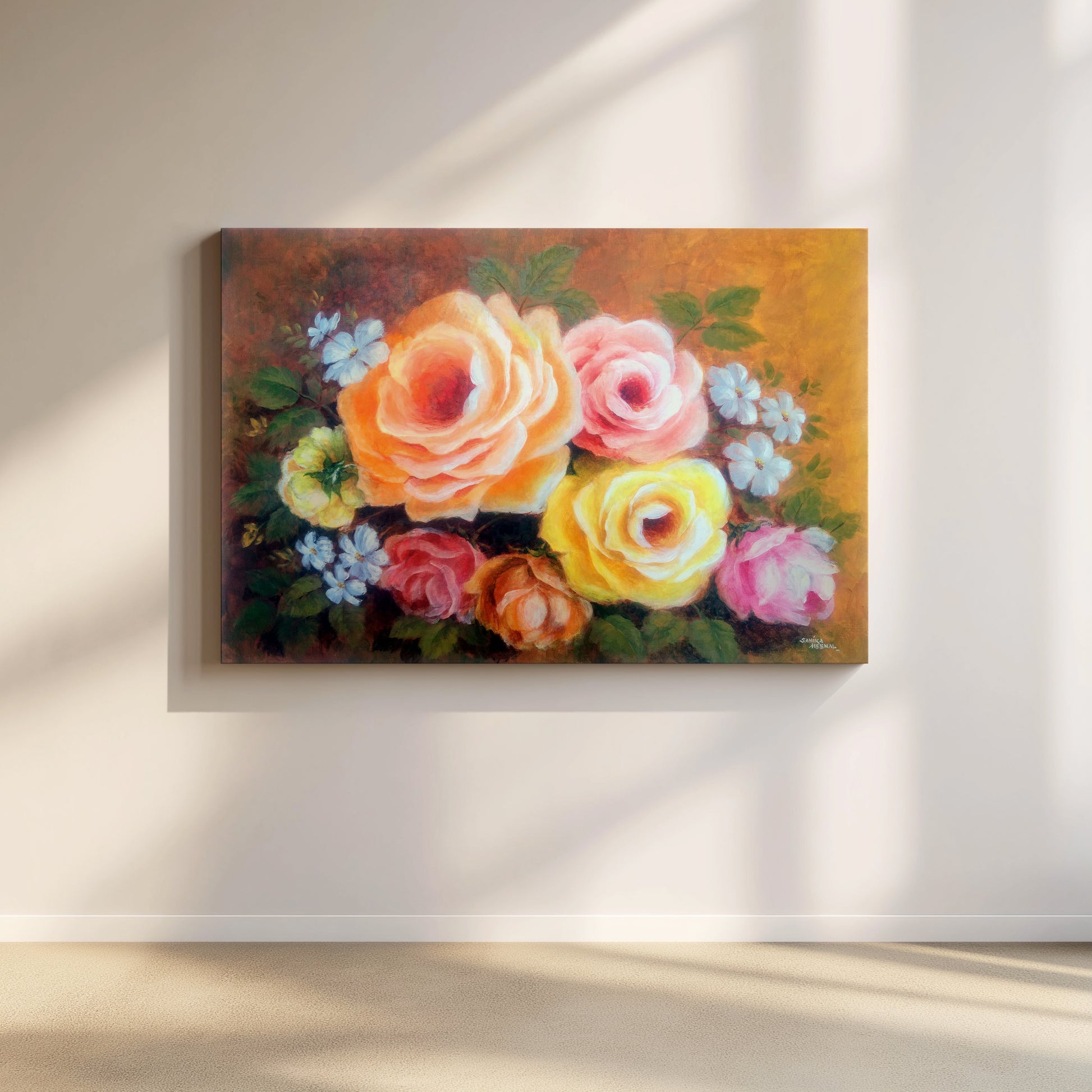 Grace your walls with the vibrancy of this bouquet of multi-hued roses which have a special