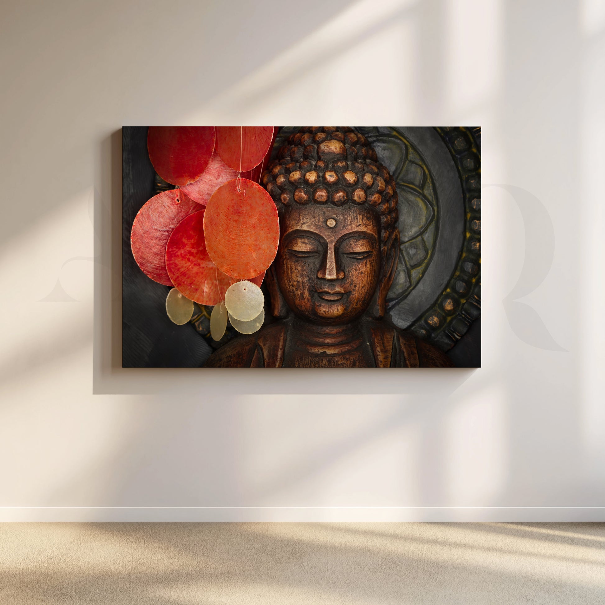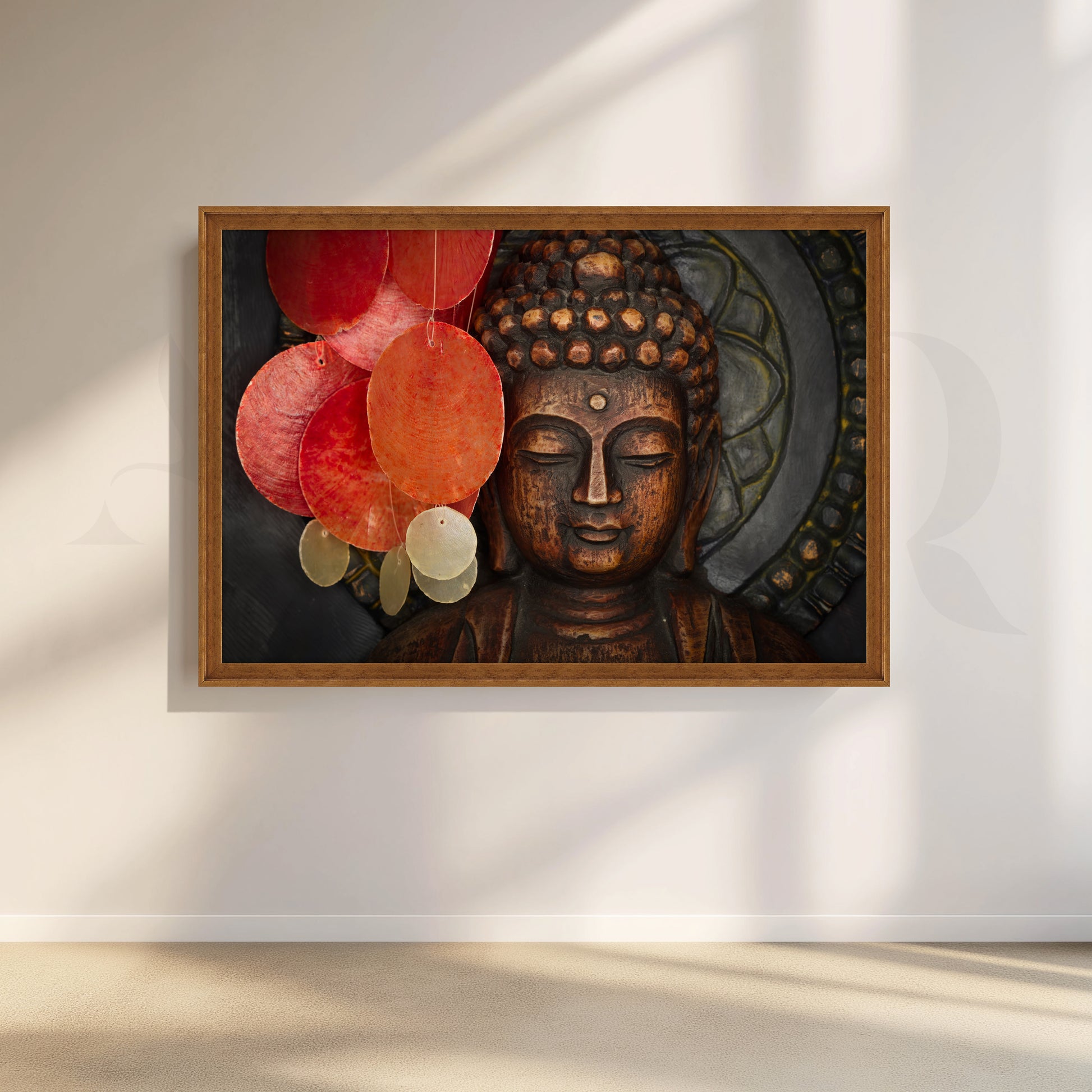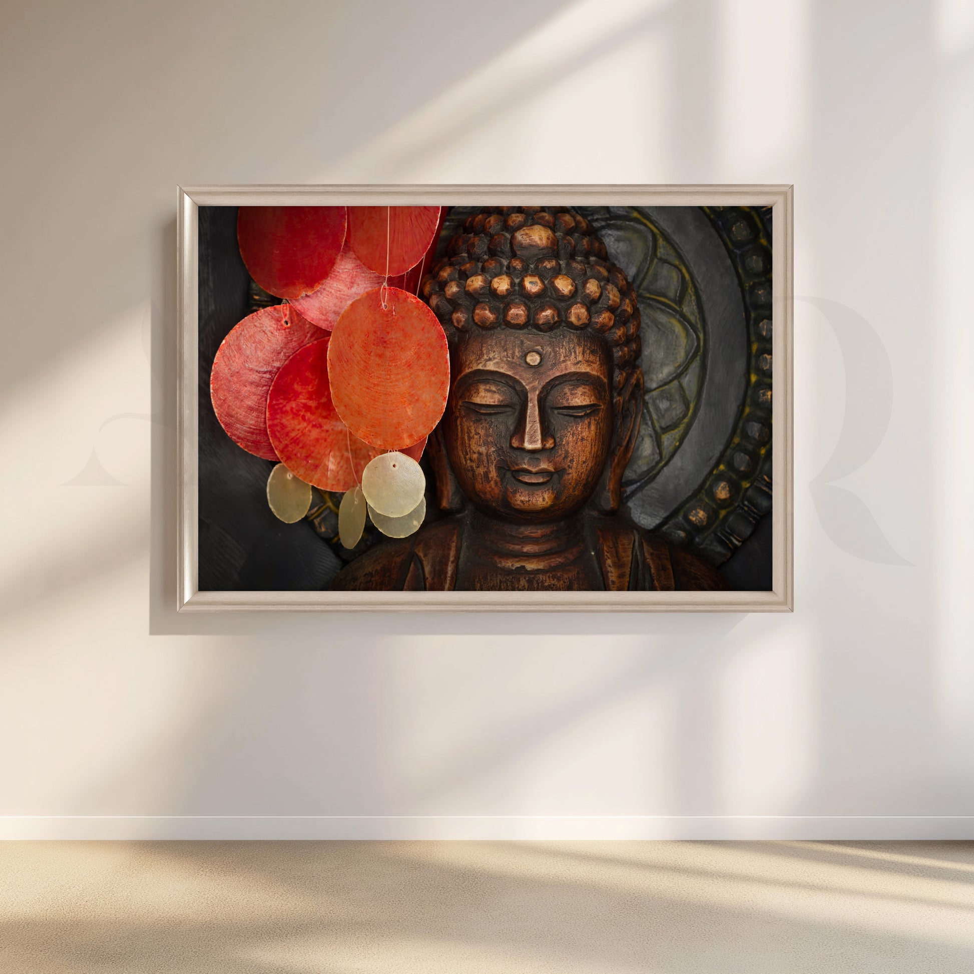 Transform your space with the "Serene Harmony Buddha and Red Lantern Wall Art." This stunning piece combines the tranquil presence of Buddha with the vibrant red lanterns, creating a serene ambiance that exudes peace and cultural richness.