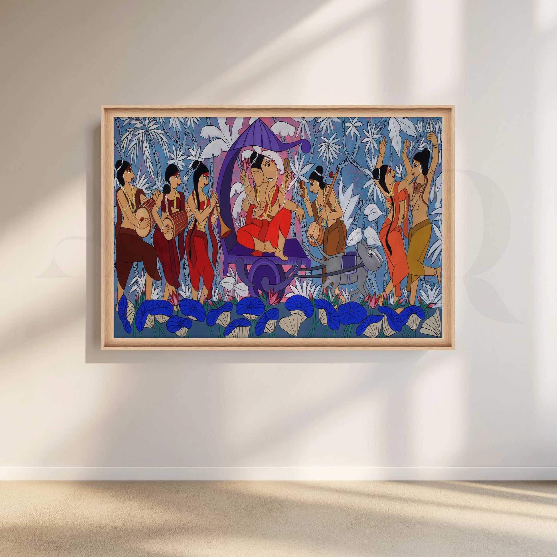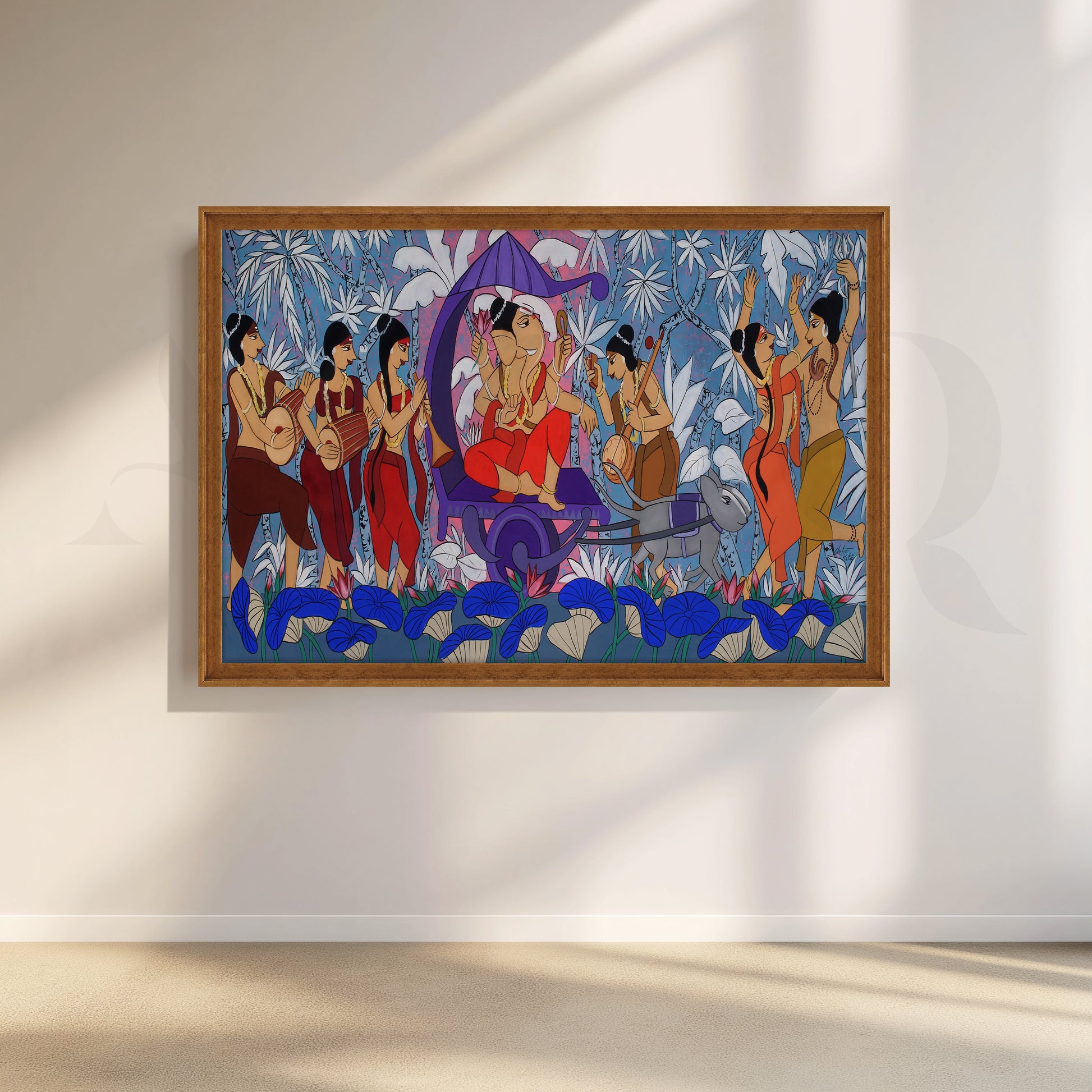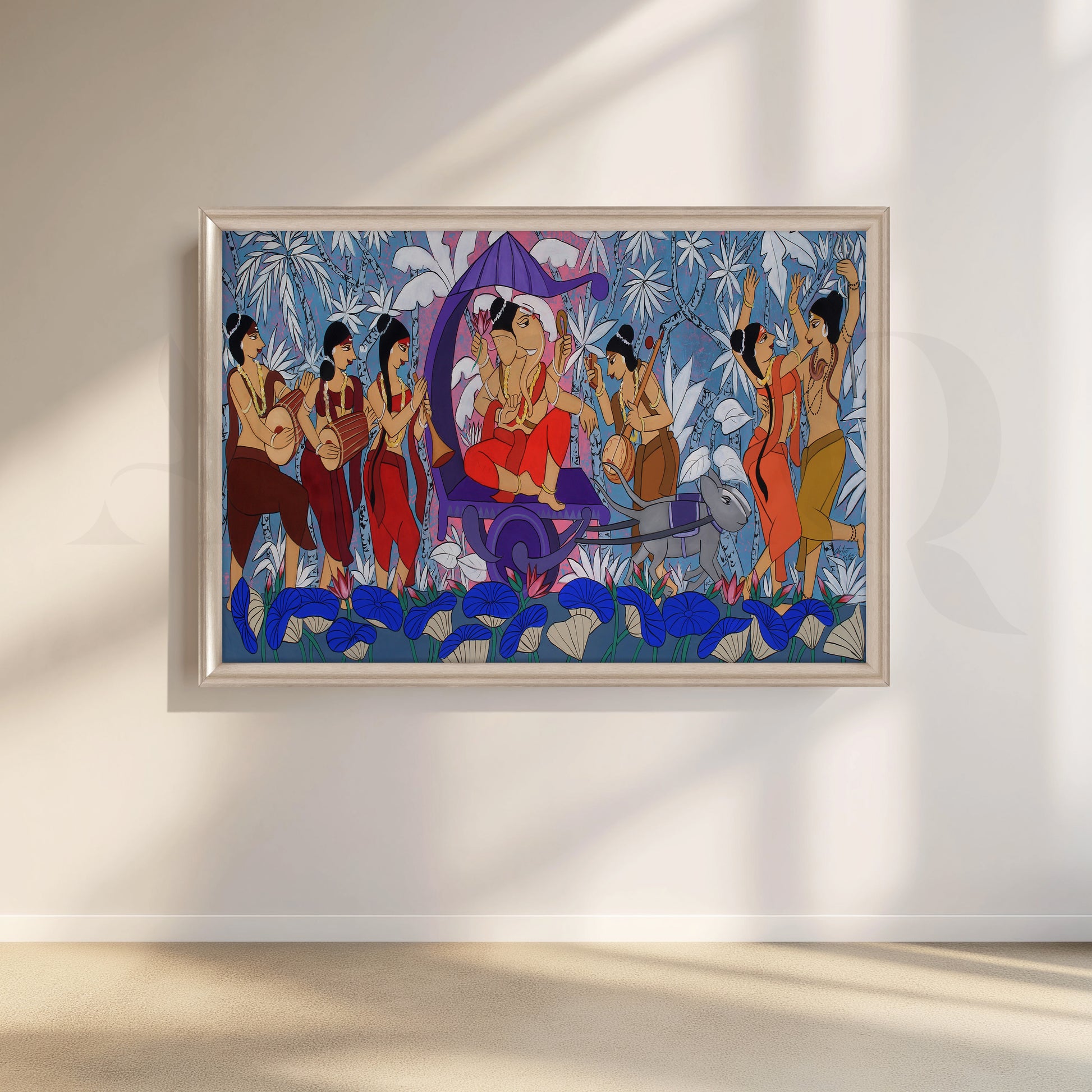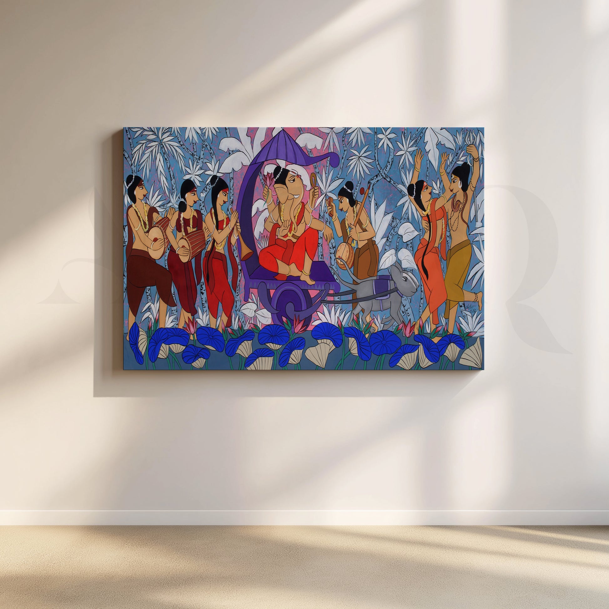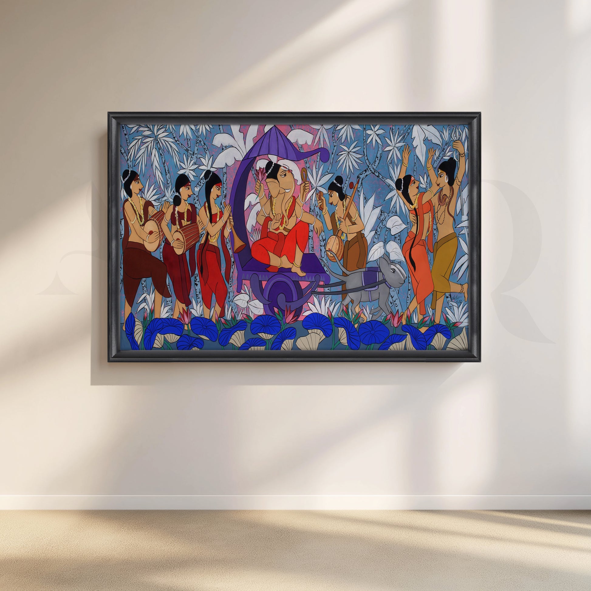 - The artist's journey into art began at an early age, driven by a deep fascination with how paintings are created. Born in Hubbali, Karnataka, and raised in Surat, Gujarat, they pursued formal education in art, earning a Drawing Teacher Diploma in 2009, followed by a B.F.A. from Shivaji University and an M.F.A. in 2018. Their artistic style blends traditional and contemporary elements, drawing inspiration from the works of Raja Ravi Varma, particularly his portrayal of Indian culture and mythology. The artist’s work often centers on rural life, celebrating the beauty of nature and everyday experiences. With a restricted palette of seven vibrant colors, they employ bold, sweeping brushstrokes to bring their visions to life. Art is a personal expression of emotions, cultural pride, and lived experiences. Embracing the digital age, the artist sees the internet as a powerful tool for reaching global audiences and sharing their art, deeply rooted in Indian traditions.