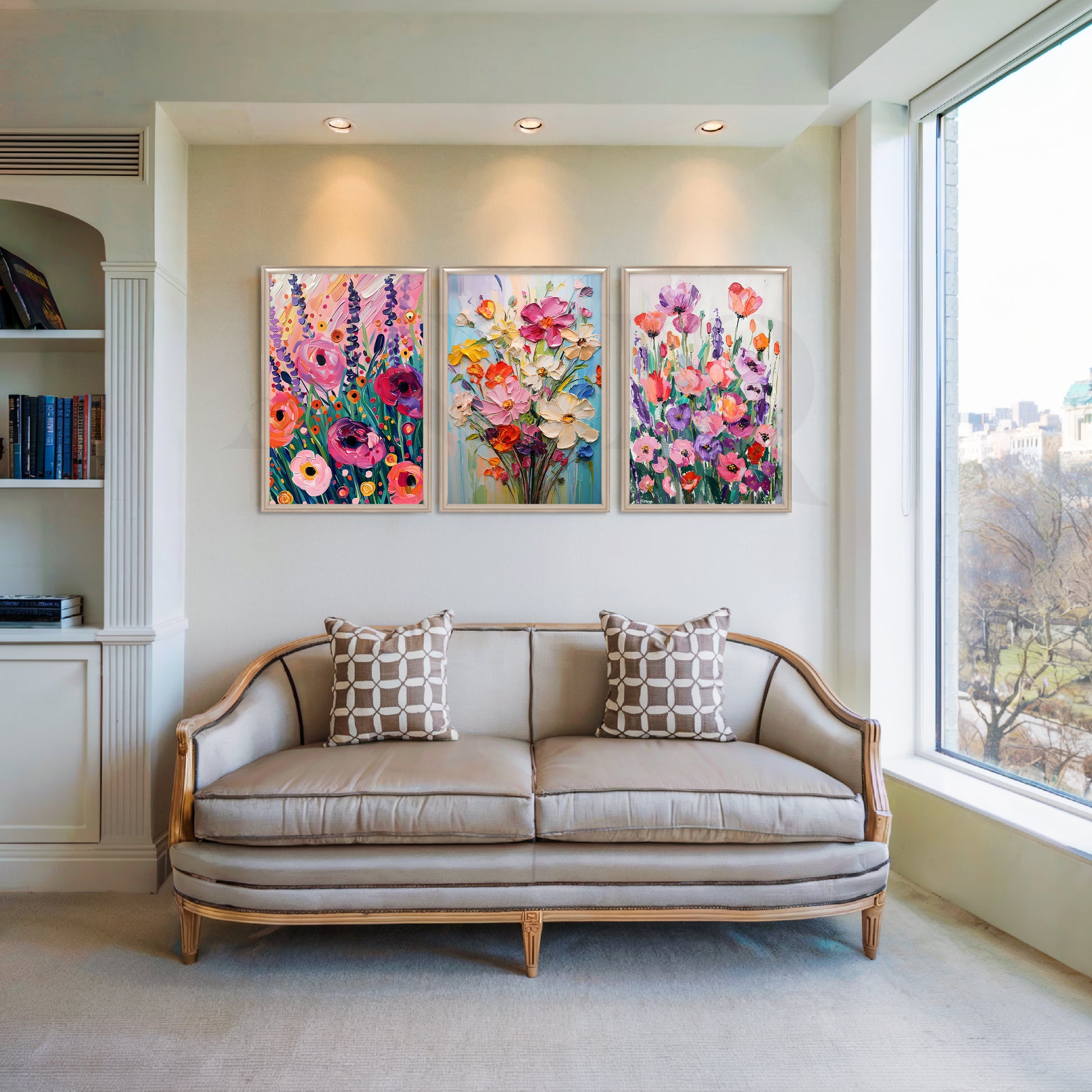 Anciq ‘Spring Garden Symphony’ Gallery Wall overflows with lush blooms, painterly petals, and joyful garden colours. Perfect for living rooms, bedrooms, dining spaces, or cozy reading corners, this 3-piece floral set adds romance and freshness to any interior. Ideal for floral wall art, colourful home décor, and nature-inspired gallery walls.