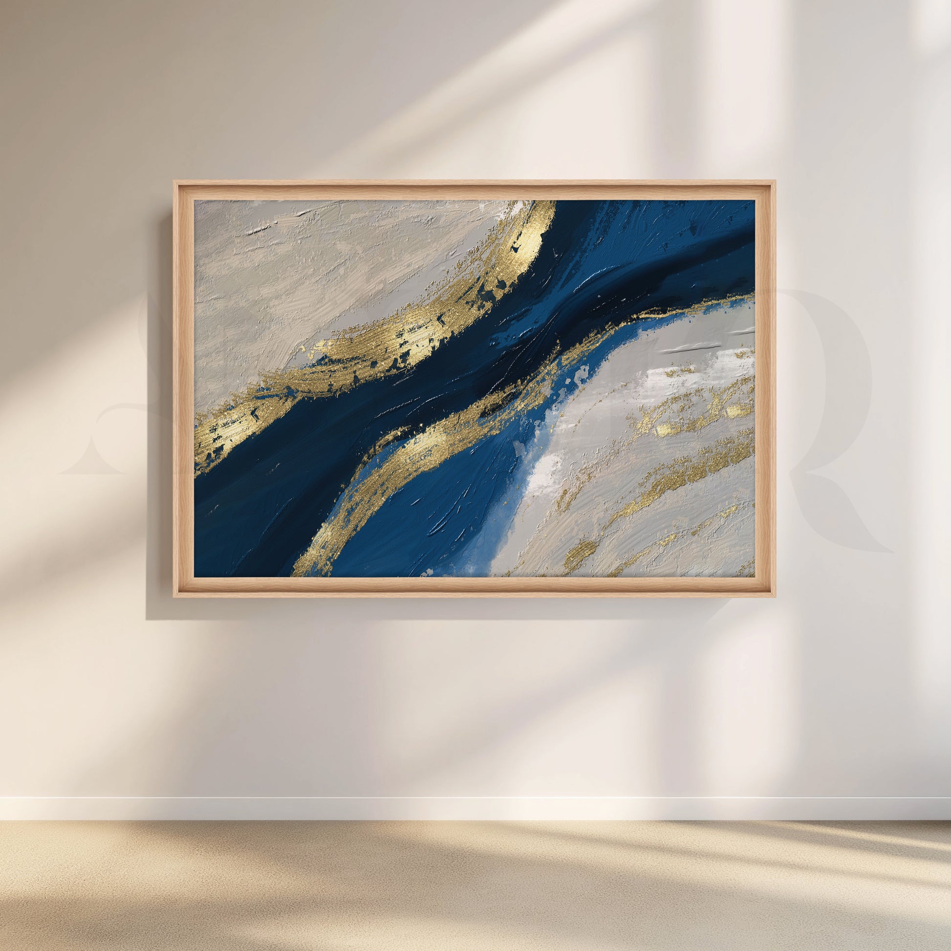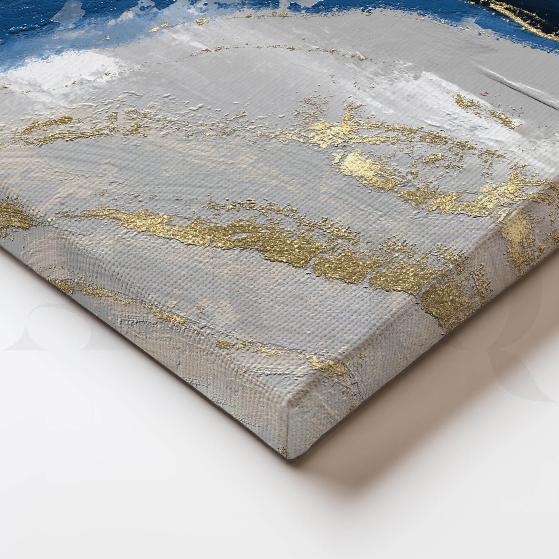 The "Symphony in Blue and Gold Canvas Wall Painting" is an abstract piece of art that features a blend of blue and gold hues. The high-quality canvas is textured, giving the painting a luxurious look and feel. The printing is also high-definition, ensuring that the colors are vibrant and the brushstrokes are crisp. This painting would be a great addition to any home, adding a touch of elegance and sophistication.