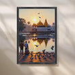 Temple Reflections at Dawn Canvas Artwork for Meditation Rooms
