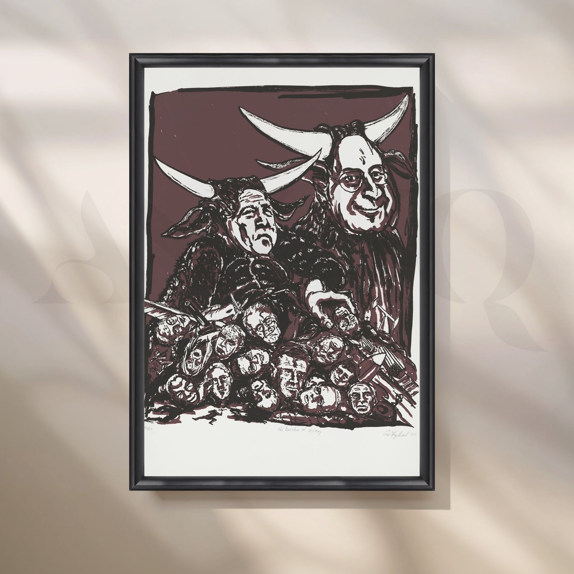 Anciq ‘The Battle for Reality’ Canvas Artwork for Modern Art Collectors is a haunting allegory rendered in intense maroon tones, critiquing media and power structures. Ideal for art-filled corridors, serious collector walls, or conversation-starting spaces, it blends contemporary critique with bold graphic storytelling.