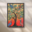 Traditional Peacock Tree Folk Art Canvas Painting for Home Décor